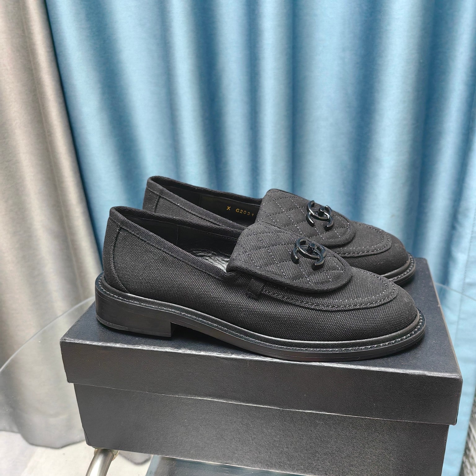 MOCCASINS BLACK QUILTED LAMBSKIN