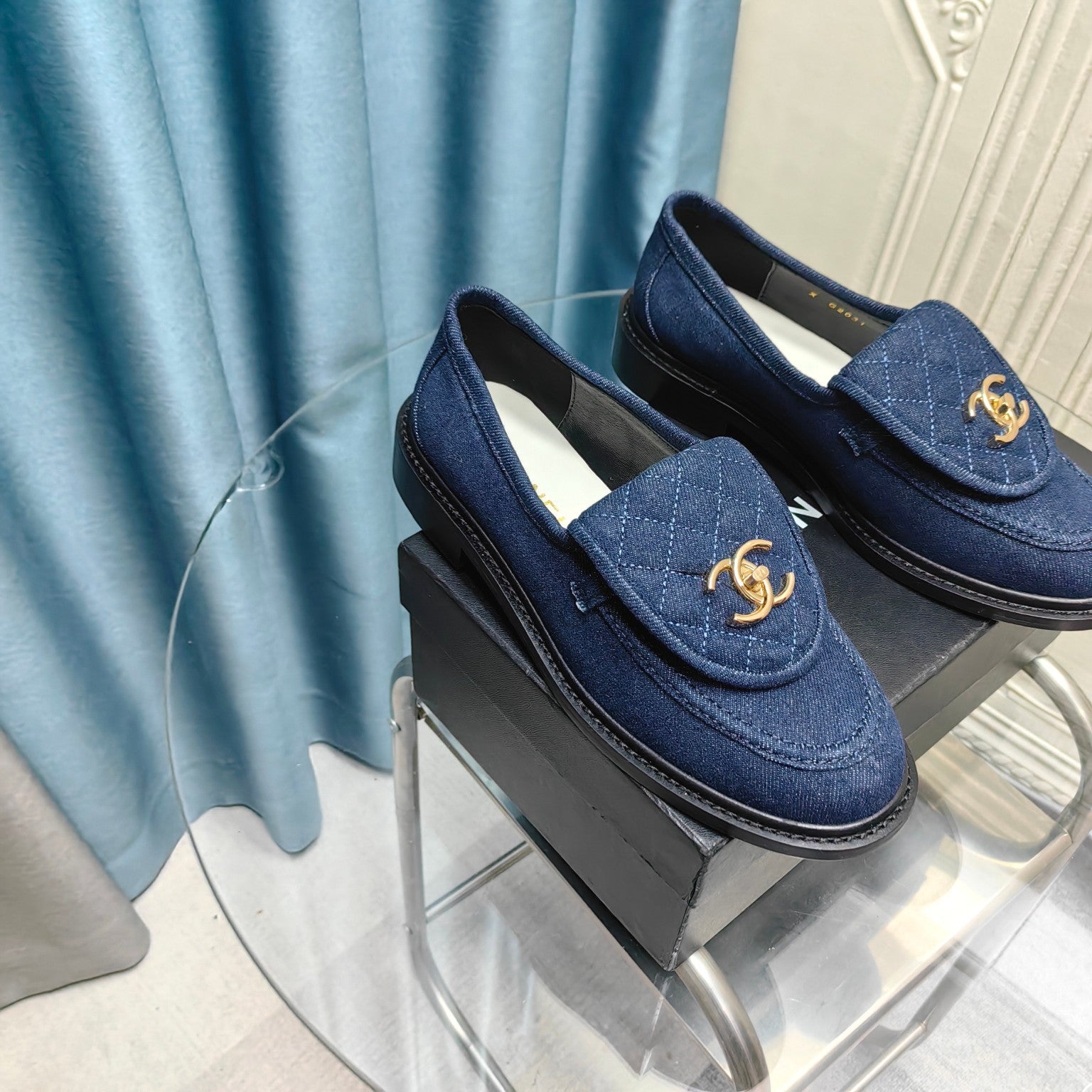 MOCCASINS NAVY BLUE QUILTED LAMBSKIN
