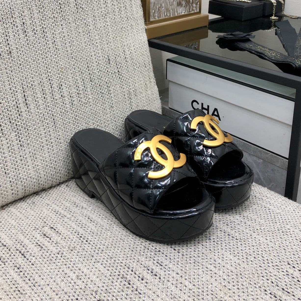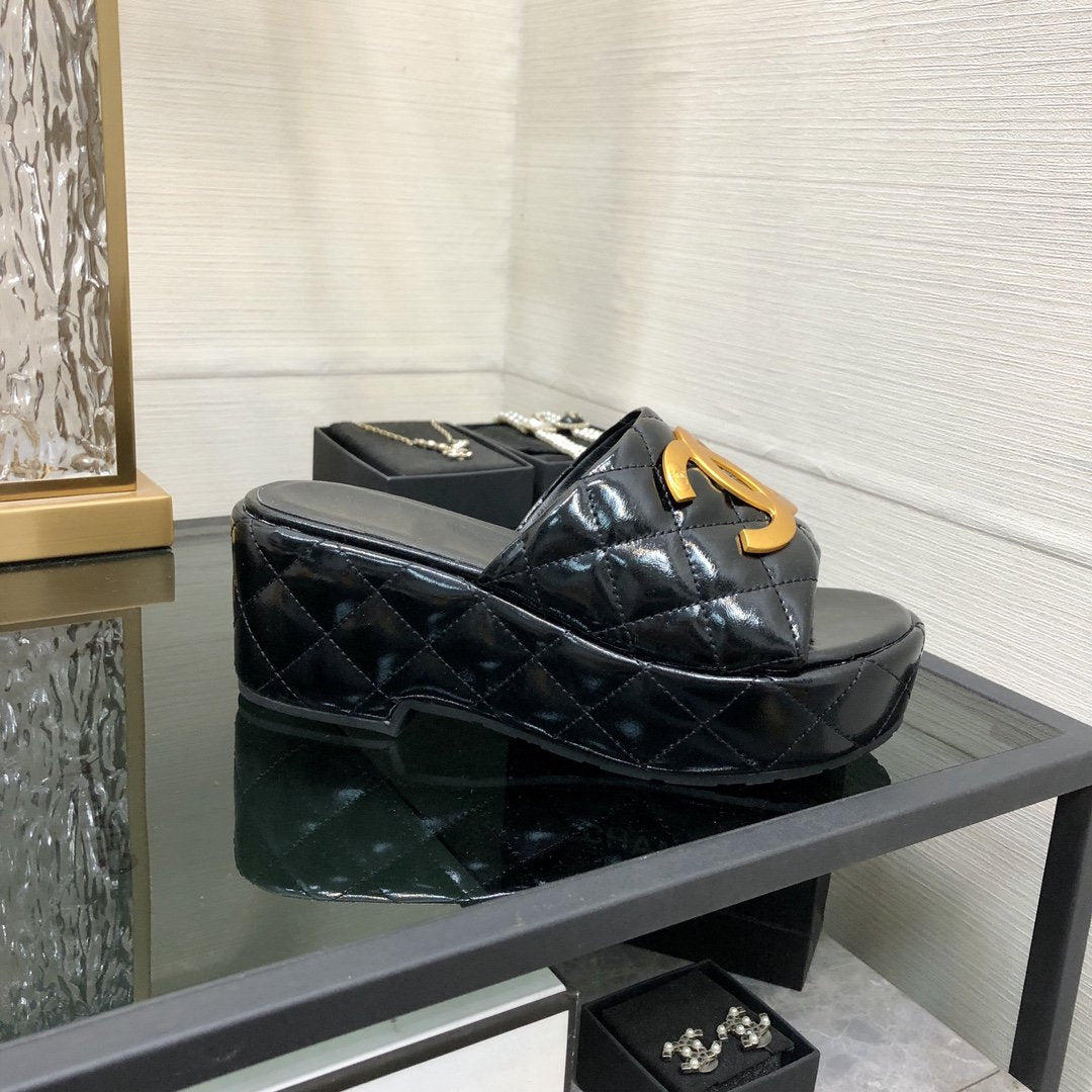 mule sandal 95 black quilted waxed leather