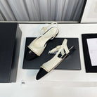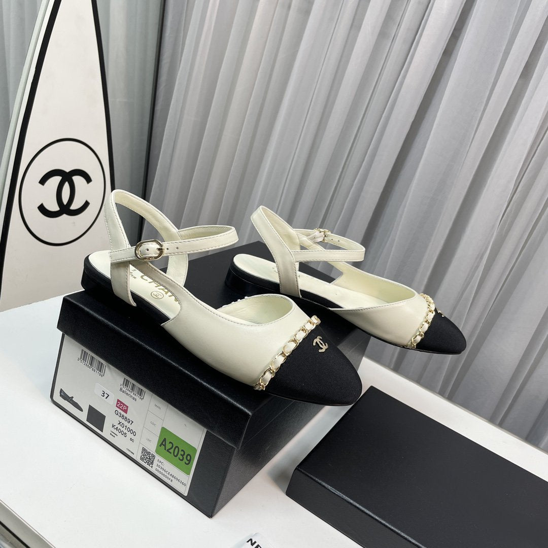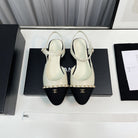slingback cream lambskin black leather chain grosgrain