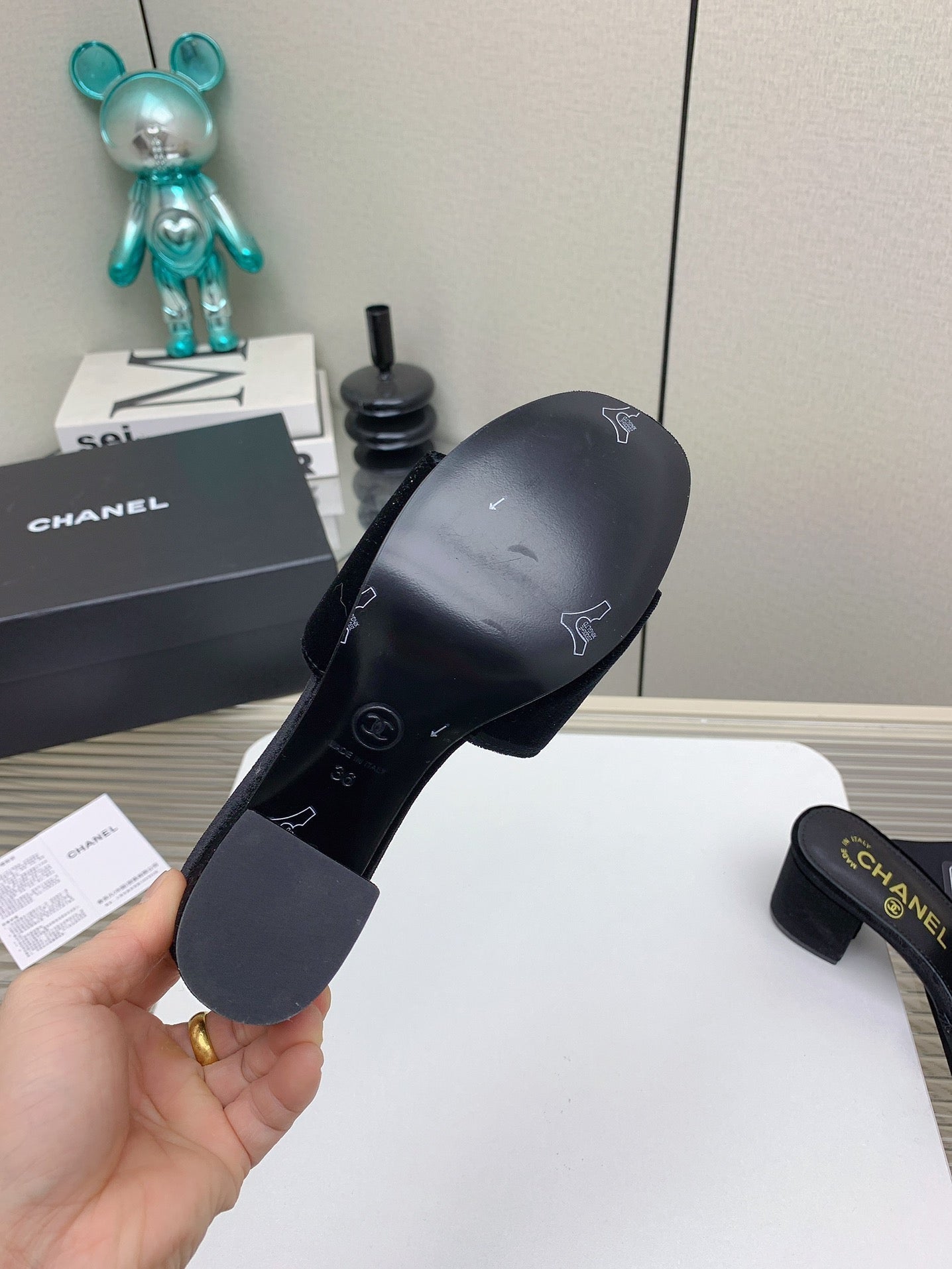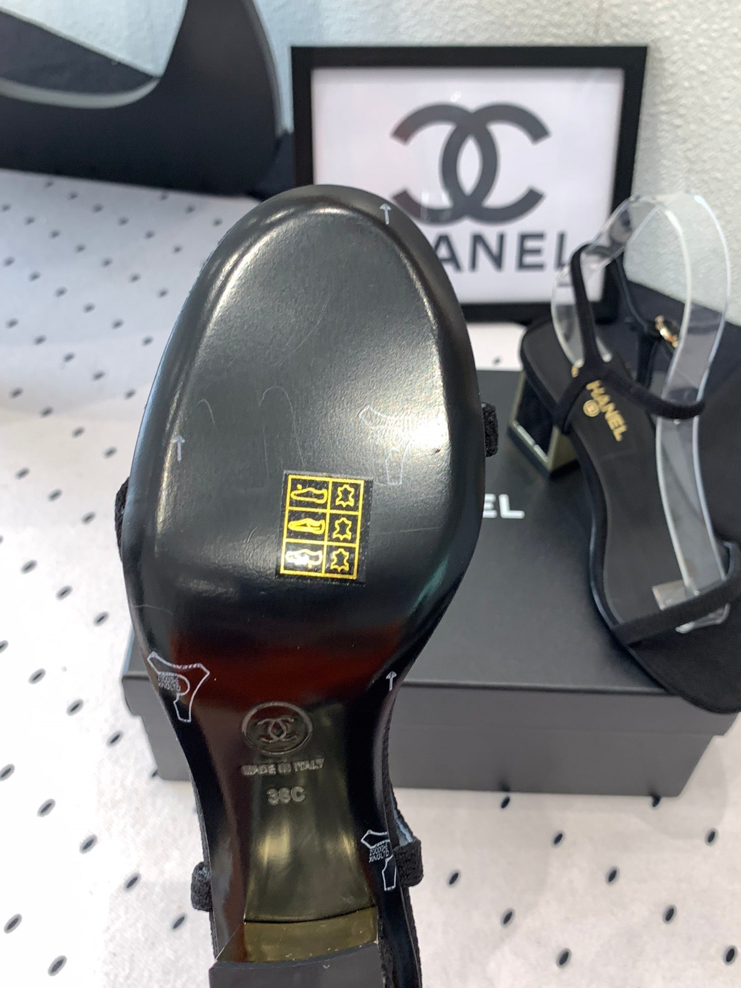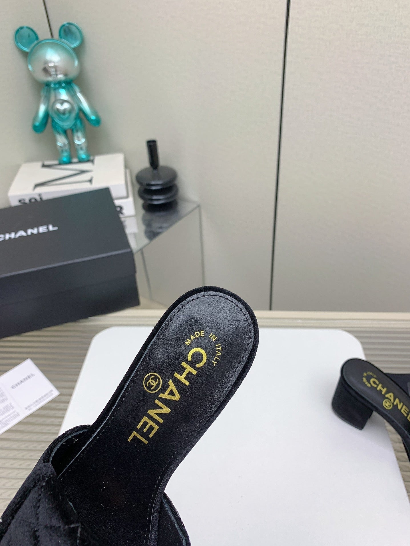 CC Pumps 50 Black Mesh Leather Pointed Toe
