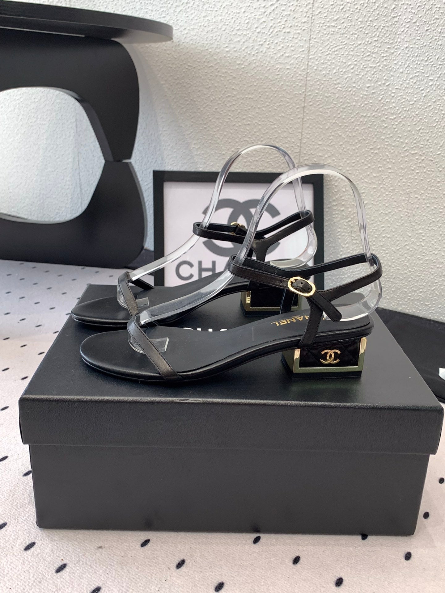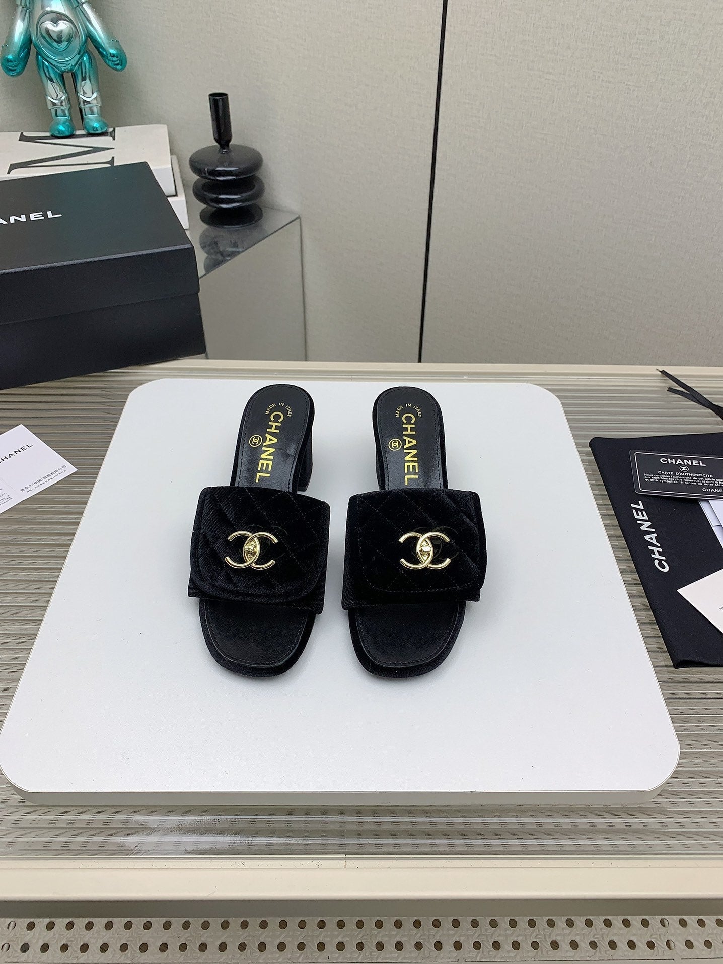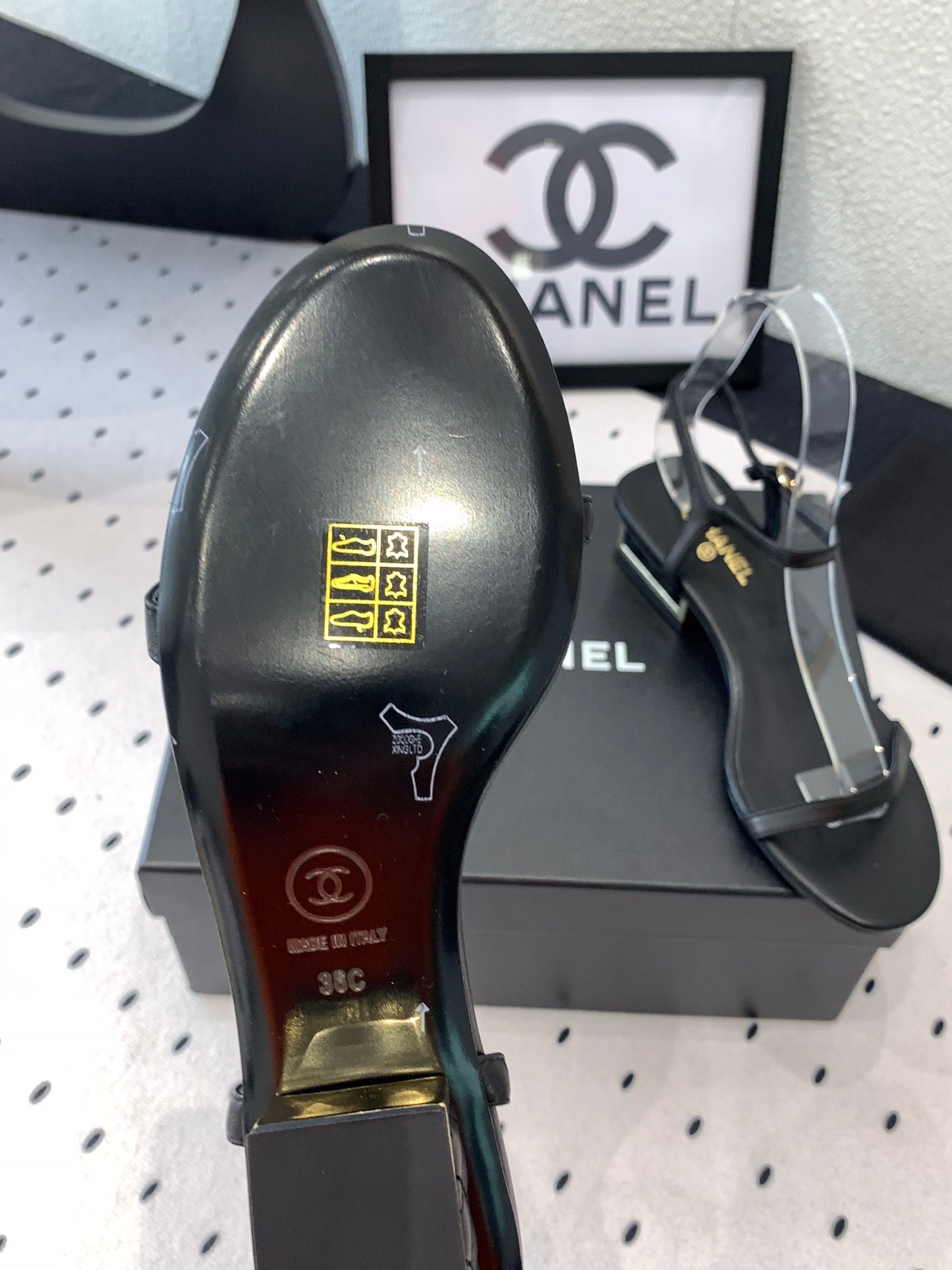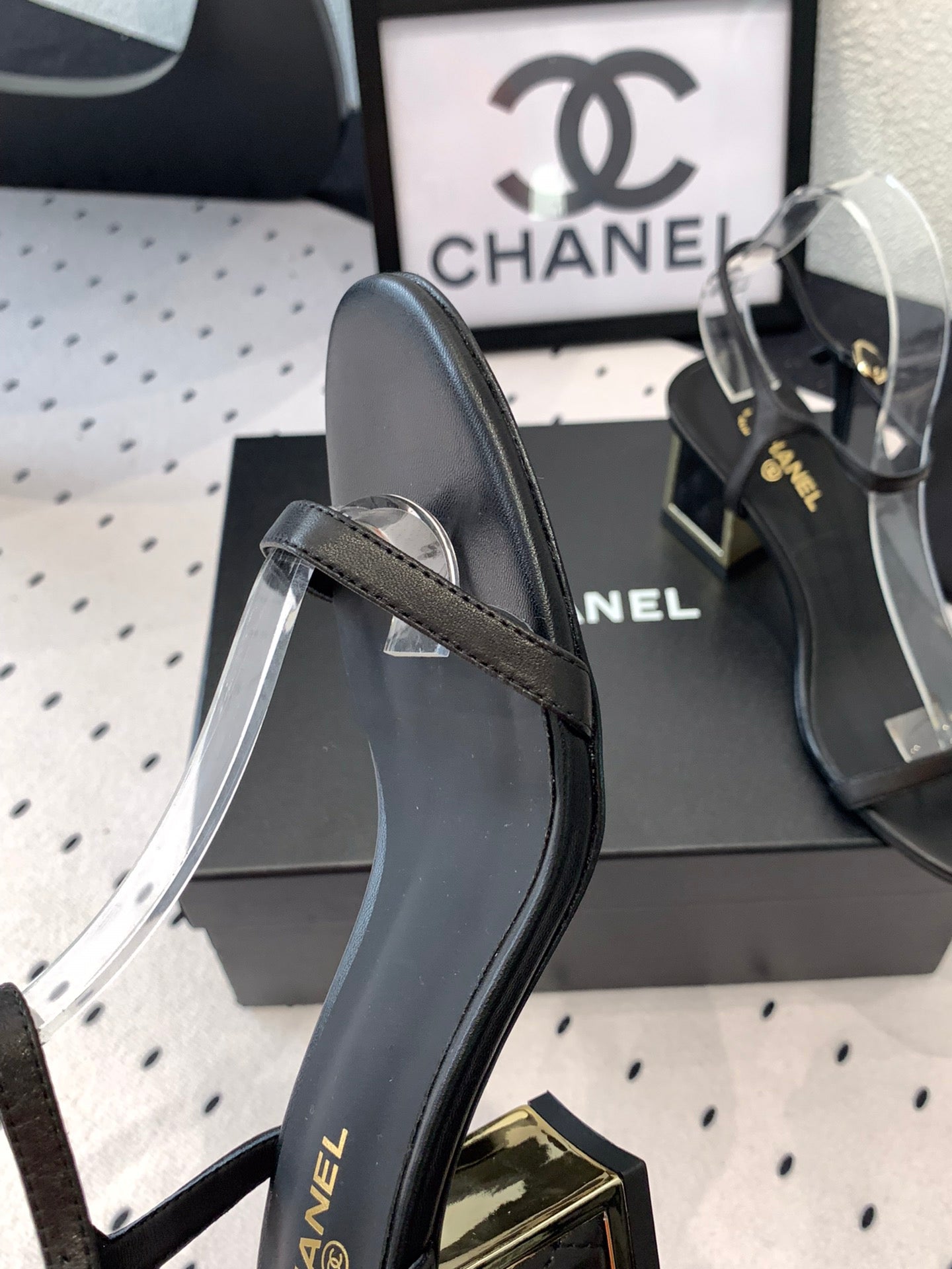 CC Pumps 50 Black Mesh Leather Pointed Toe