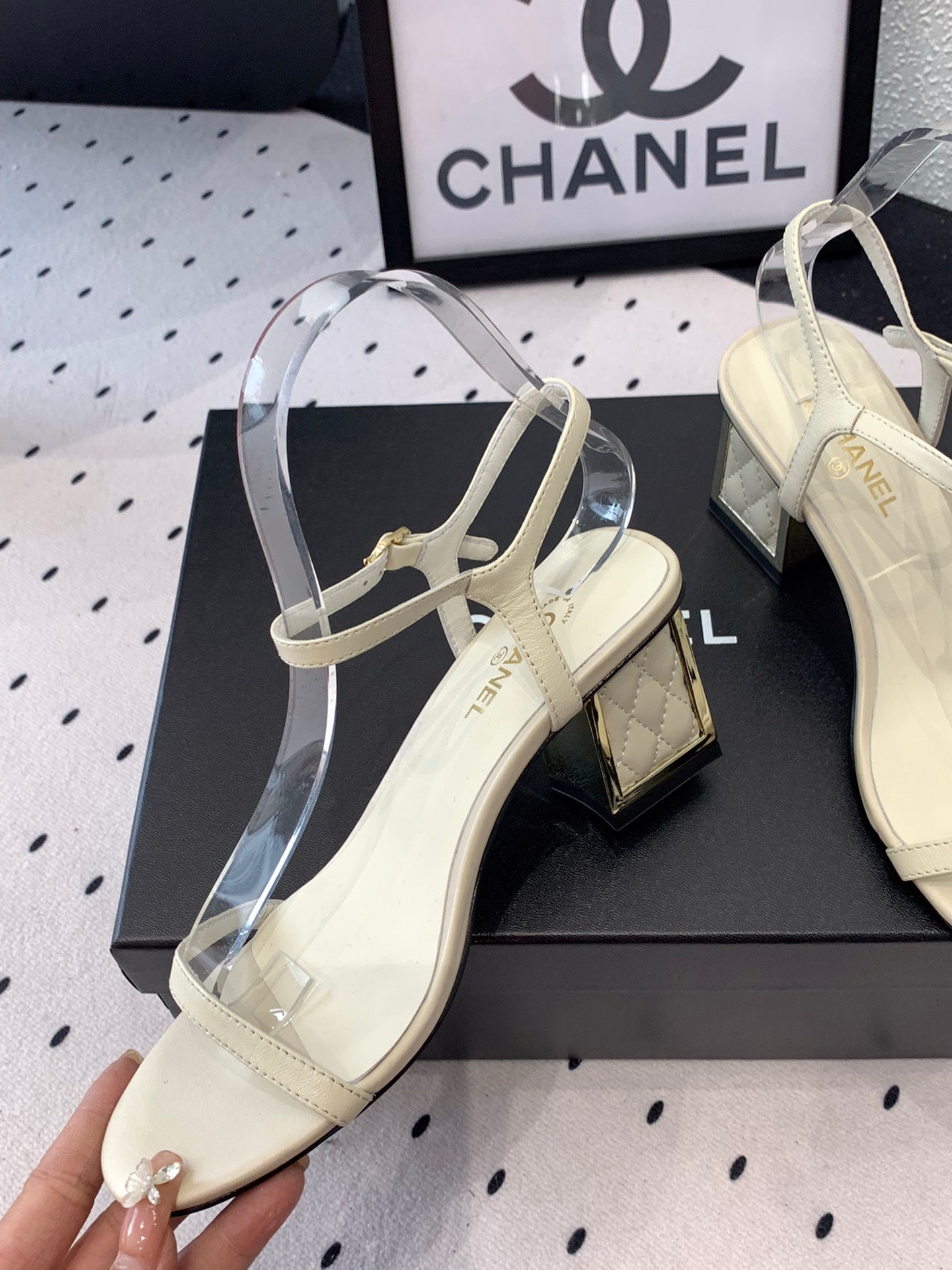 CC Pumps 50 White Mesh Leather Pointed Toe
