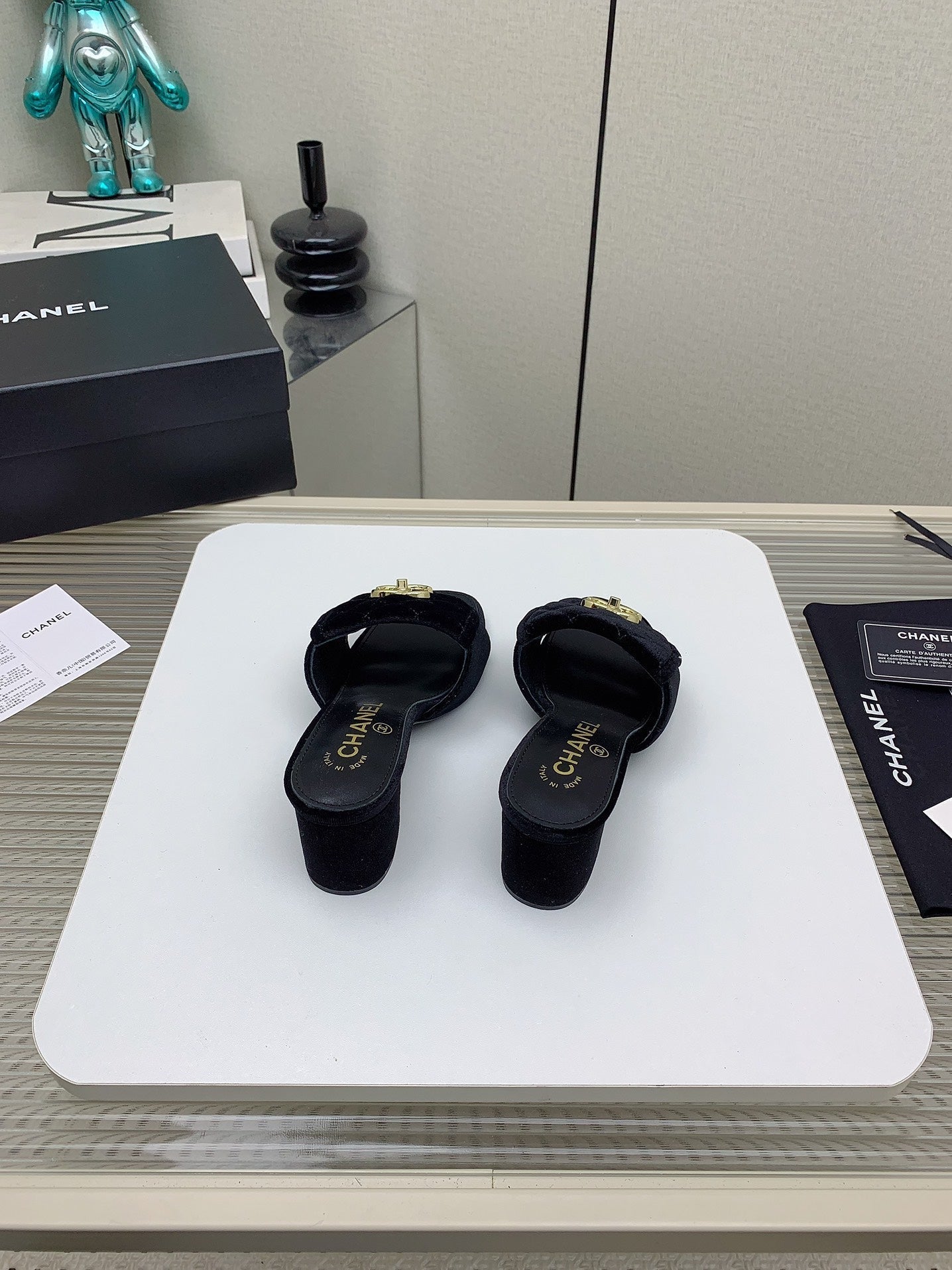 CC Thong Slippers In Navy Blue Denim Fabric 147052