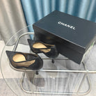 CC Pumps 50 Black Mesh Leather Pointed Toe