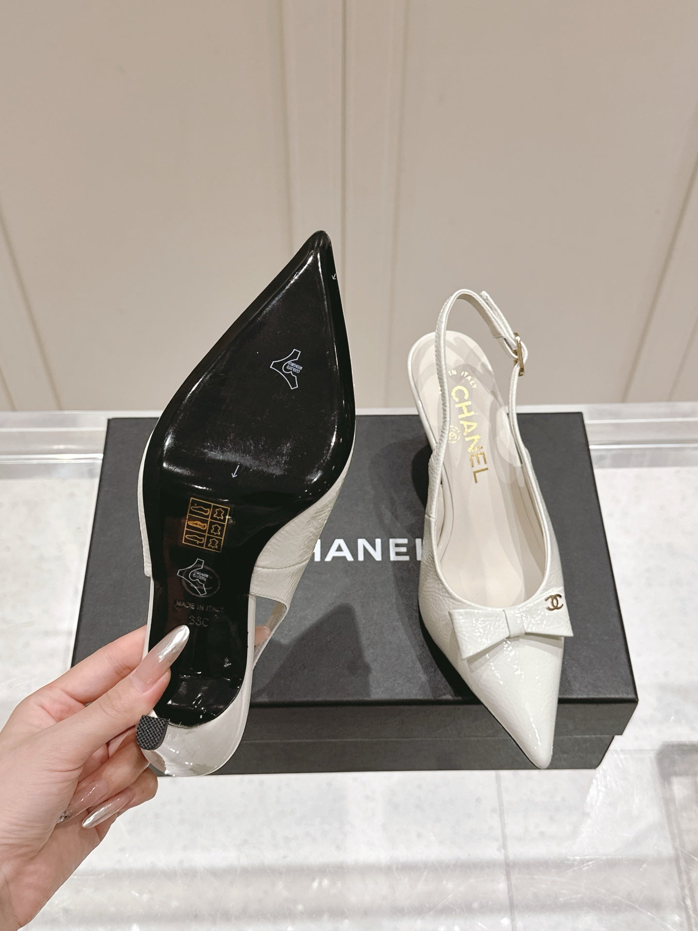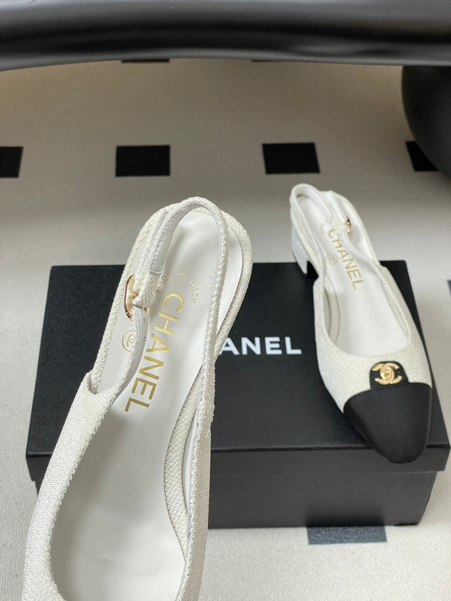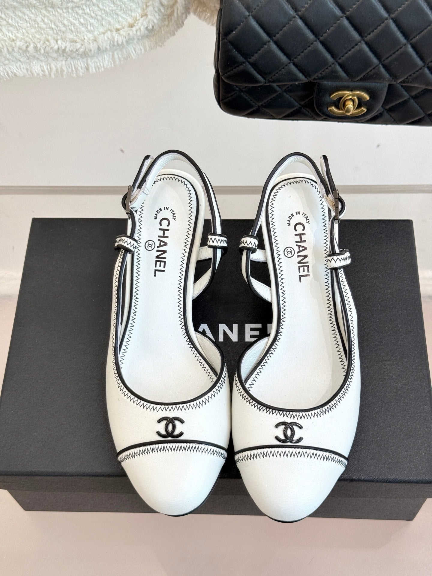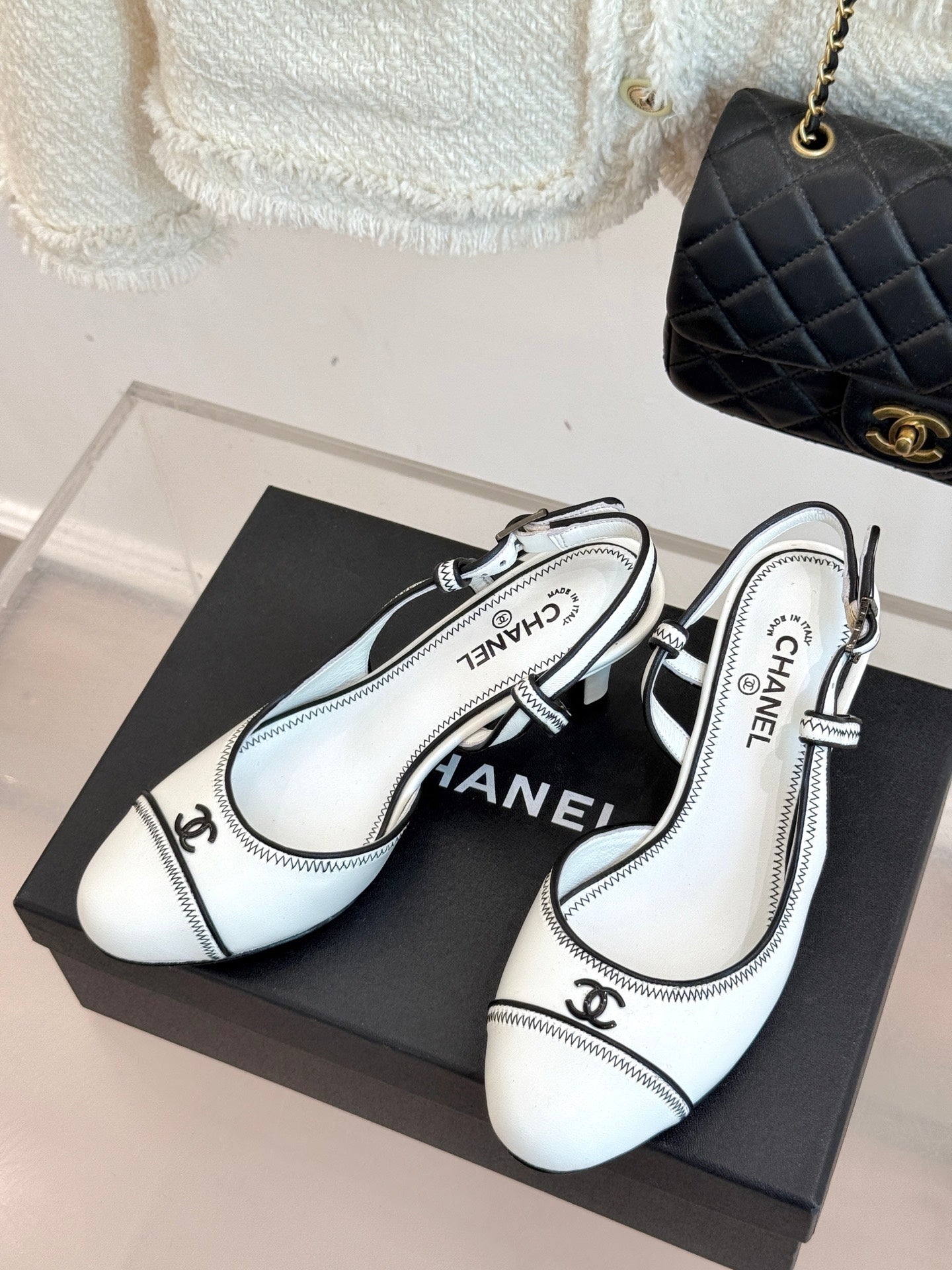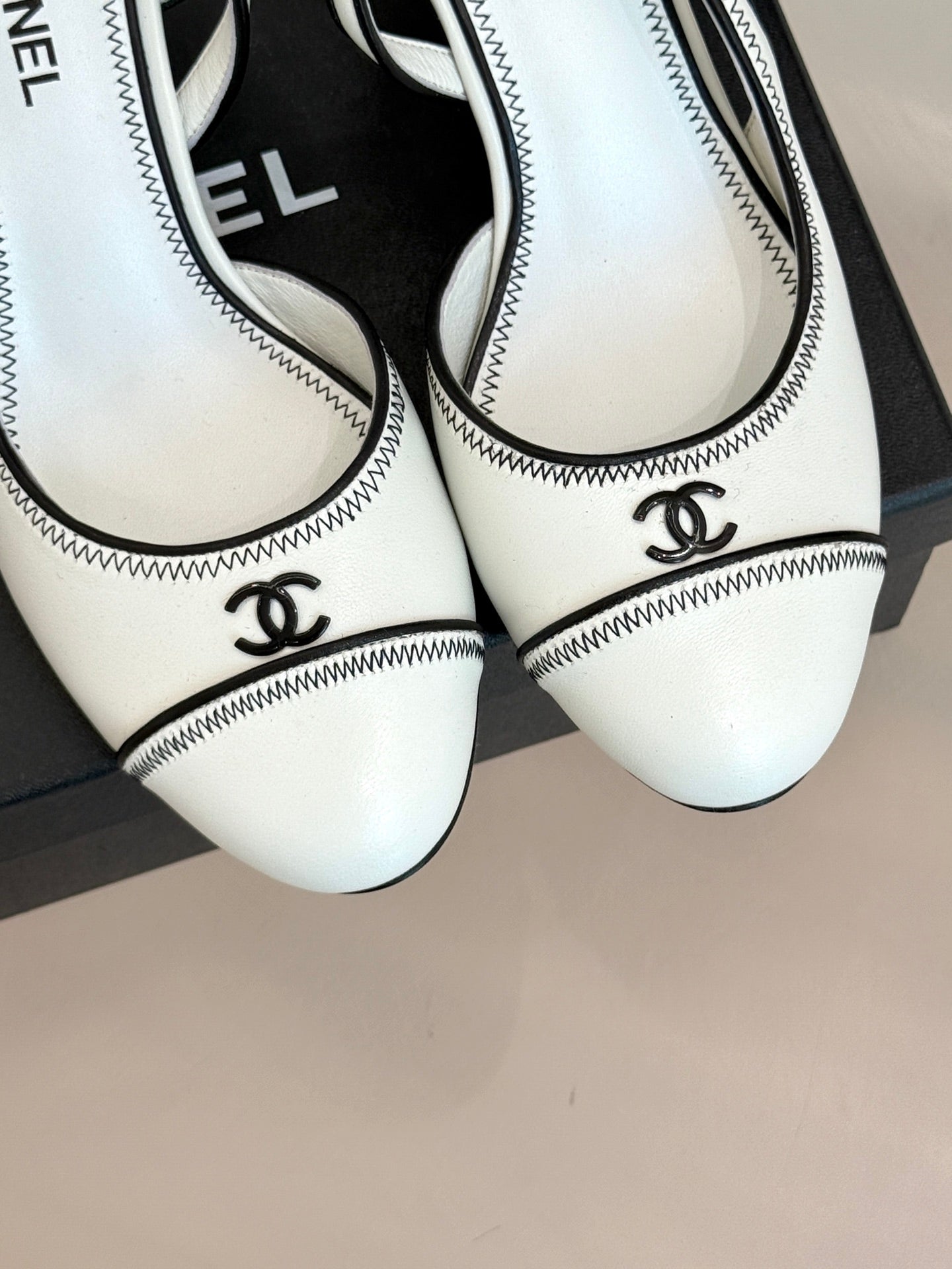 Chanel 25 Slingback 30mm White Black Lambskin 473214