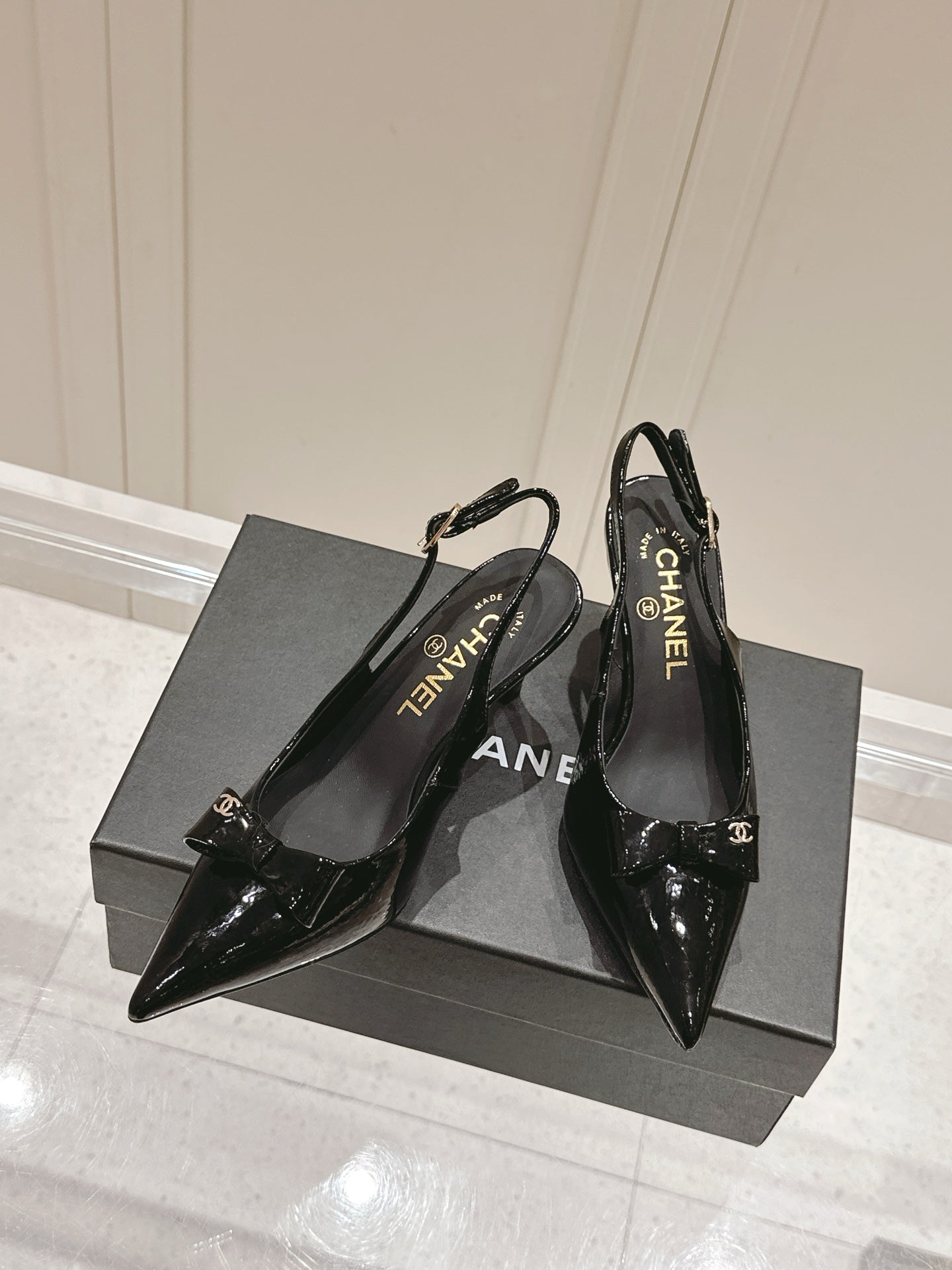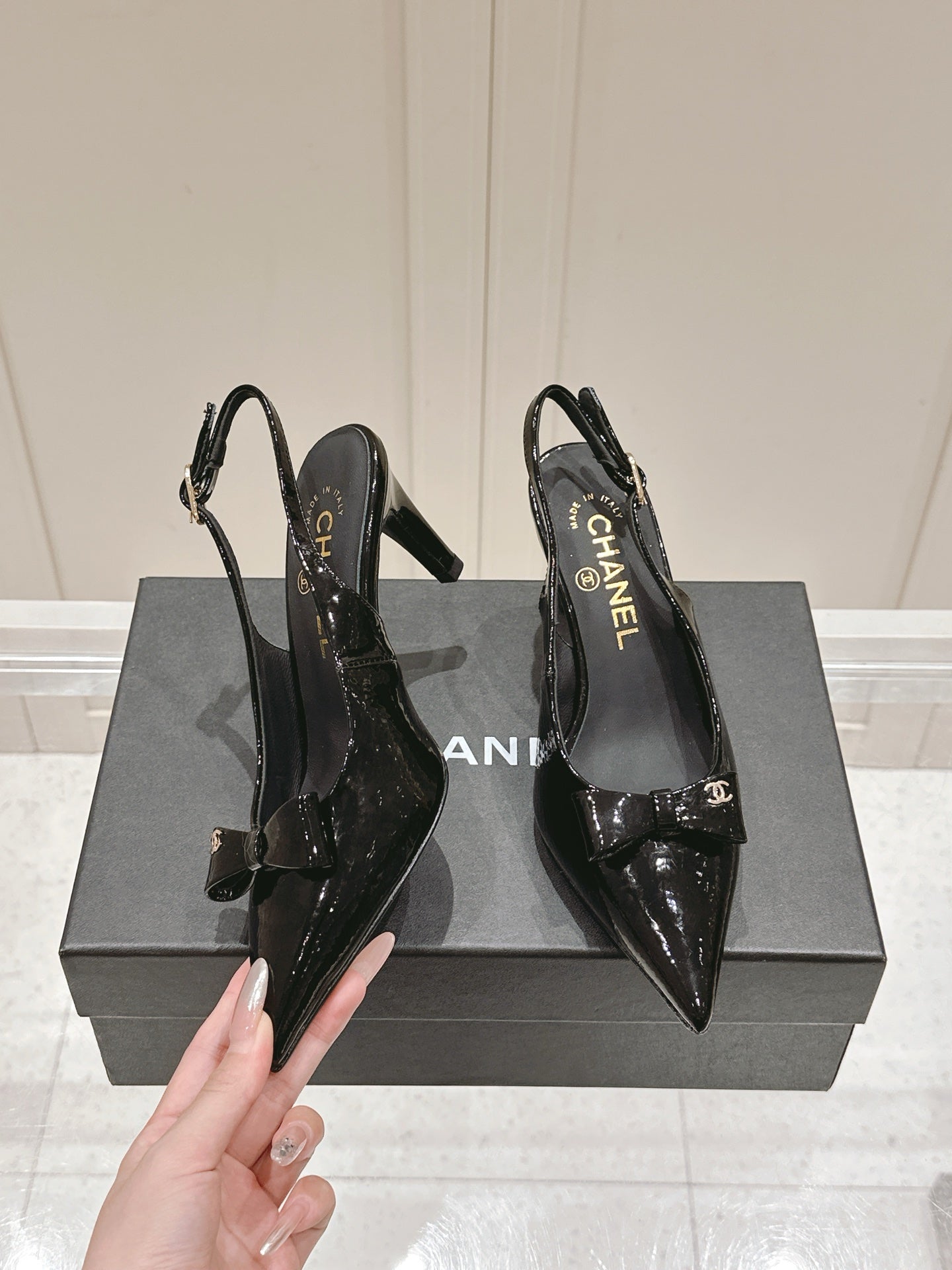 Chanel 25A Slingback Black Patent Calfskin 393073