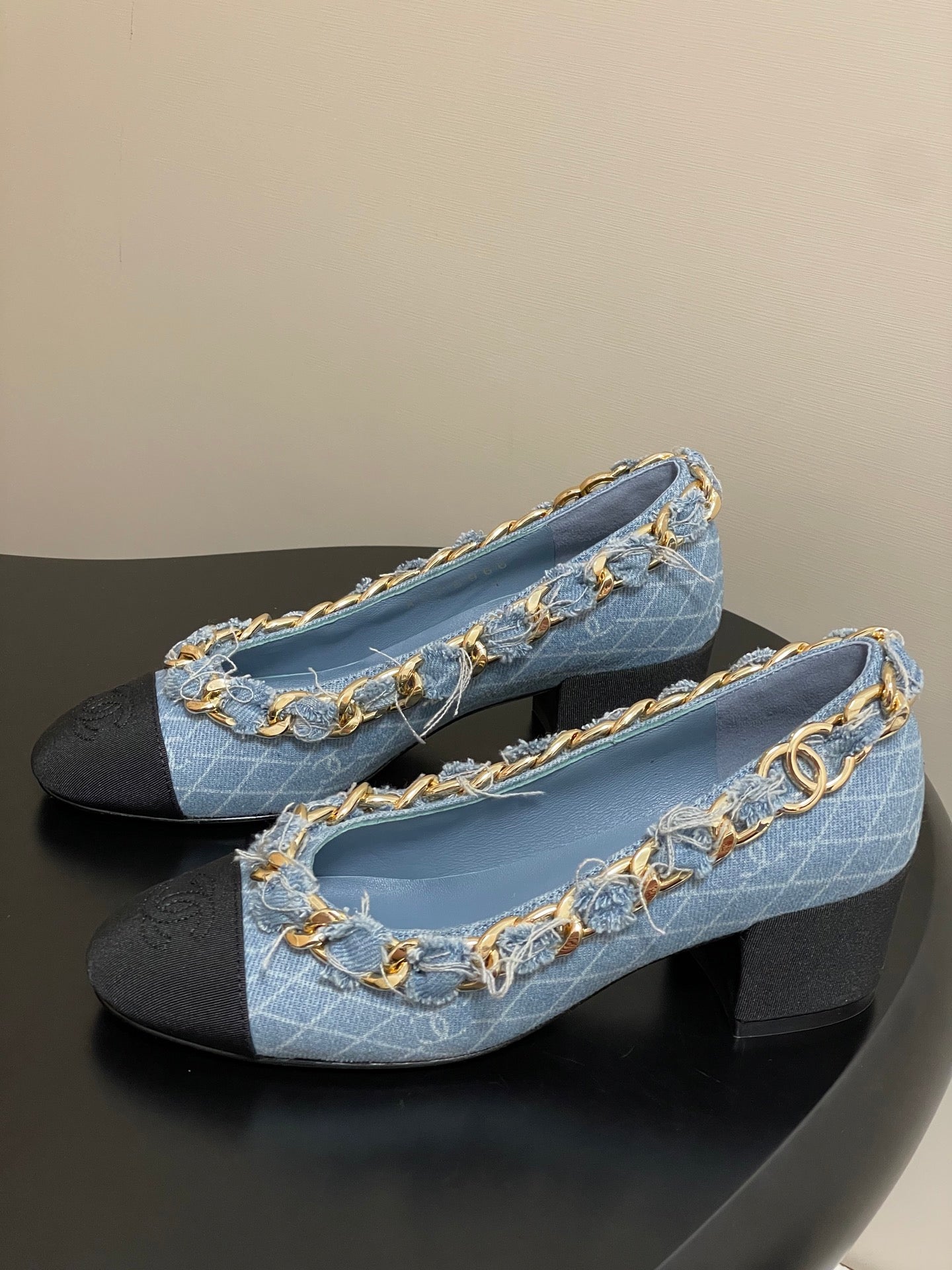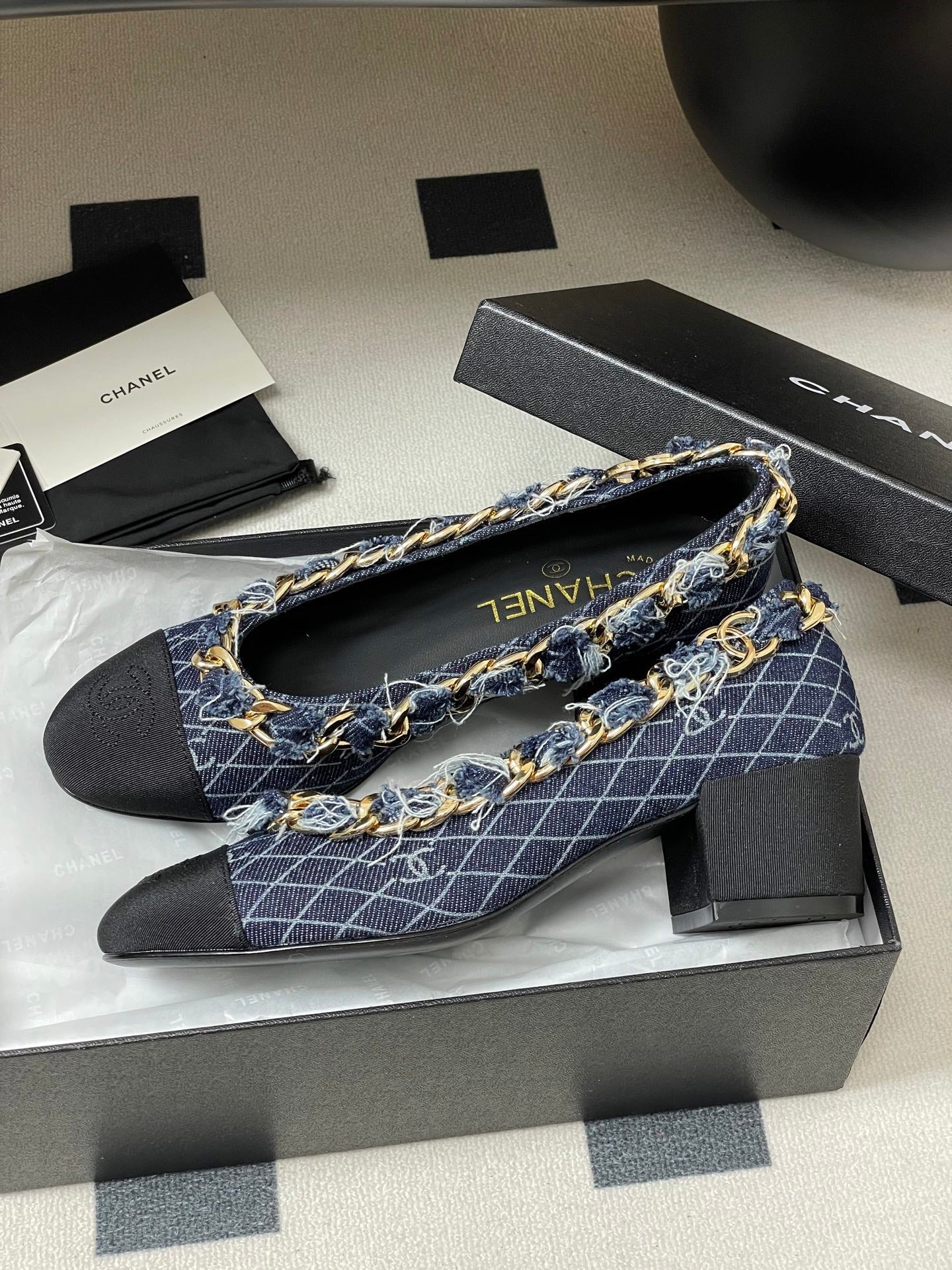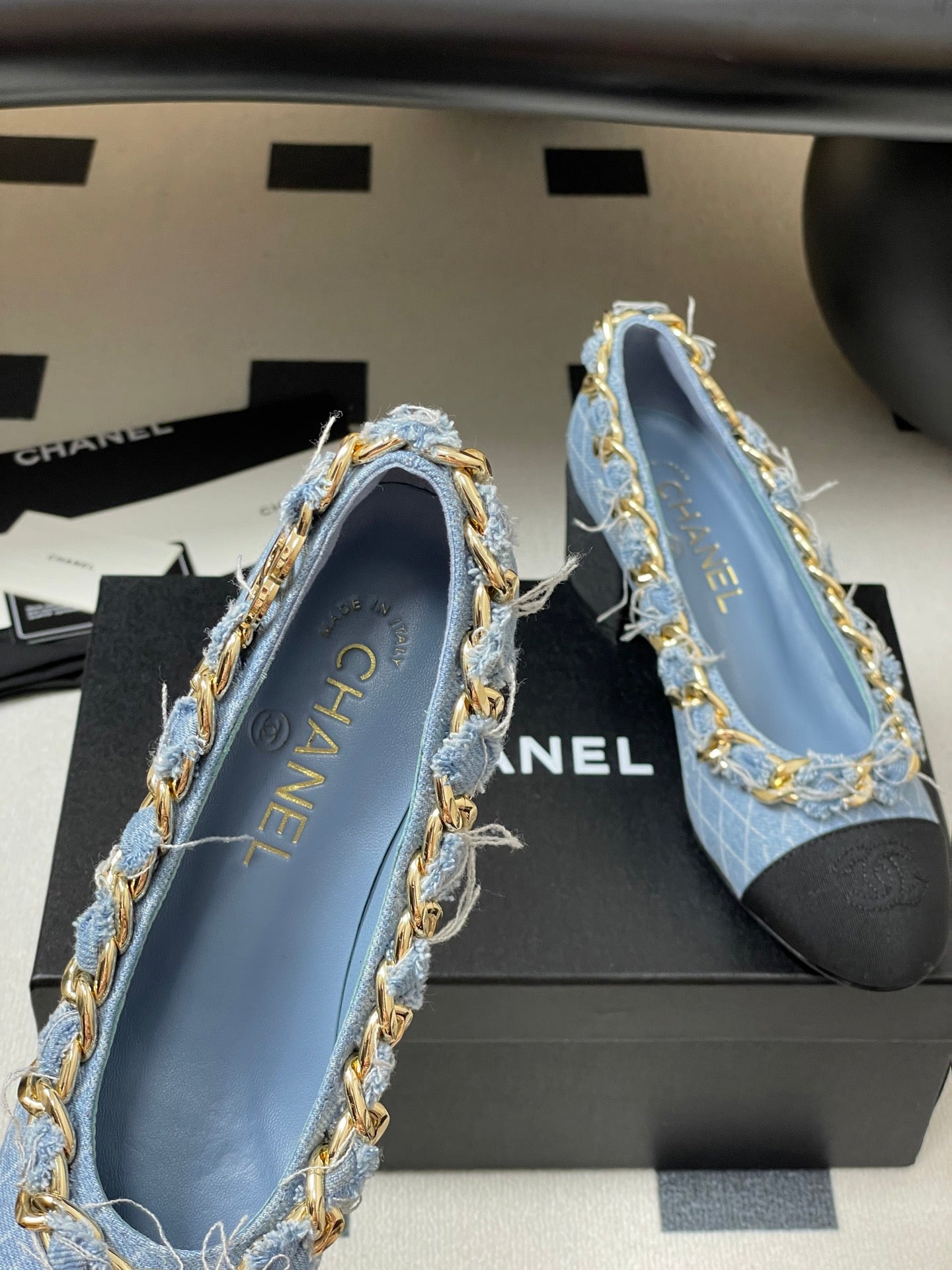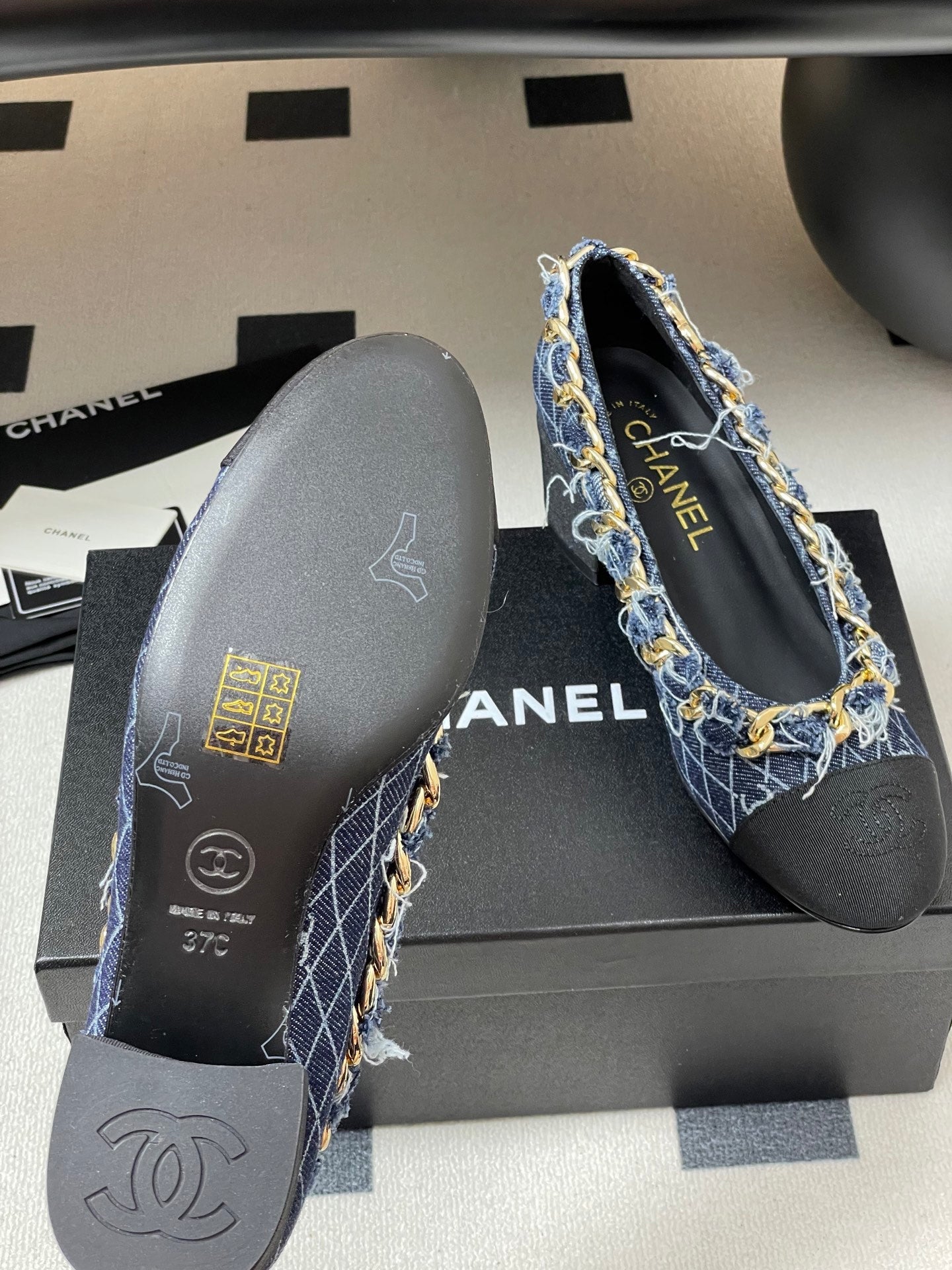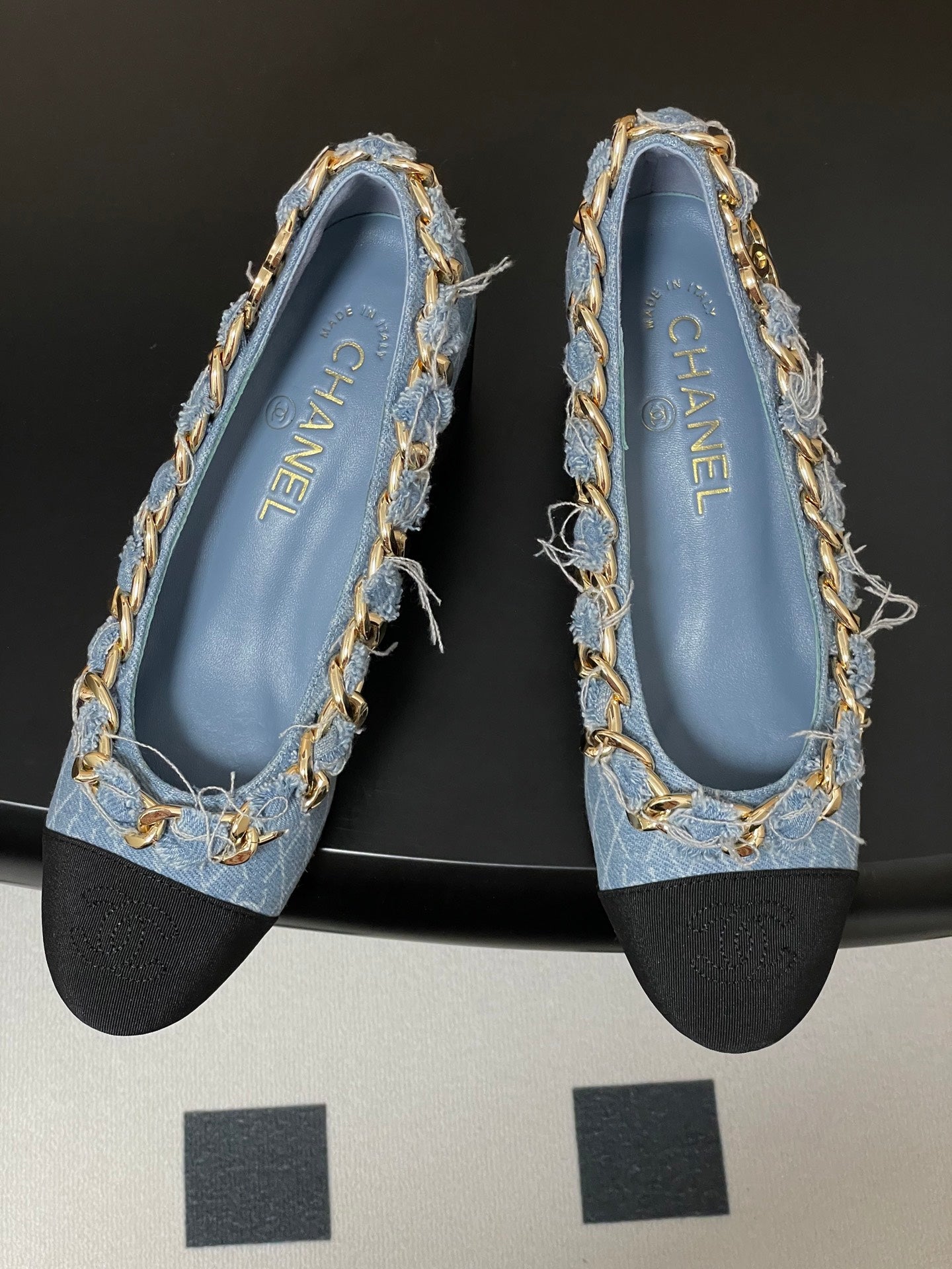 Chanel 25A Ballet Flats Big Chain Double C Blue Denim Sheepskin 393817