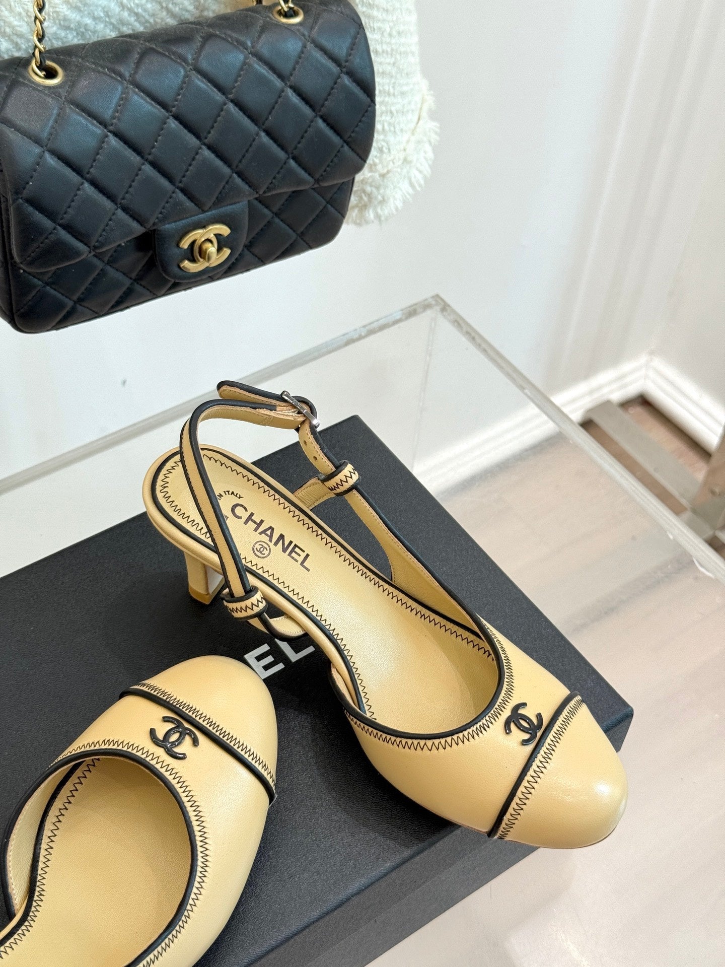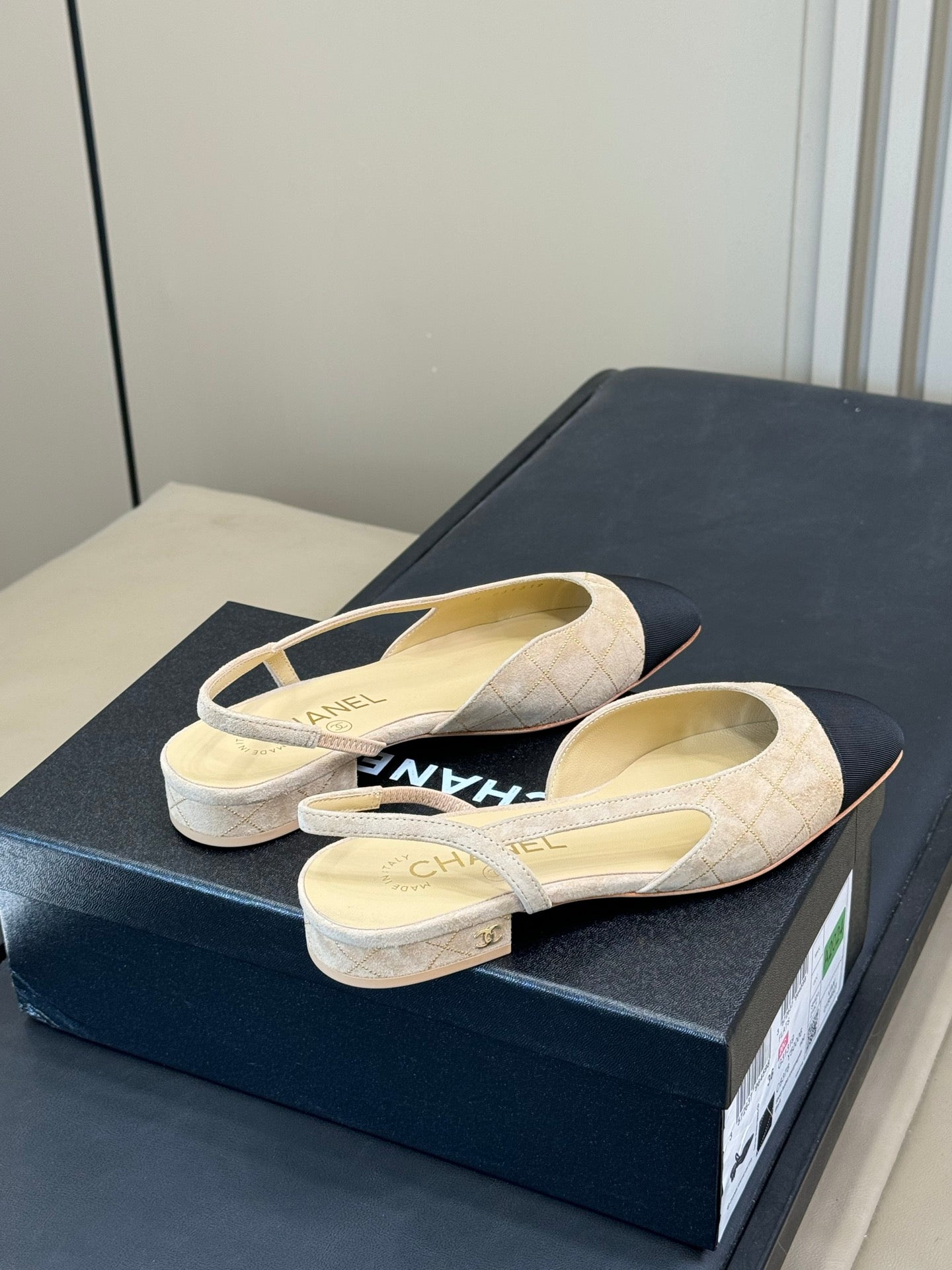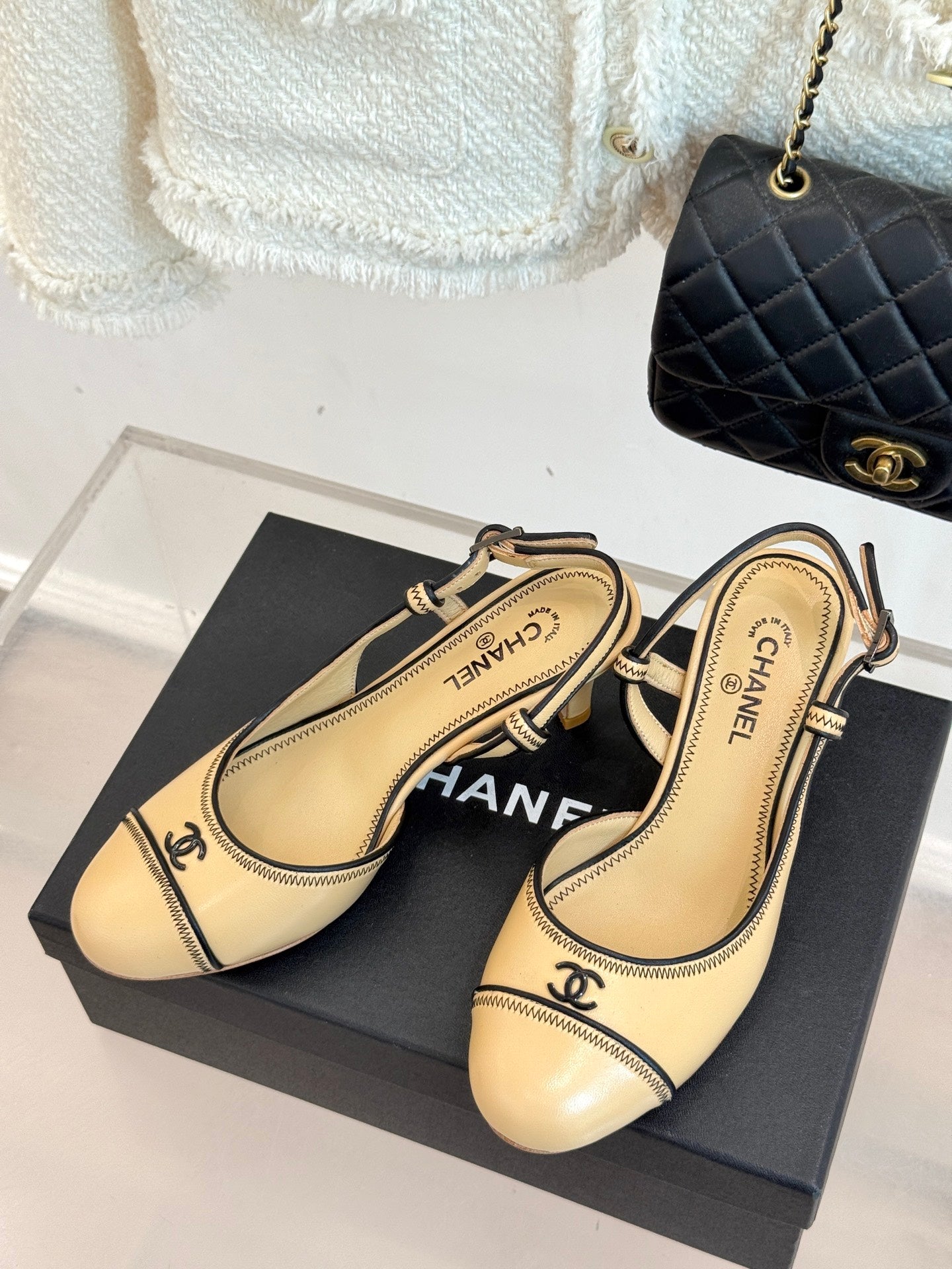 Chanel 25 Slingback Beige Black Sheepskin 473058