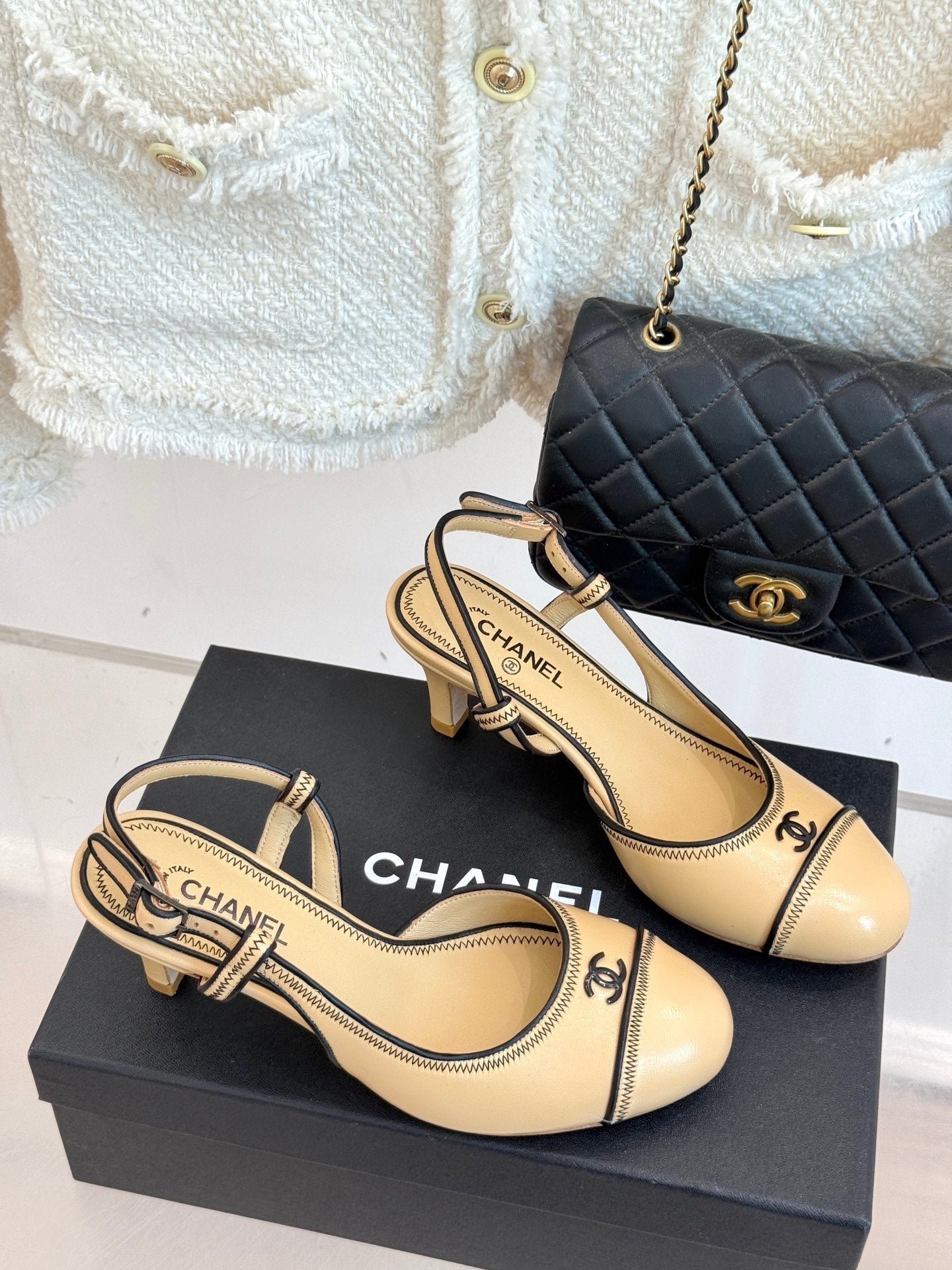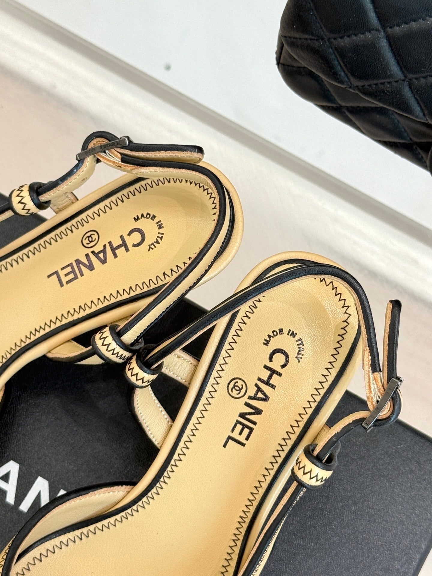 Chanel 25 Slingback 30mm Beige Black Lambskin 473213