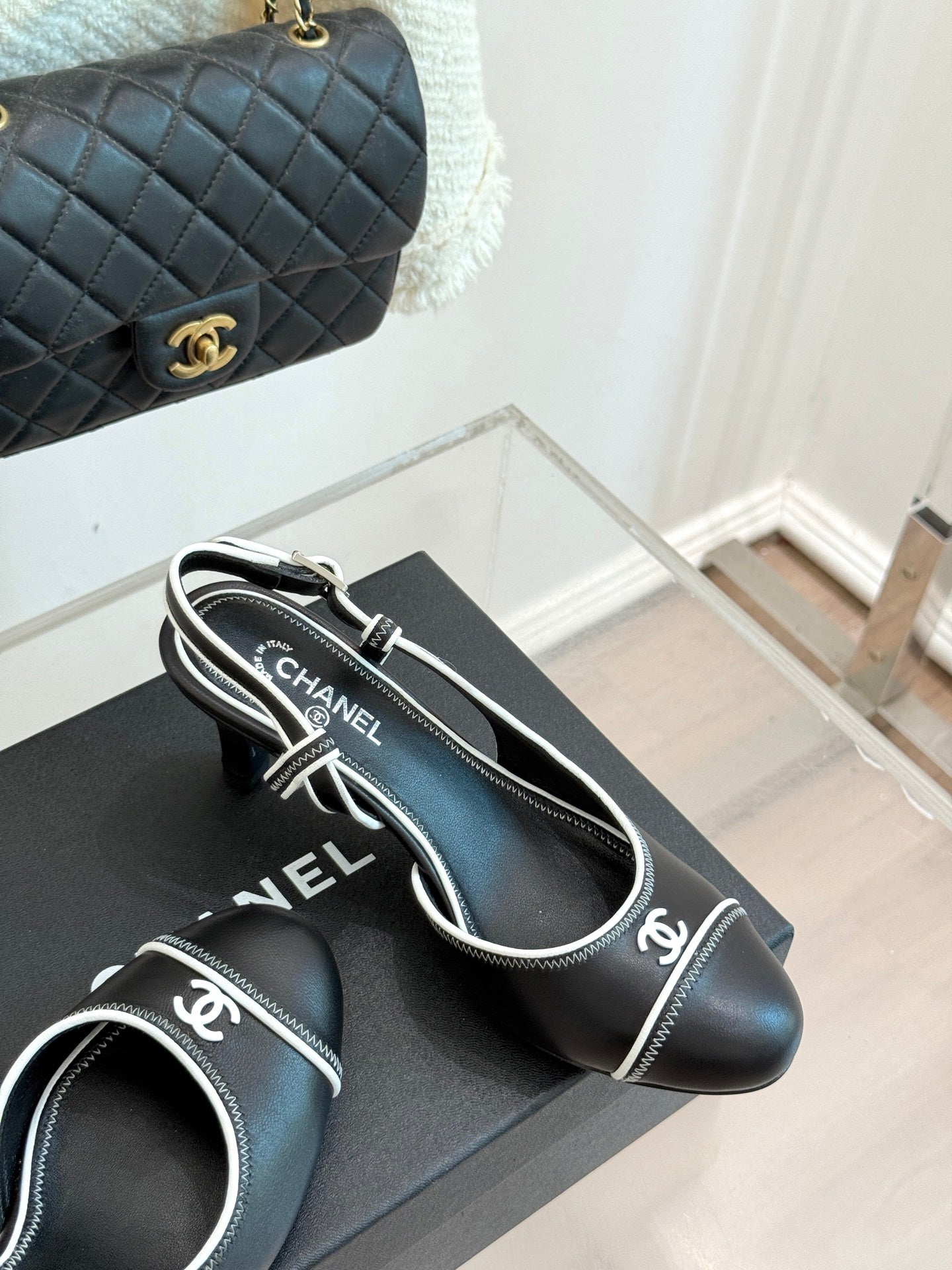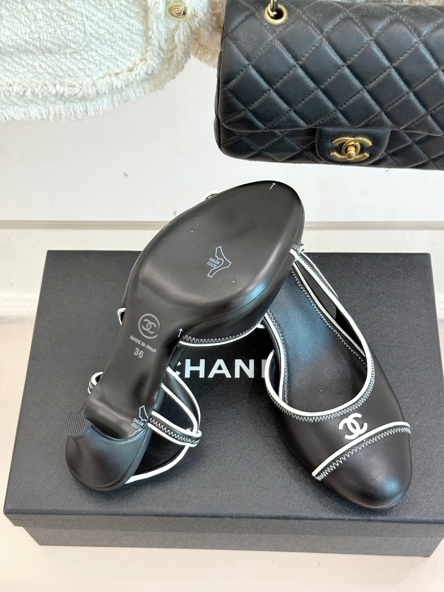 Chanel 25 Slingback Black White Lambskin Fabric 473211