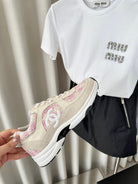 cc sneaker pink tweed dark cream calfskin suede calfskin