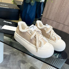 CC Sneaker Thick-Soled Beige Suede Wool Lining Fleece