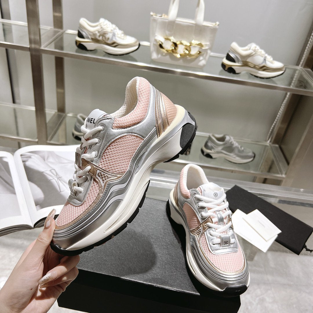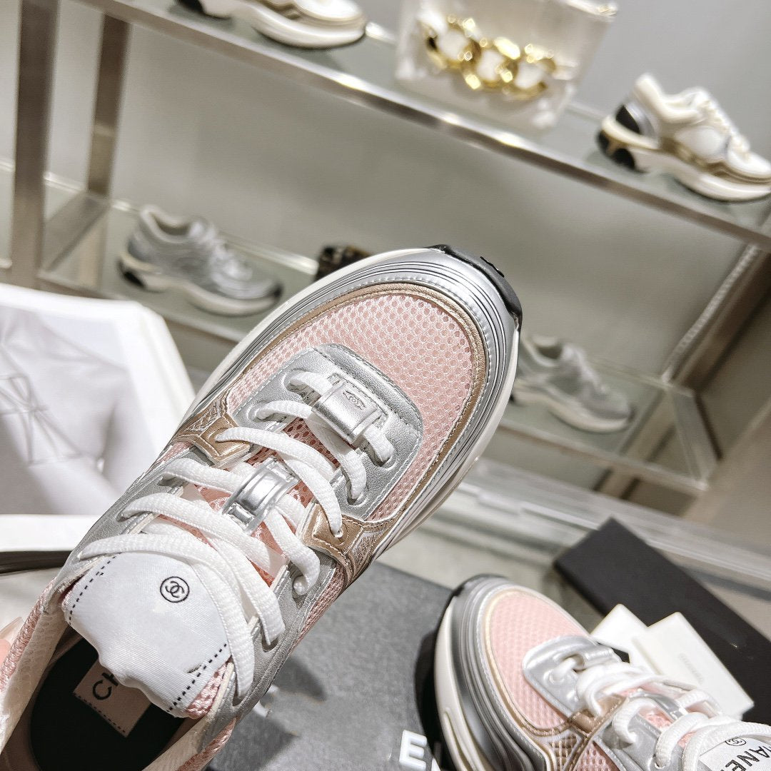 cc trainer grey calfskin pink mesh