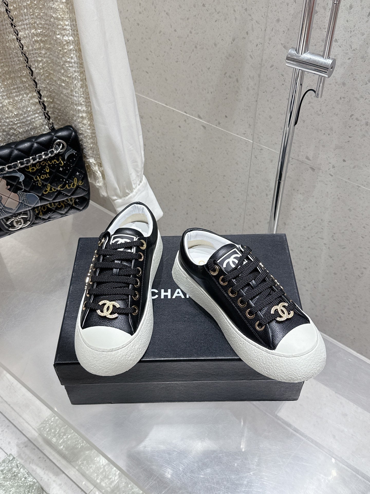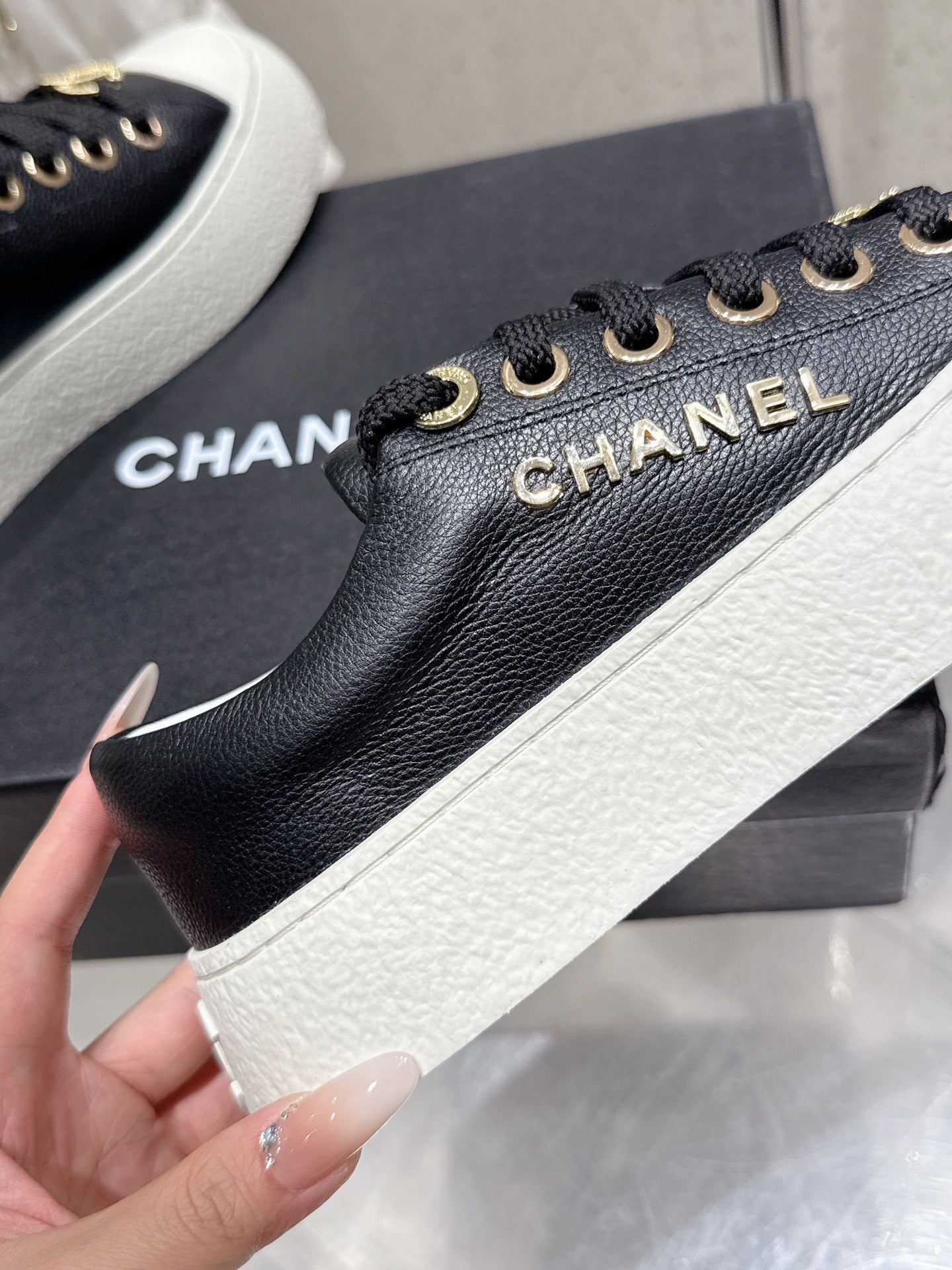 Chanel 2025 Quilted High-Top Sneakers Black White Cowhide 469789
