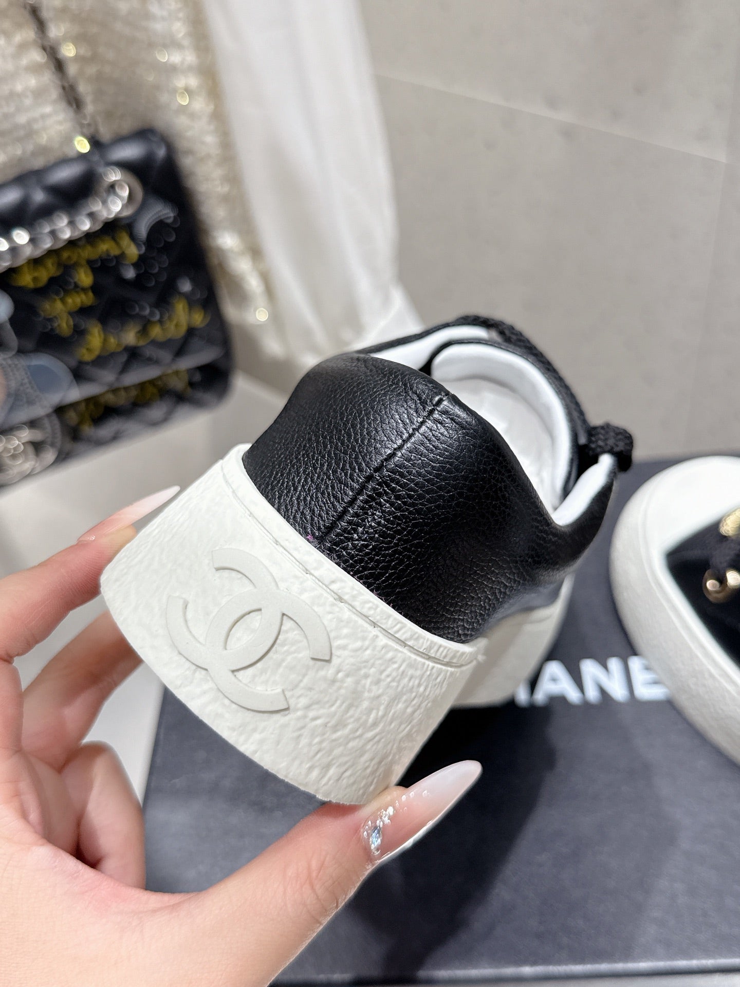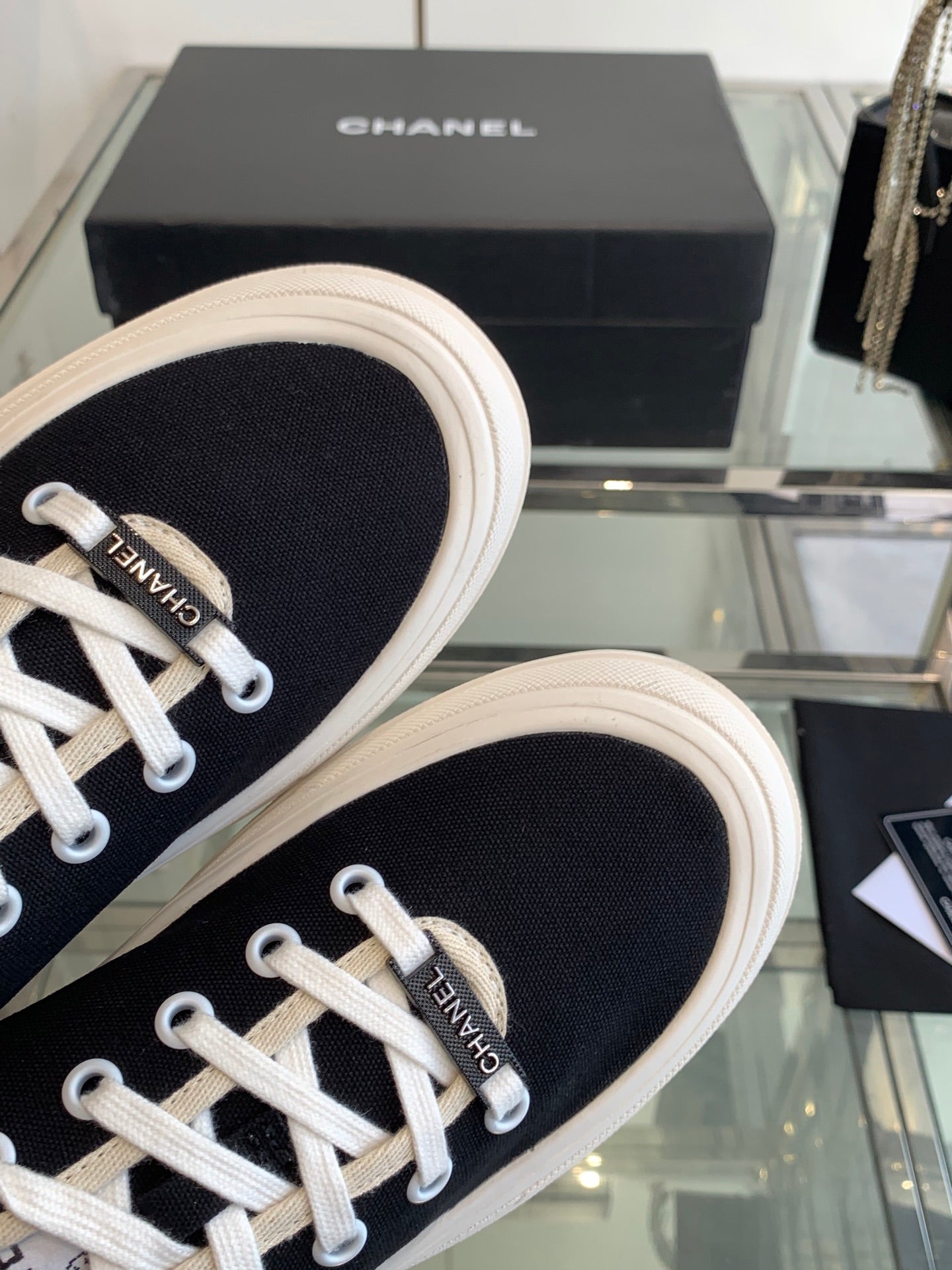 Chanel 2025 High-Top Sneakers Black White Cowhide Denim Frabic 469799
