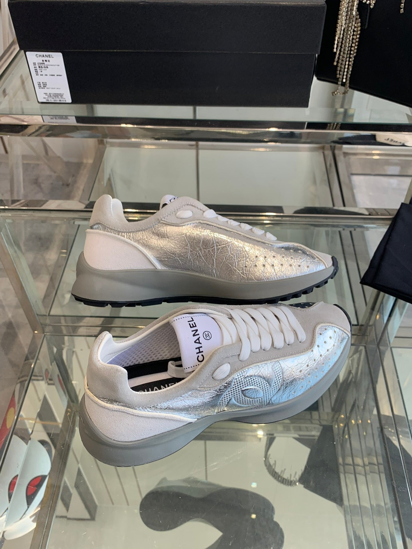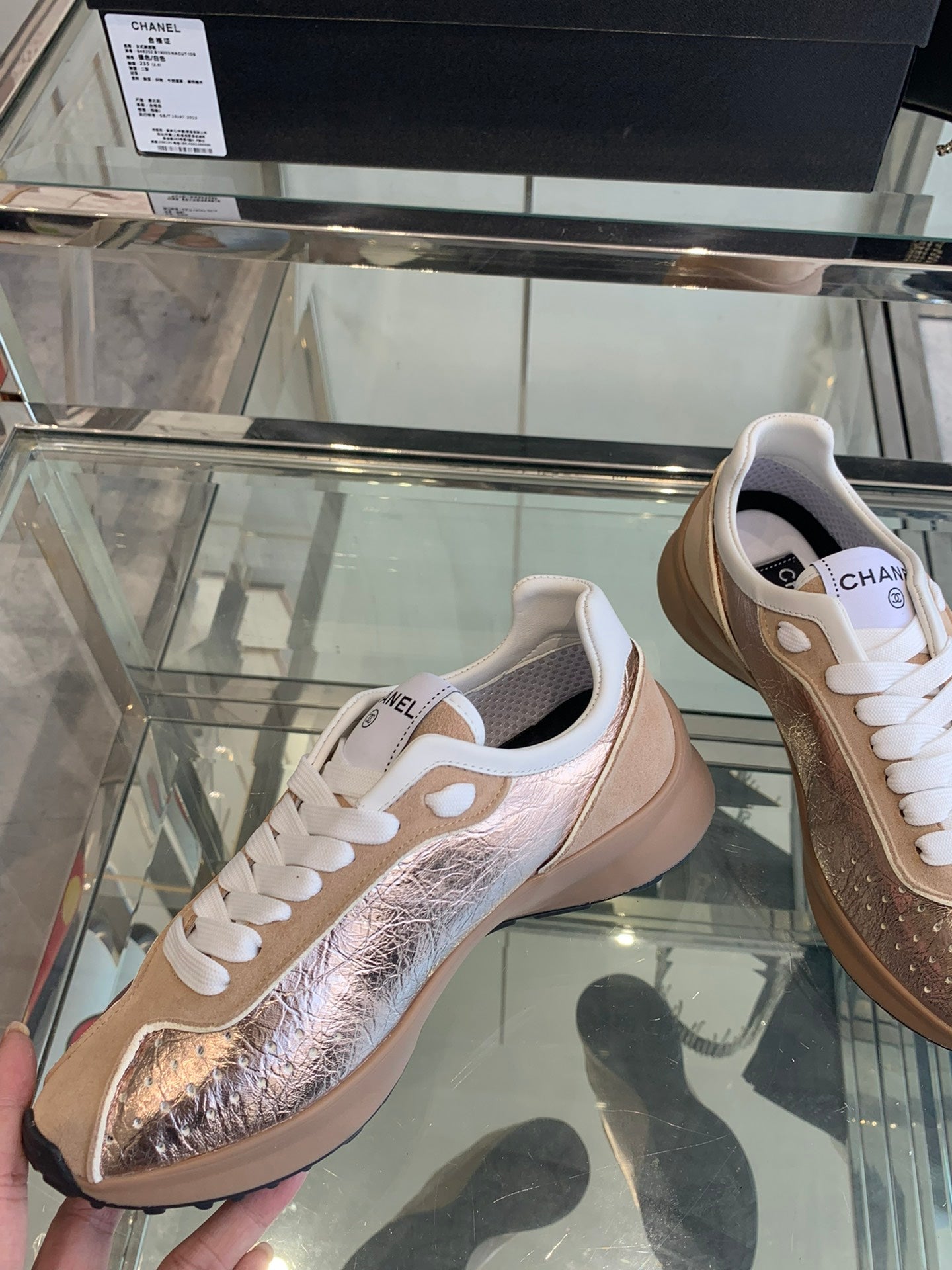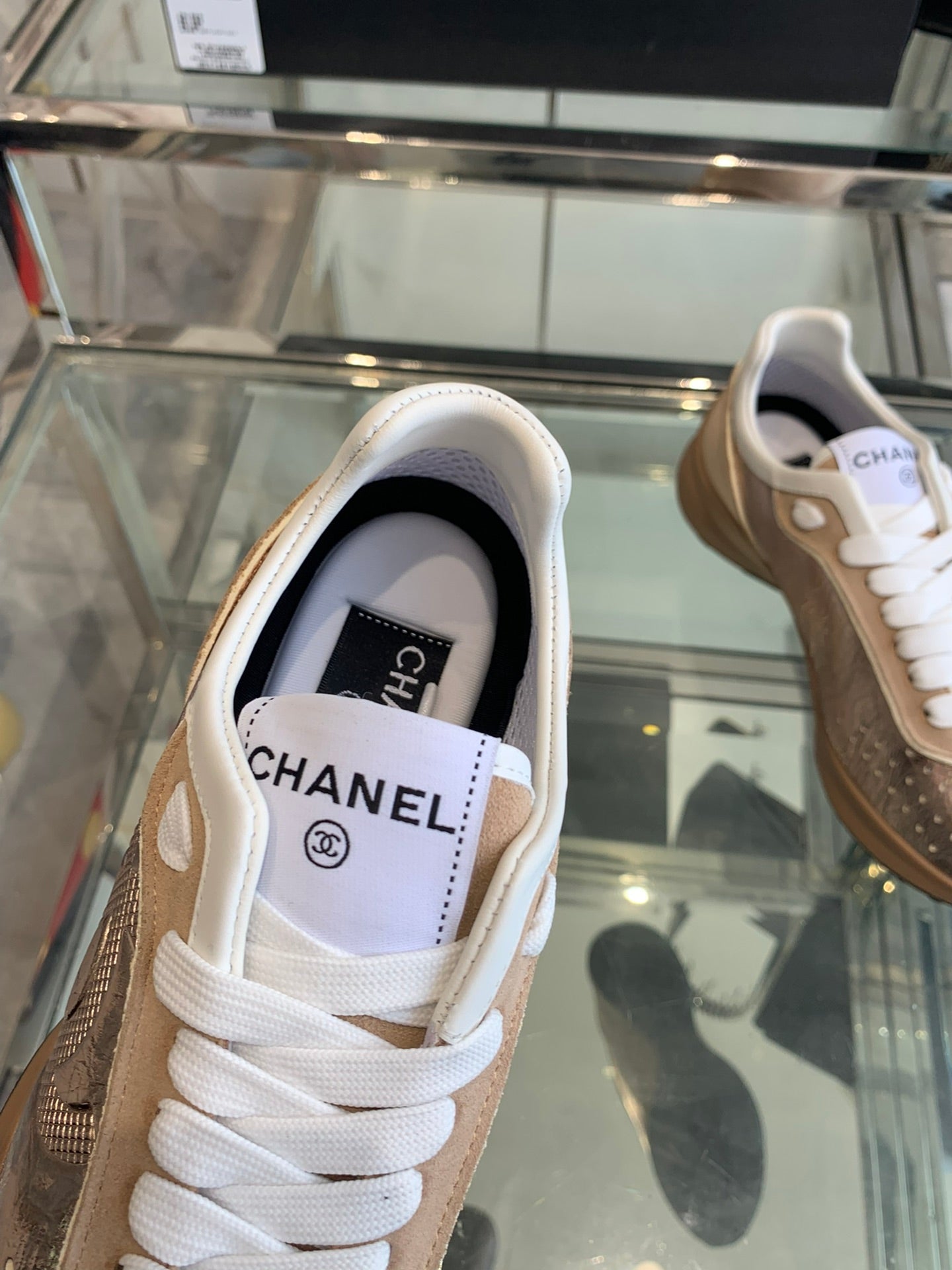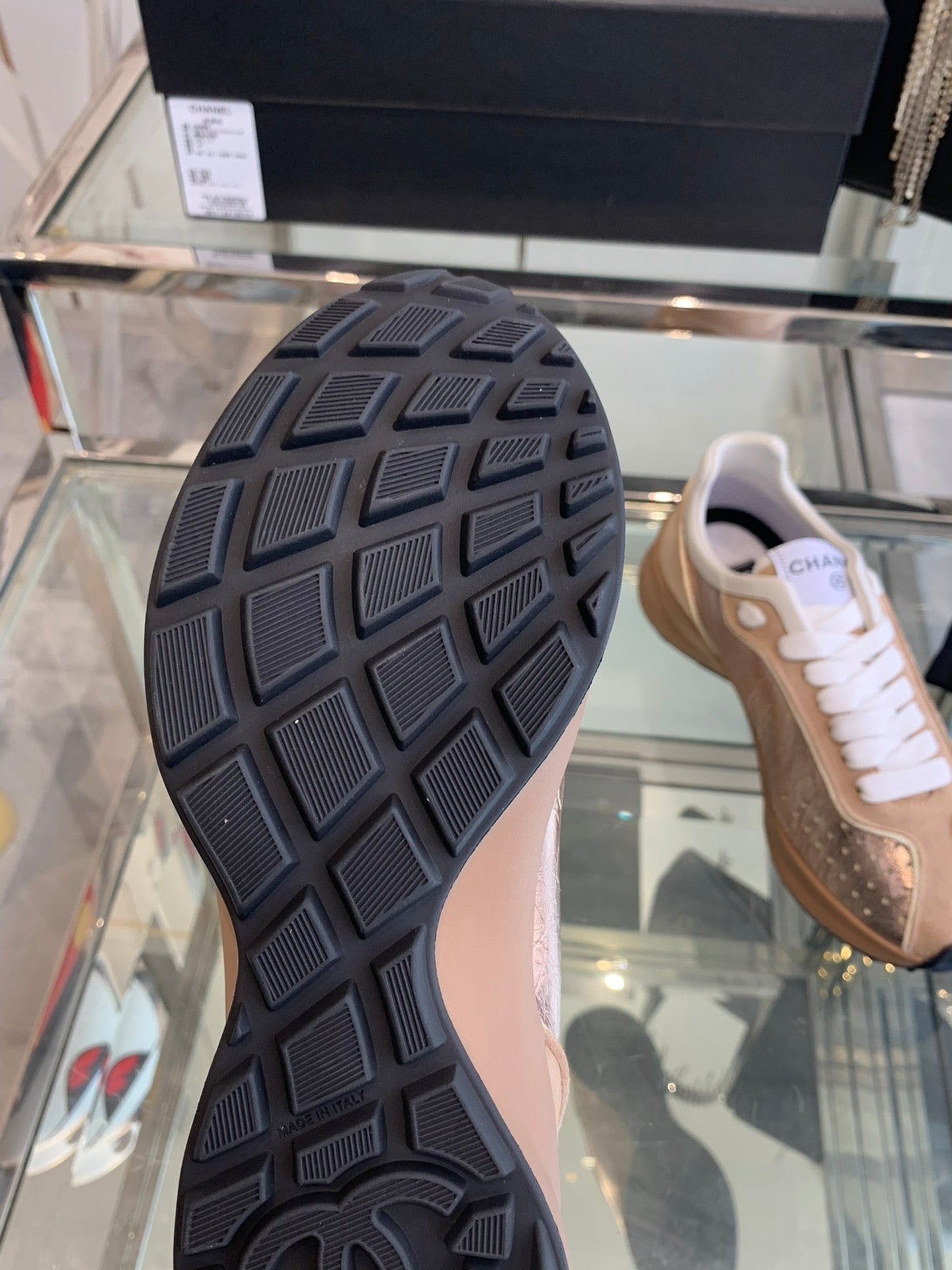 Chanel 25A Sports Shoes White Black Mix Pastel Peach 393115
