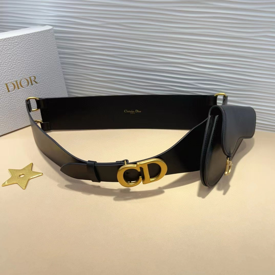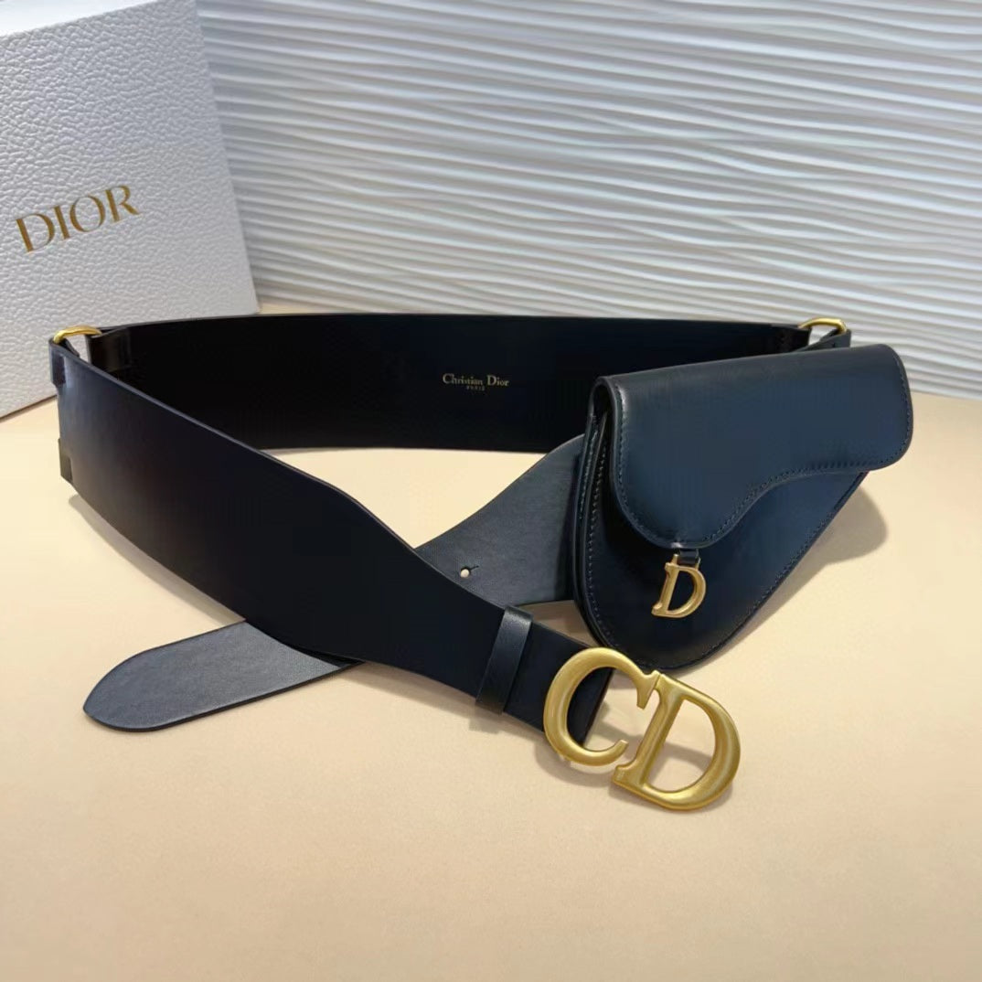 cd saddle belt with pouch black calfskin