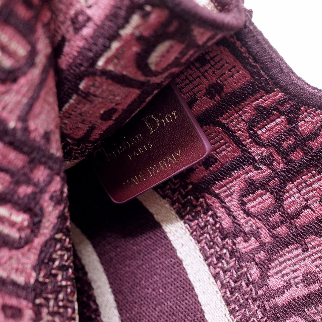 cd mini book tote 23cm burgundy beige embroidery canvas