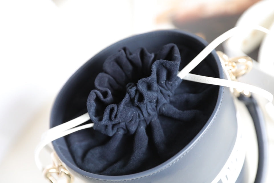 ROUND BUCKET 21 BAG IN BLACK LAMBSKIN