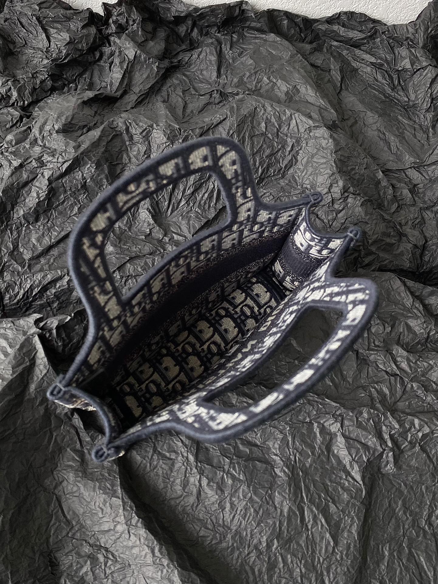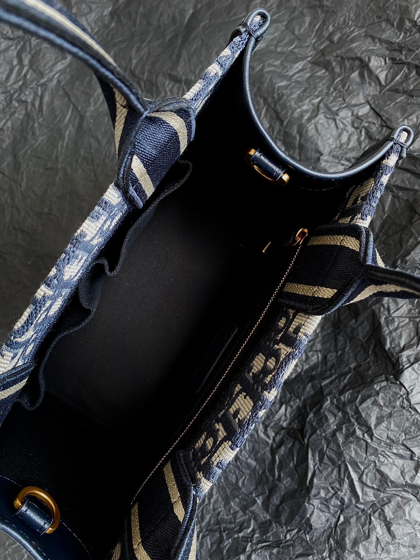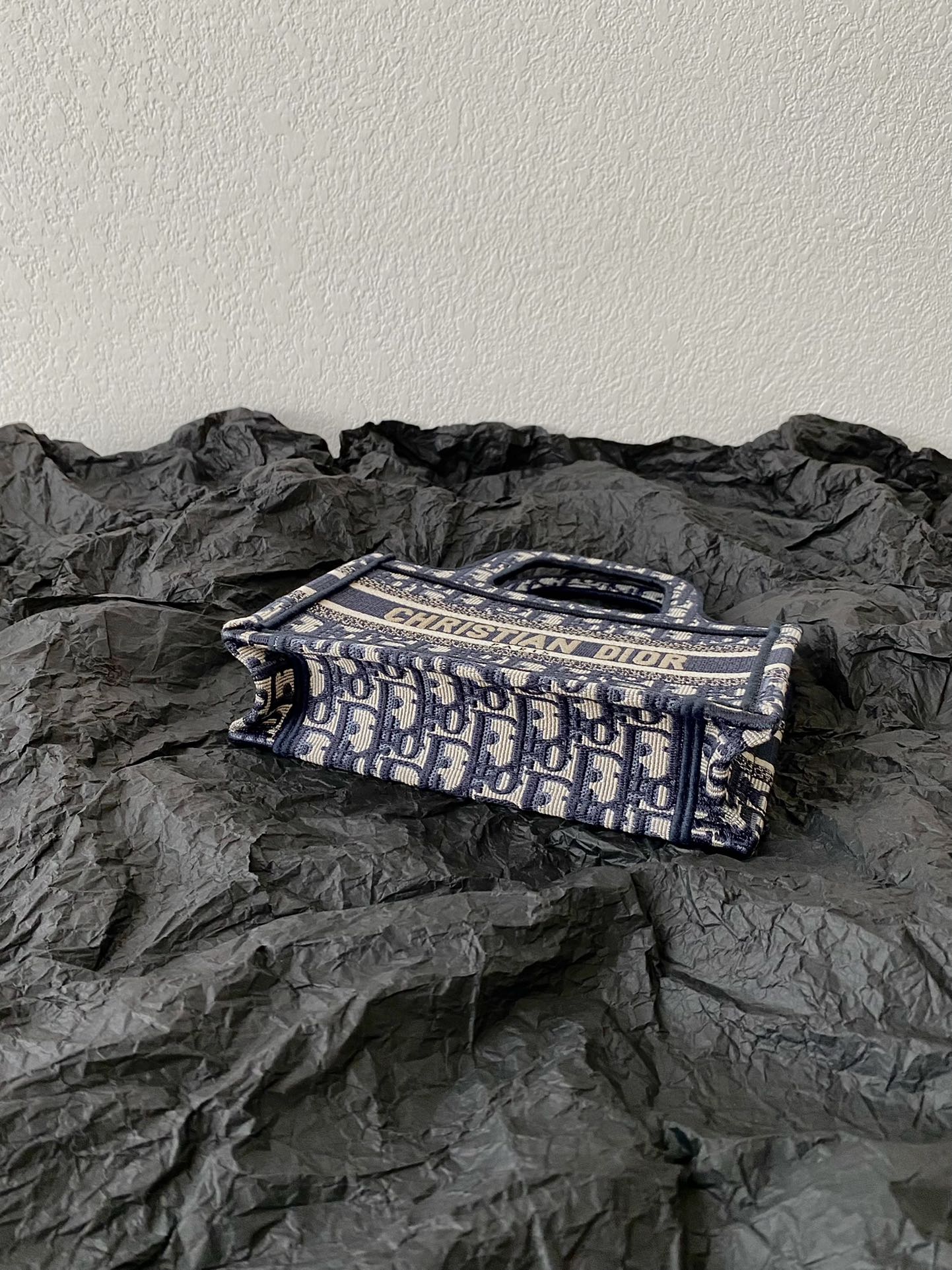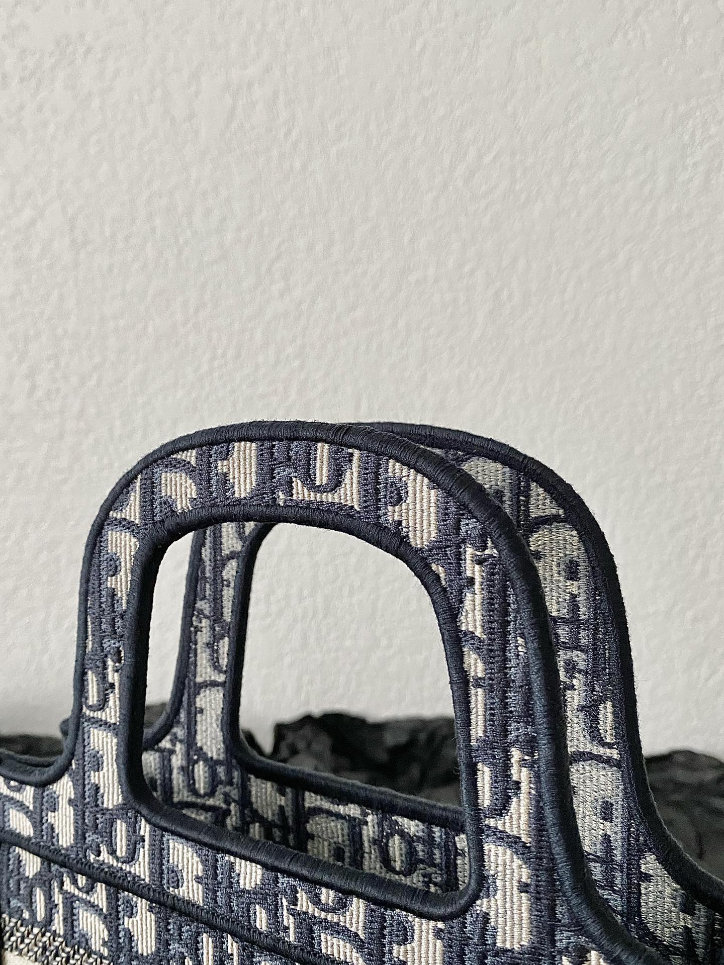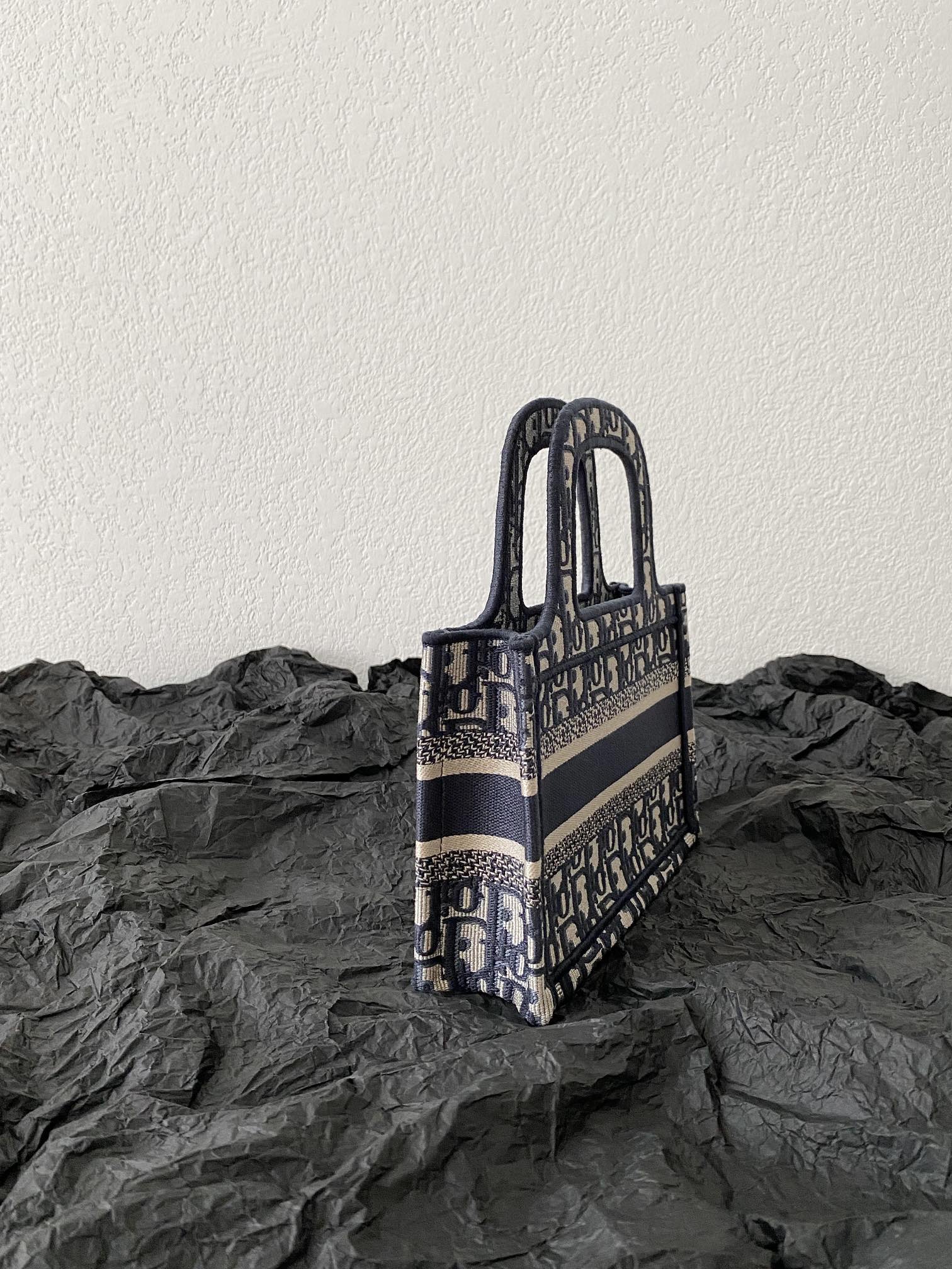 MINI BOOK TOTE 21 BLUE OBLIQUE EMBROIDERY