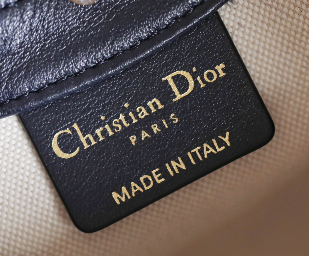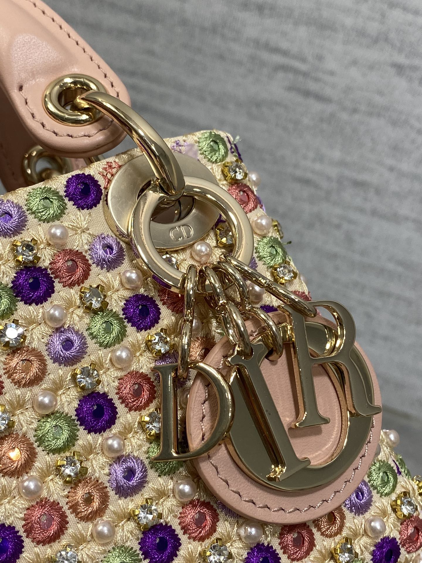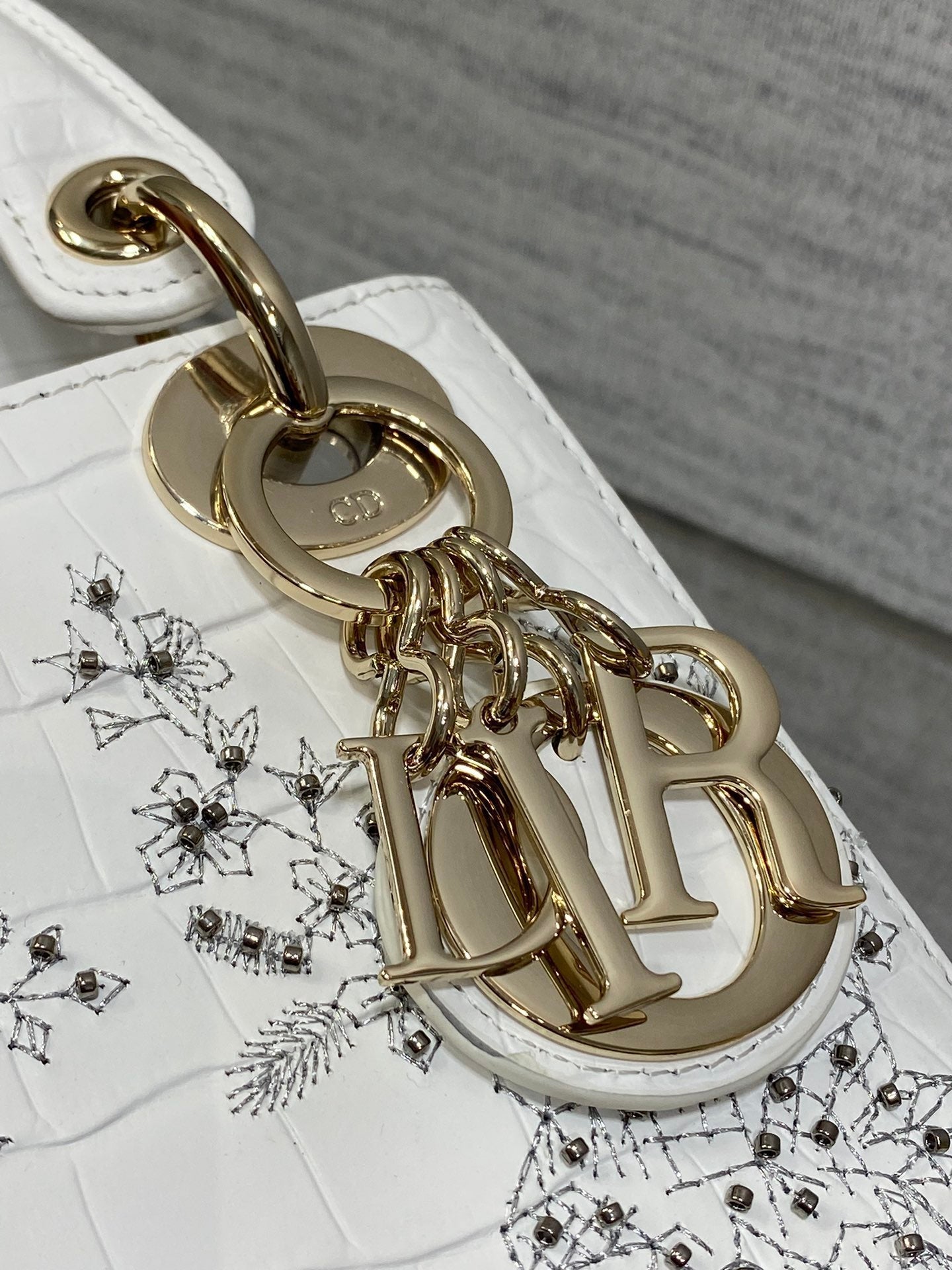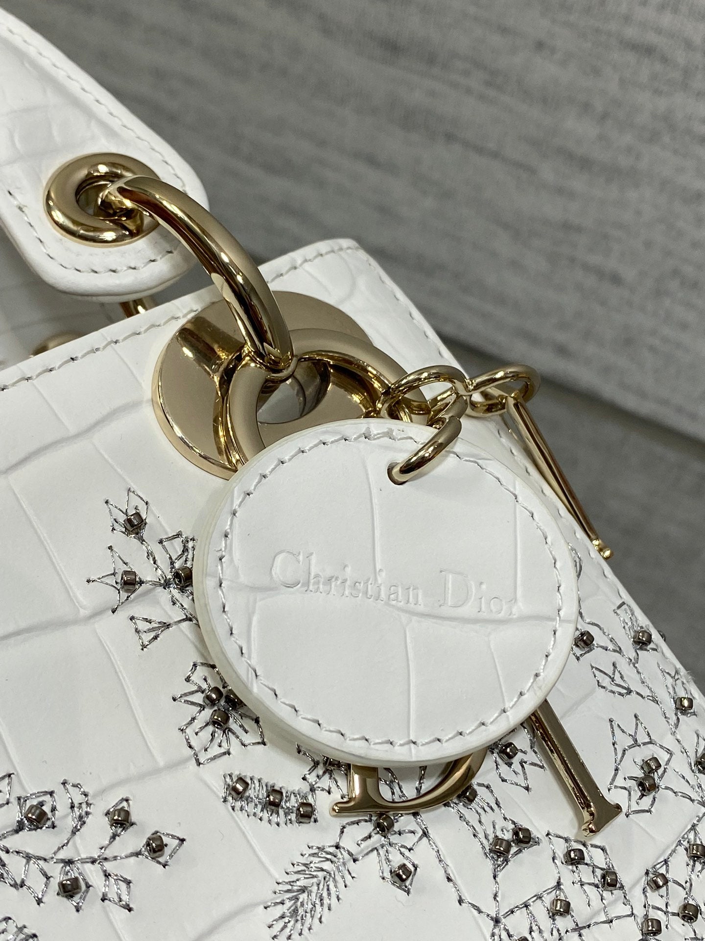 Lady Bag 20cm White Calfskin Blue Black Embroidery