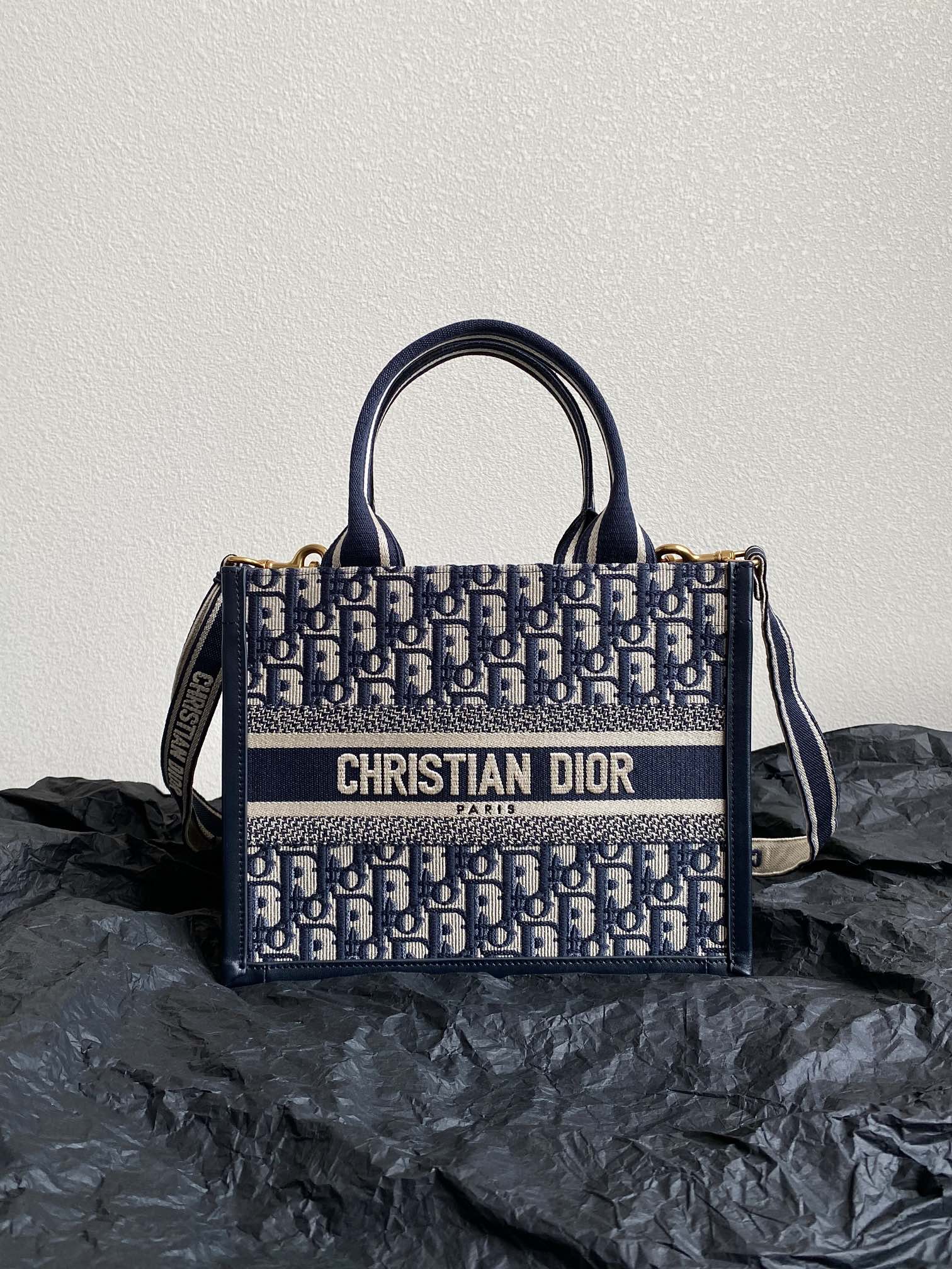 MEDIUM BOOK TOTE 36 BLUE OBLIQUE EMBROIDERY