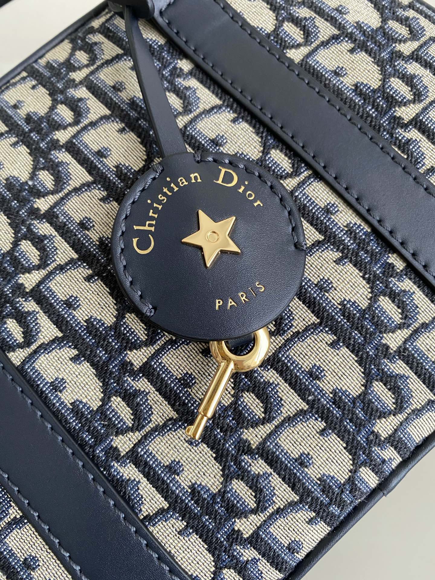 DIORSTAR 28 HOBO BAG WITH CHAIN BLUE DENIM OBLIQUE JACQUARD