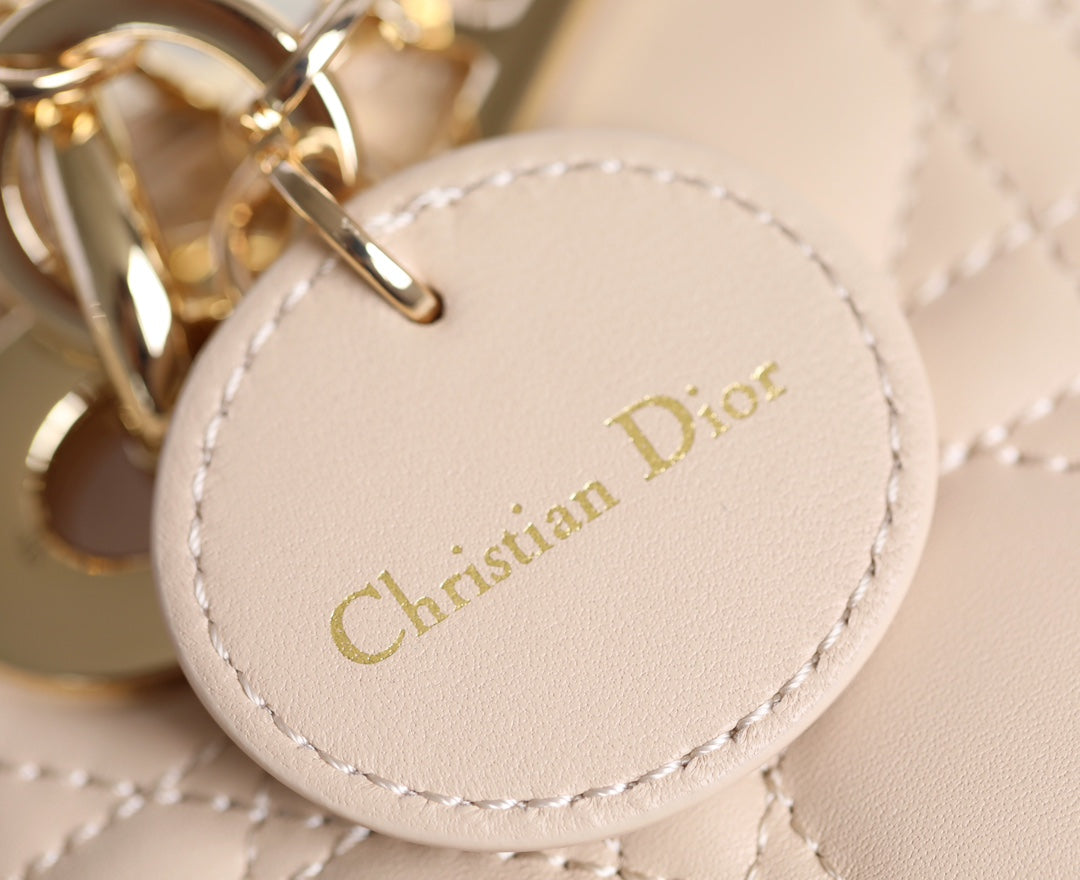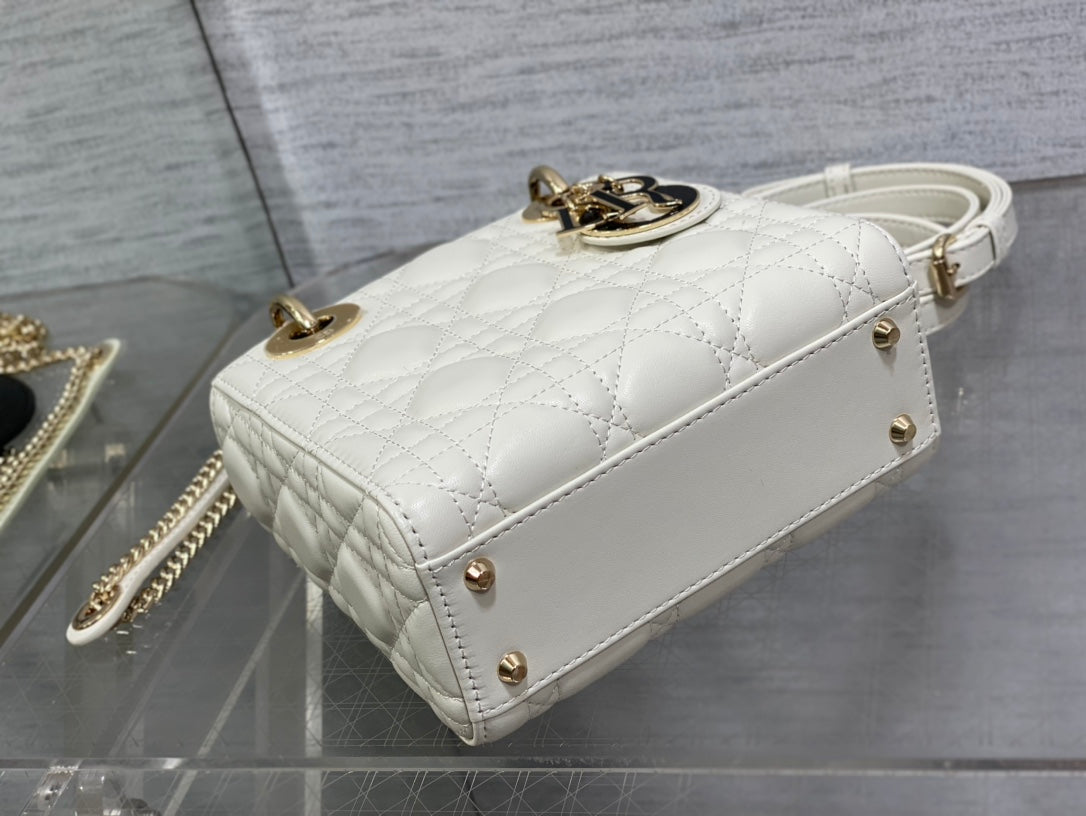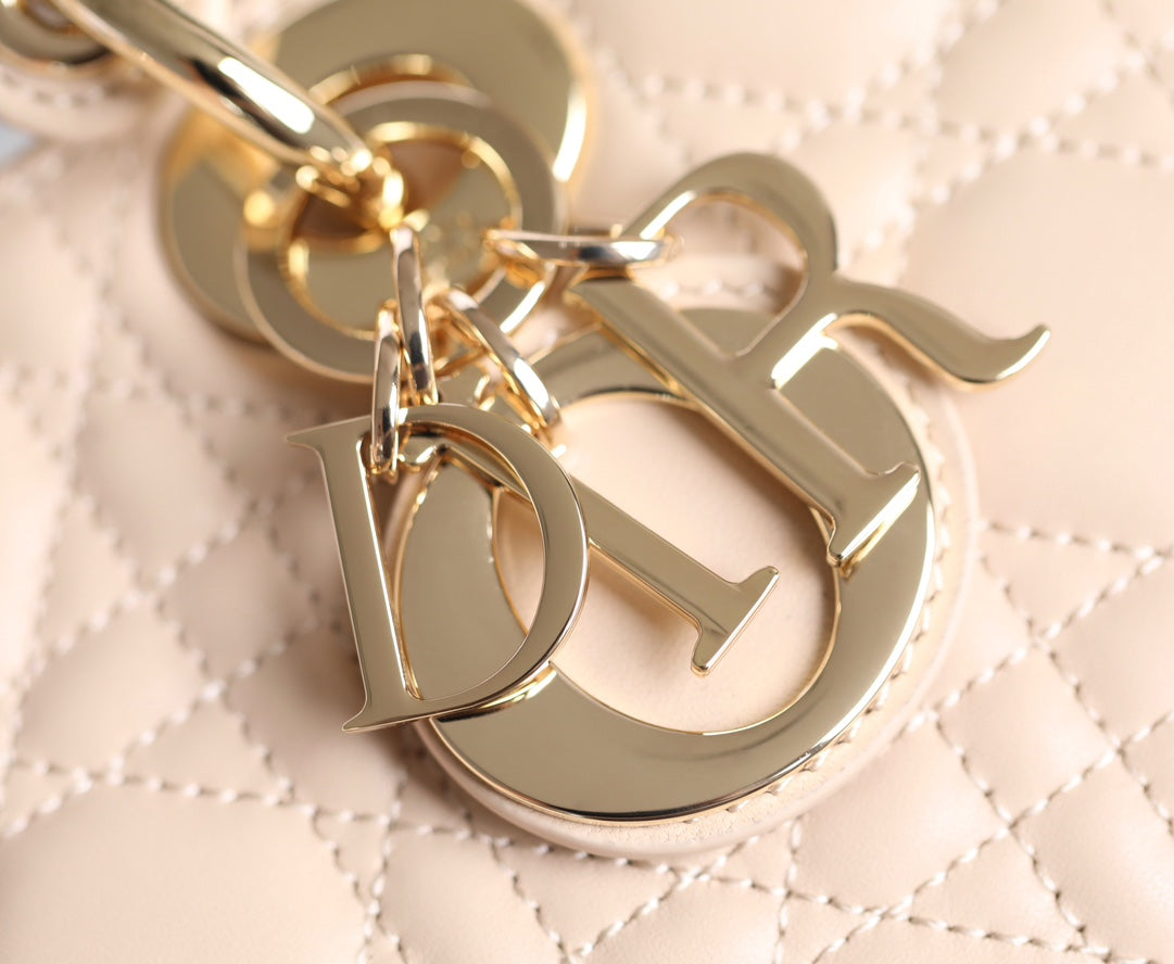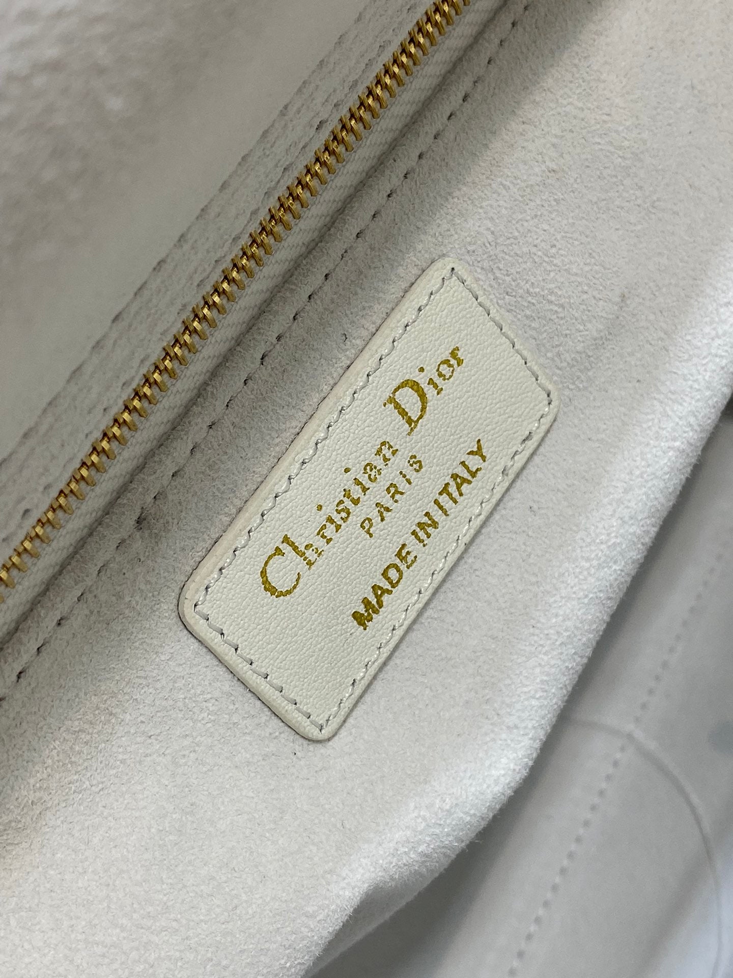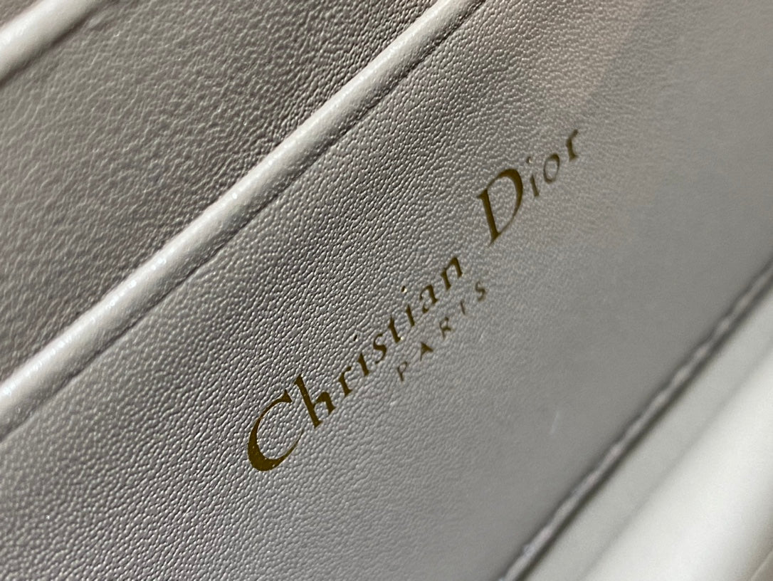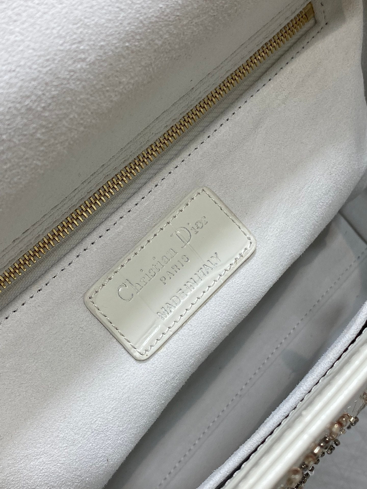 MEDIUM LADY D-JOY 26 WHITE LATTE CALFSKIN PEARL
