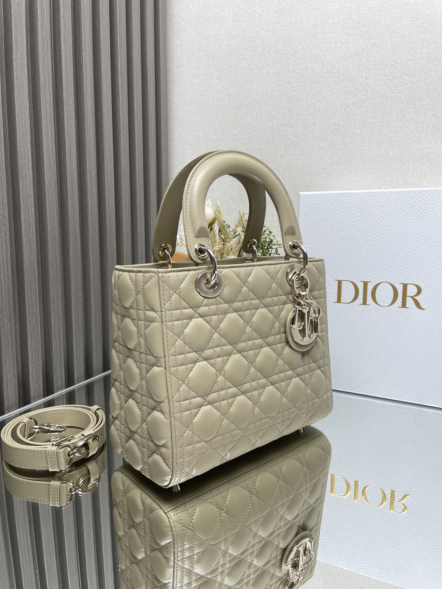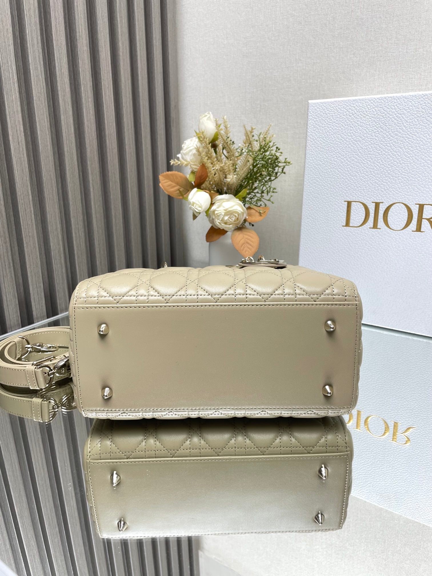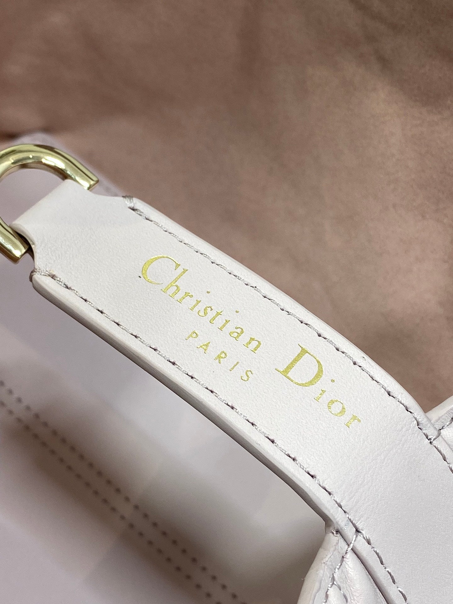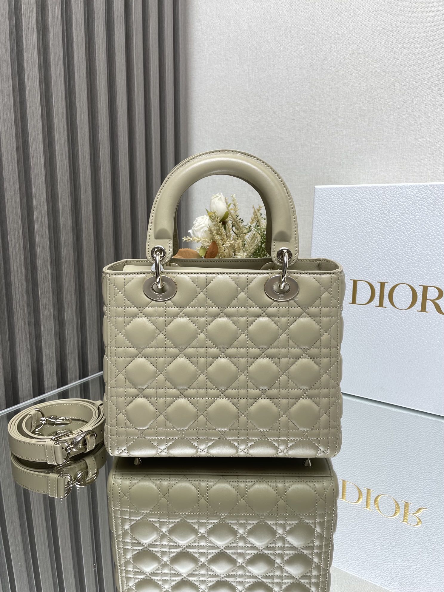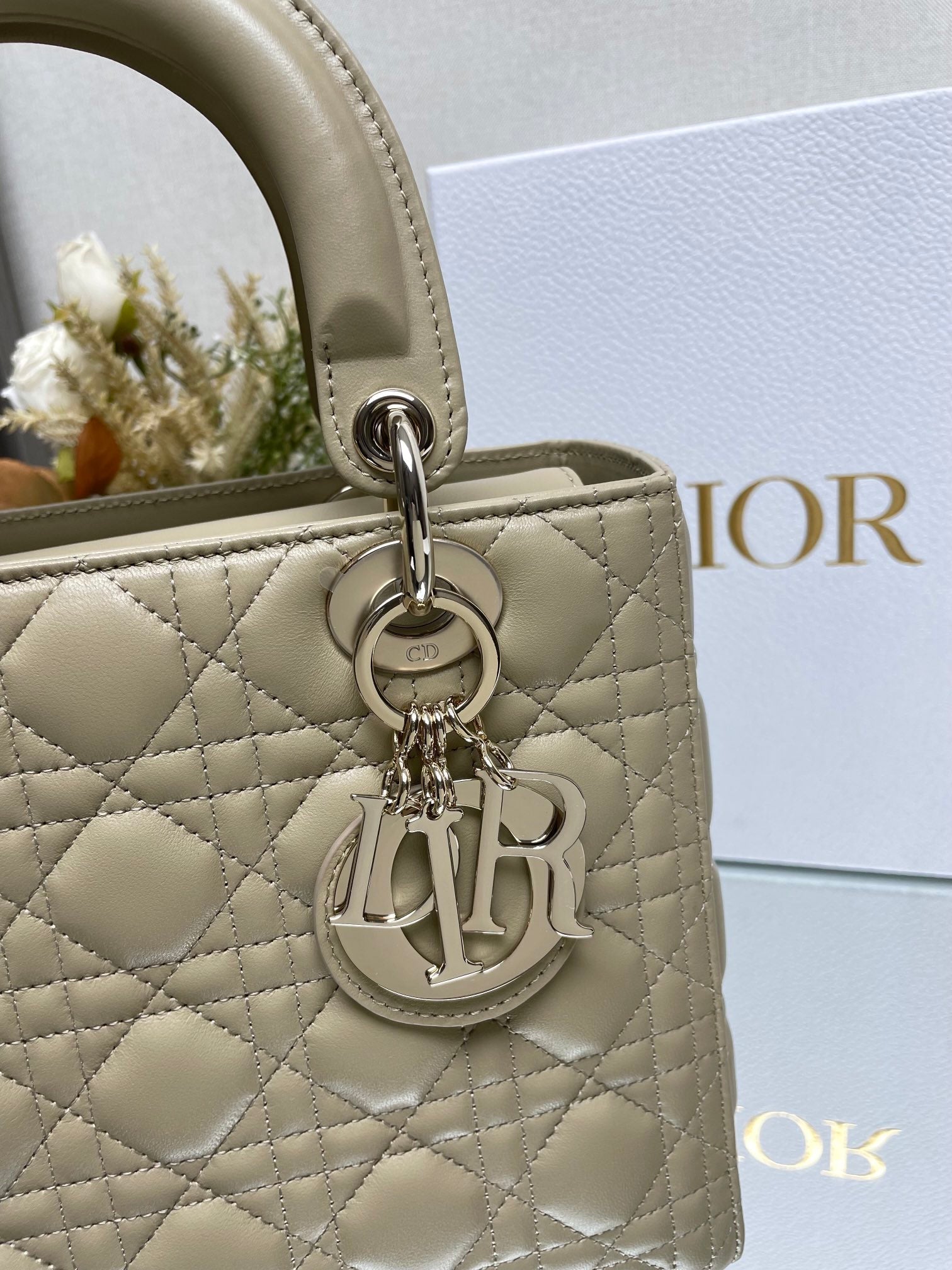 MEDIUM LADY D-JOY 26 WHITE LATTE CALFSKIN PEARL