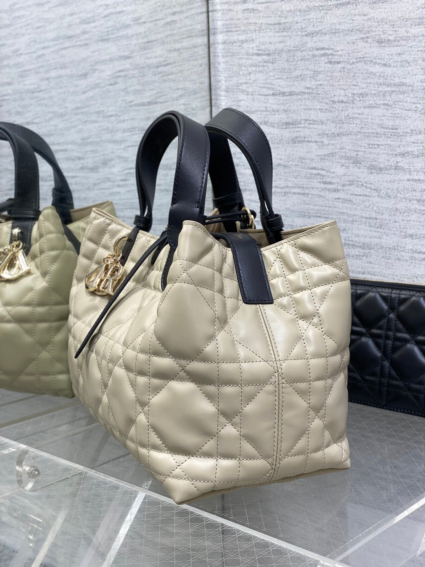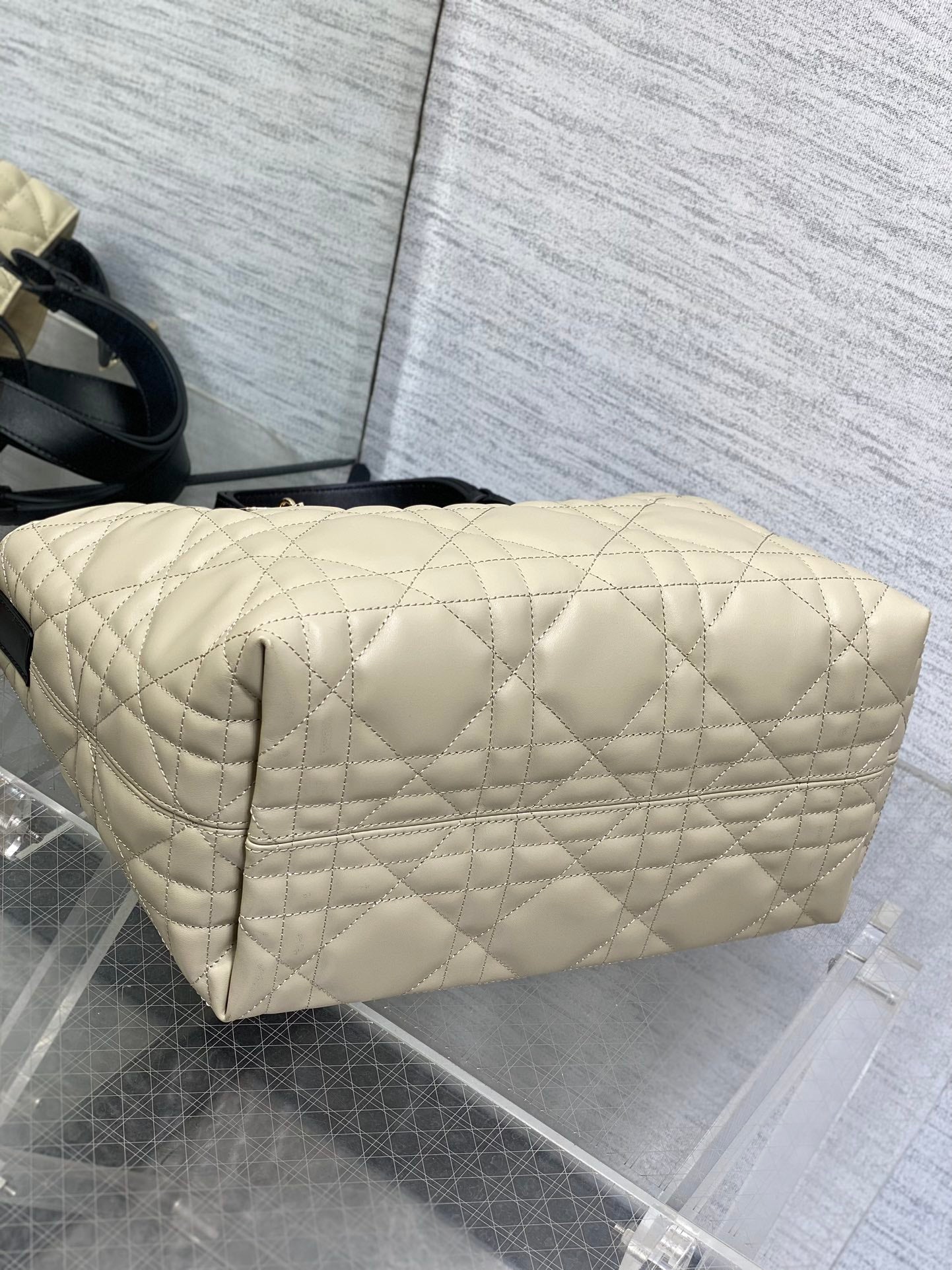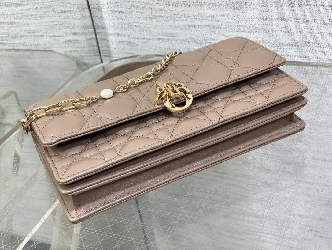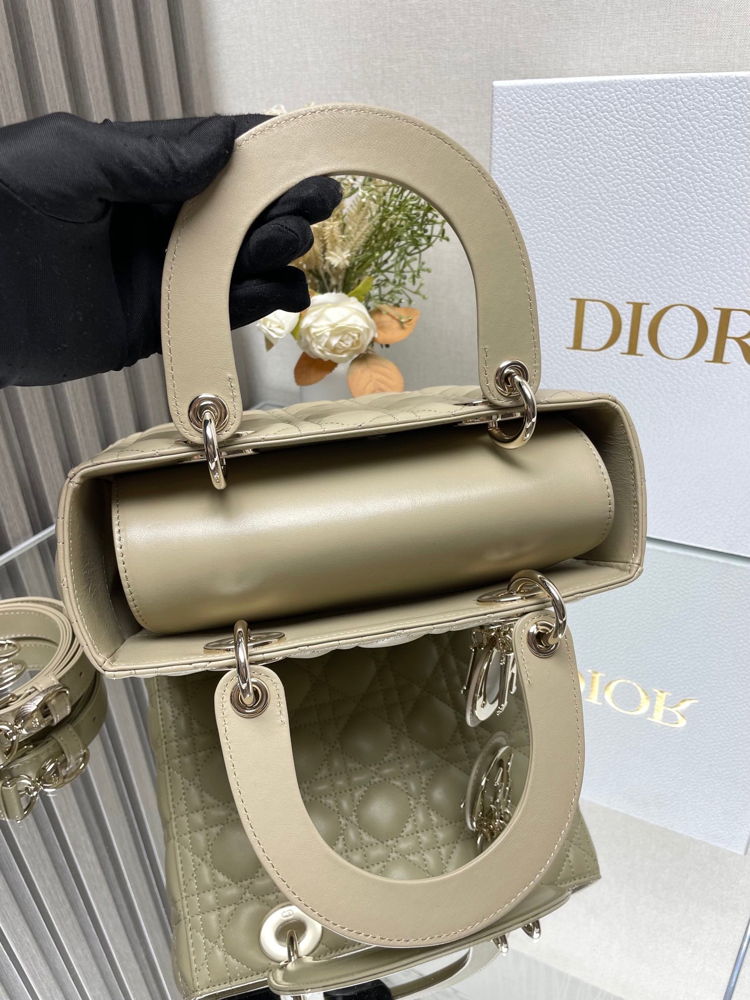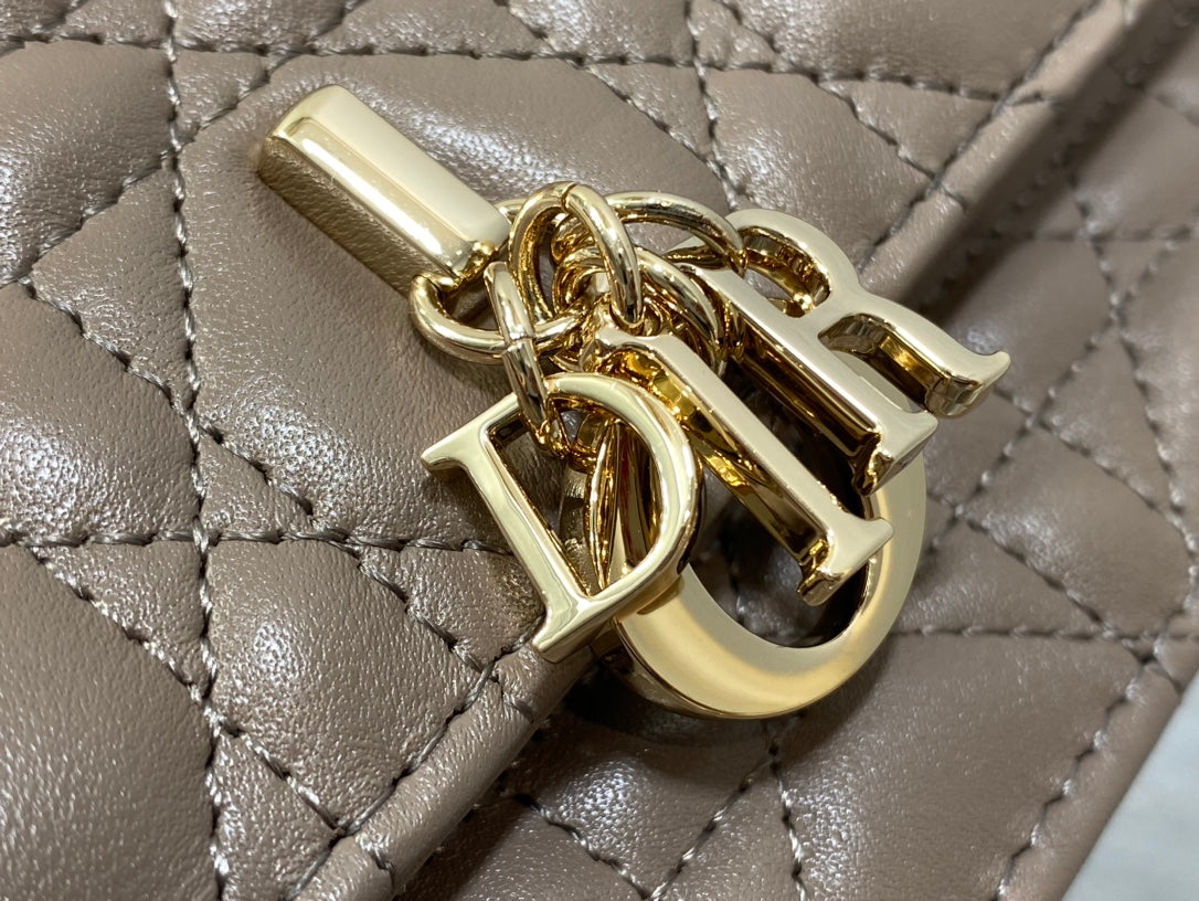 MEDIUM LADY D-JOY 26 WHITE LATTE CALFSKIN PEARL