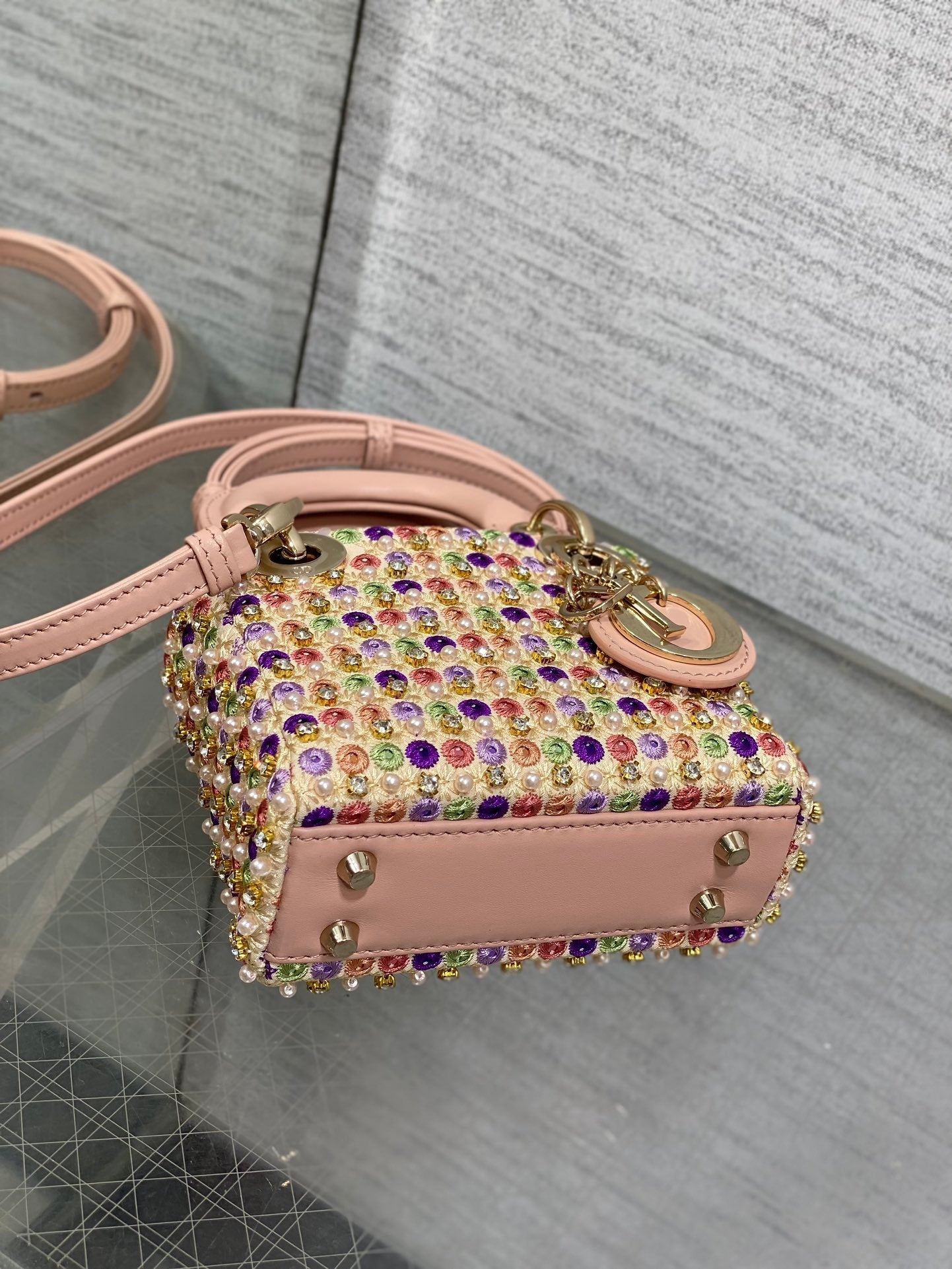 Lady Micro Bag 10cm Pink Lambskin Gold Fabric