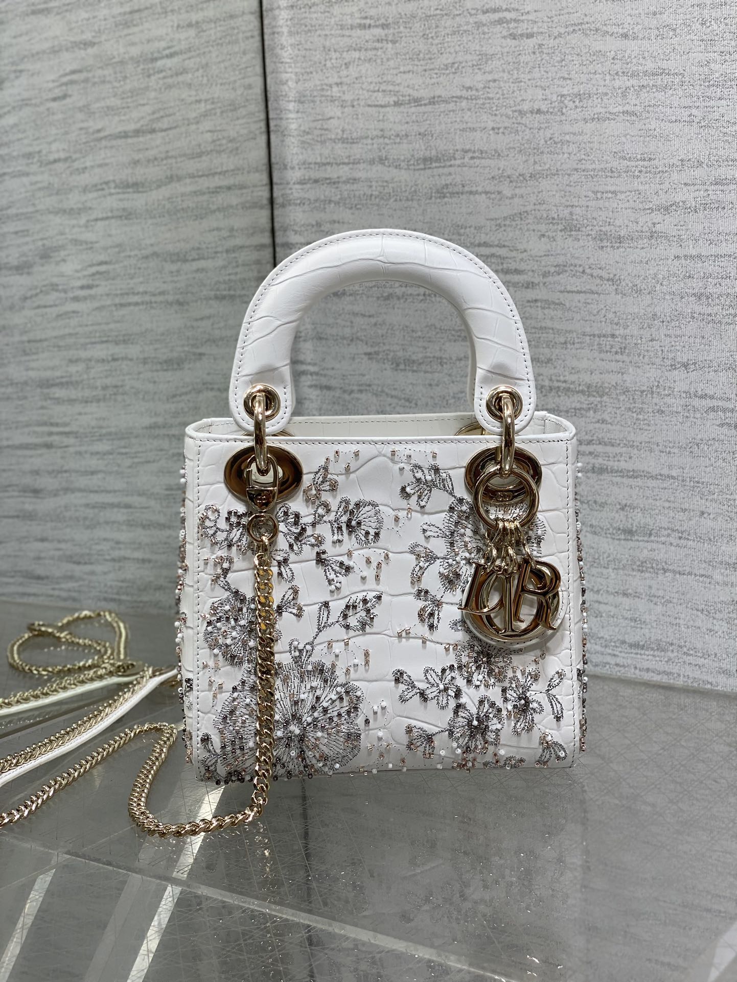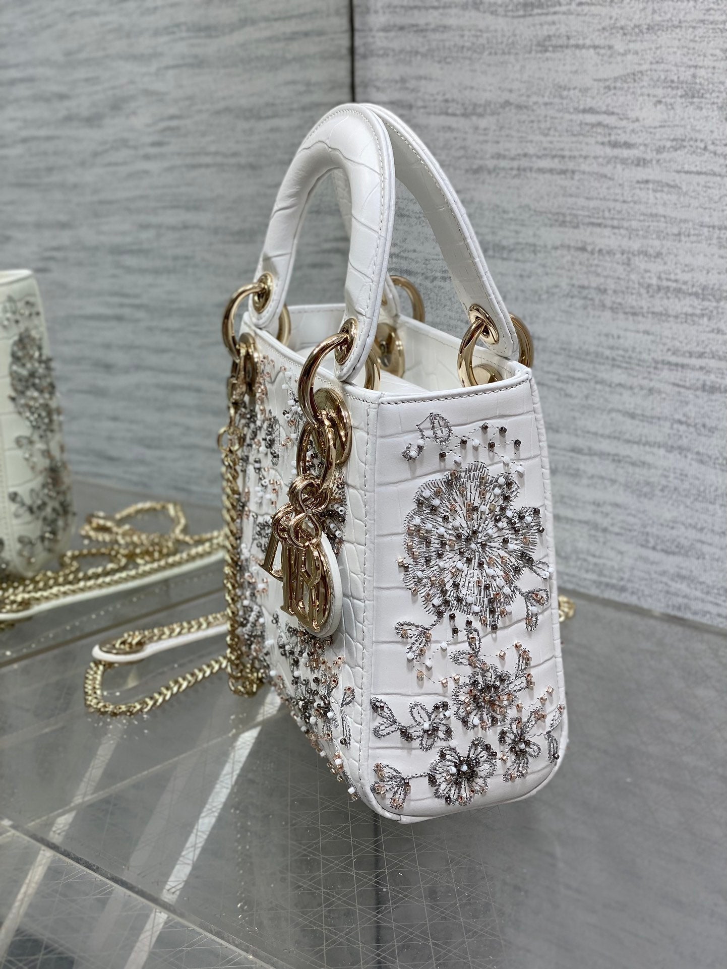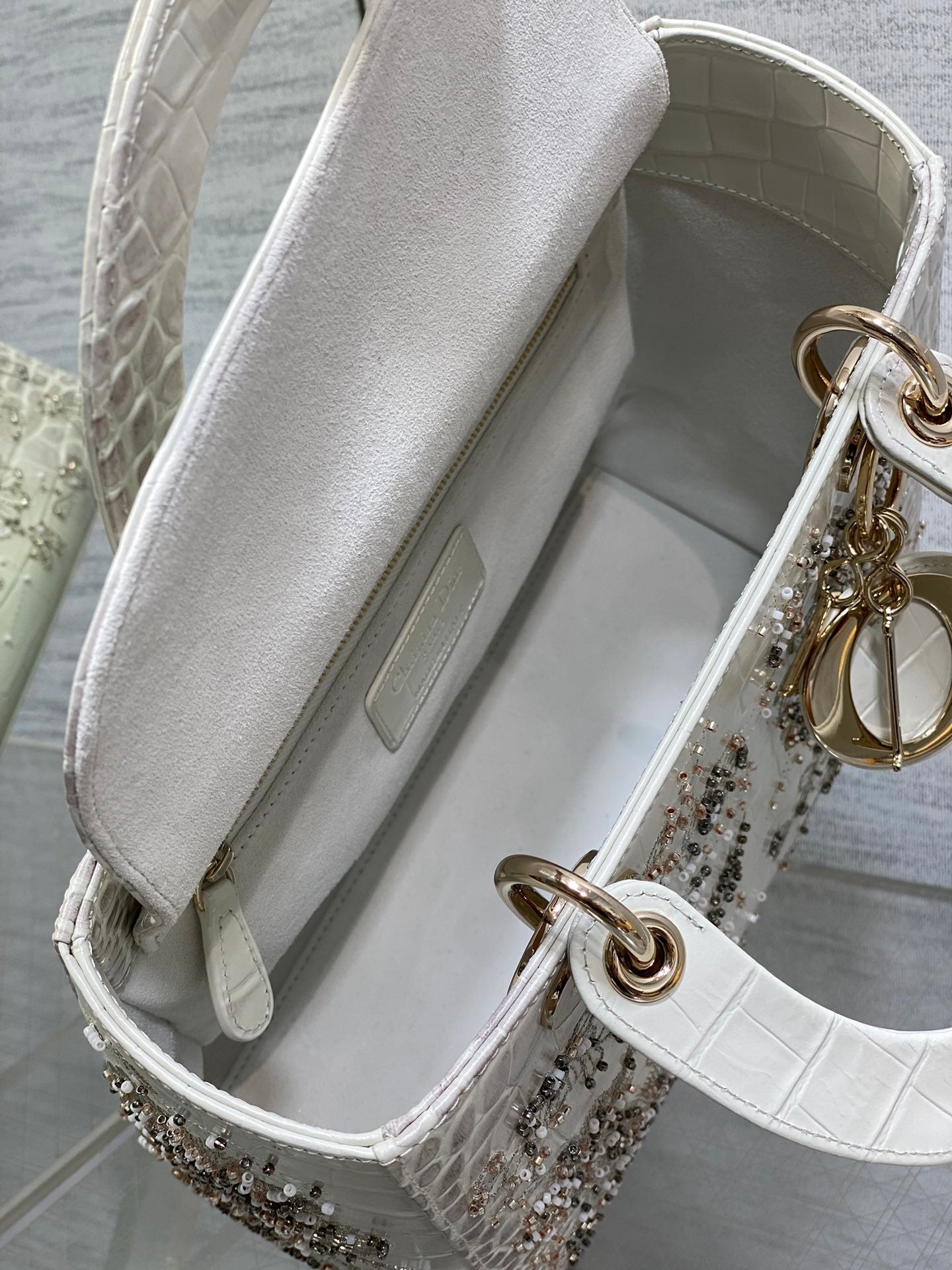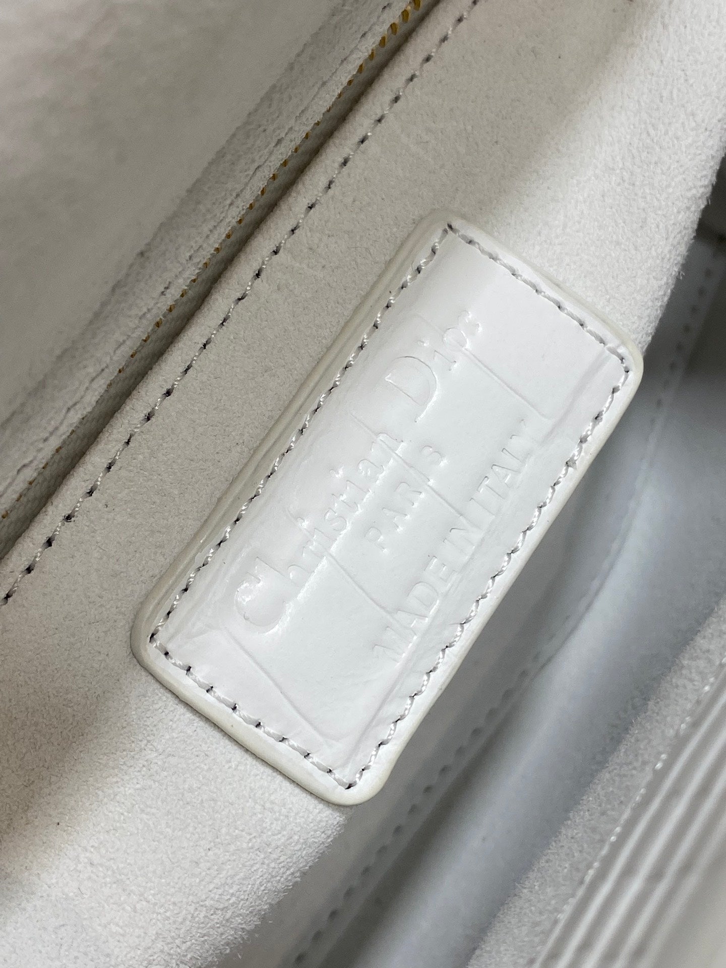 Lady Bag 17cm White Crocodile Leather Light Gold Hardware
