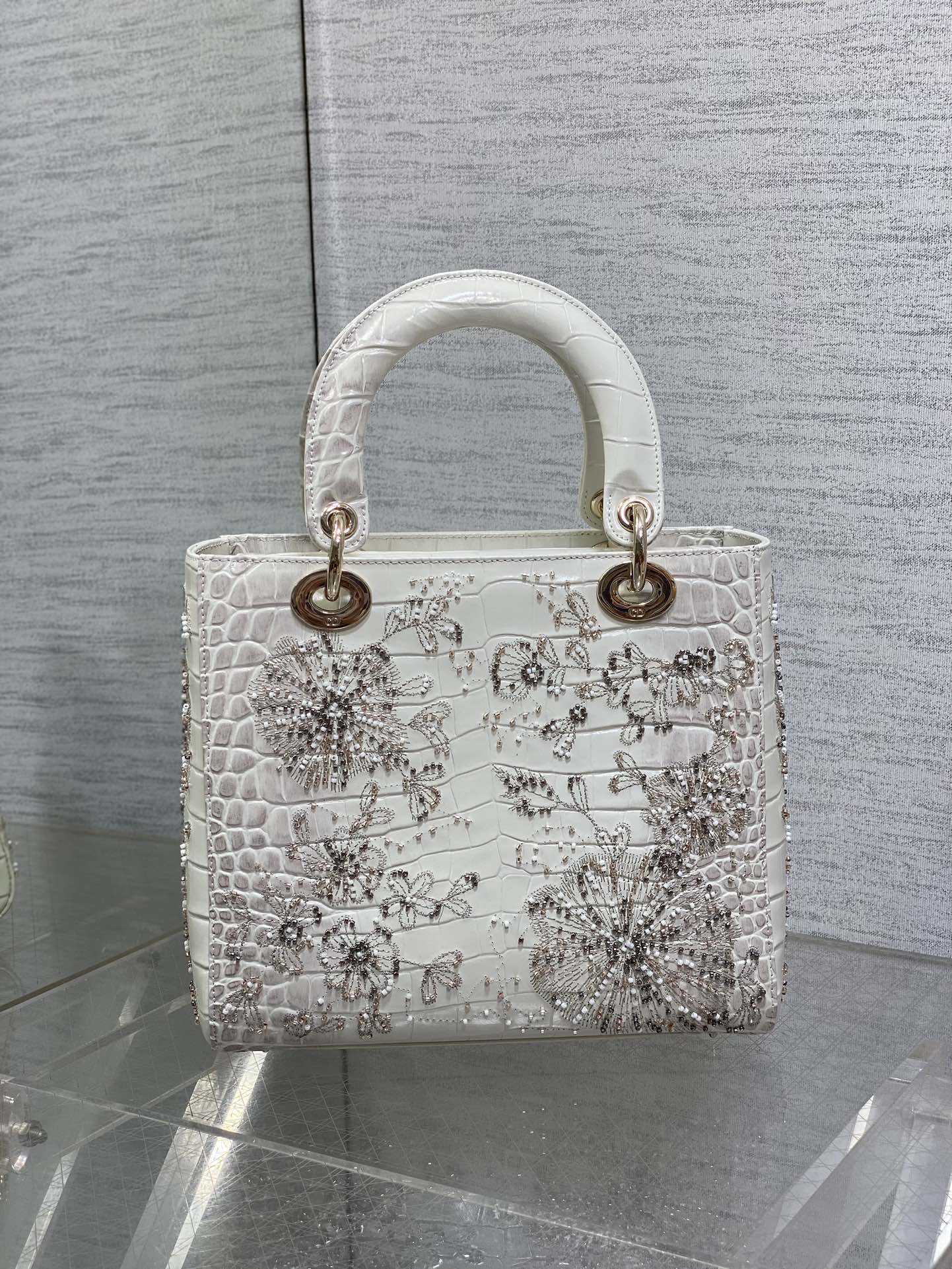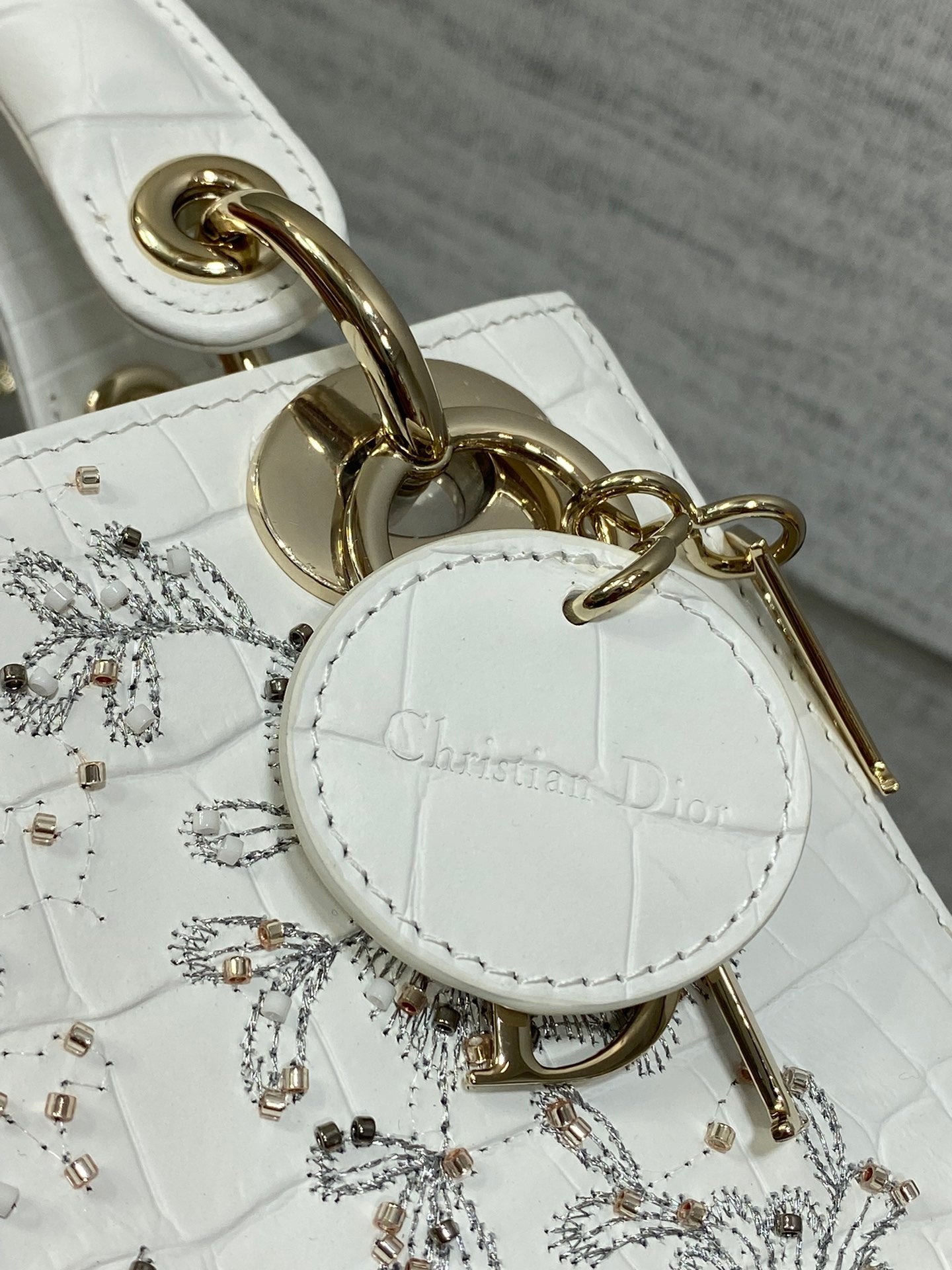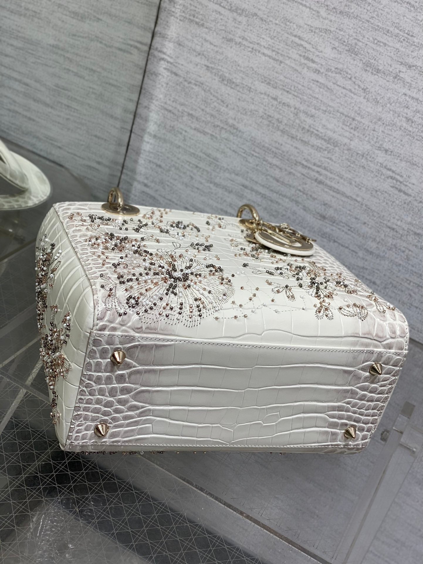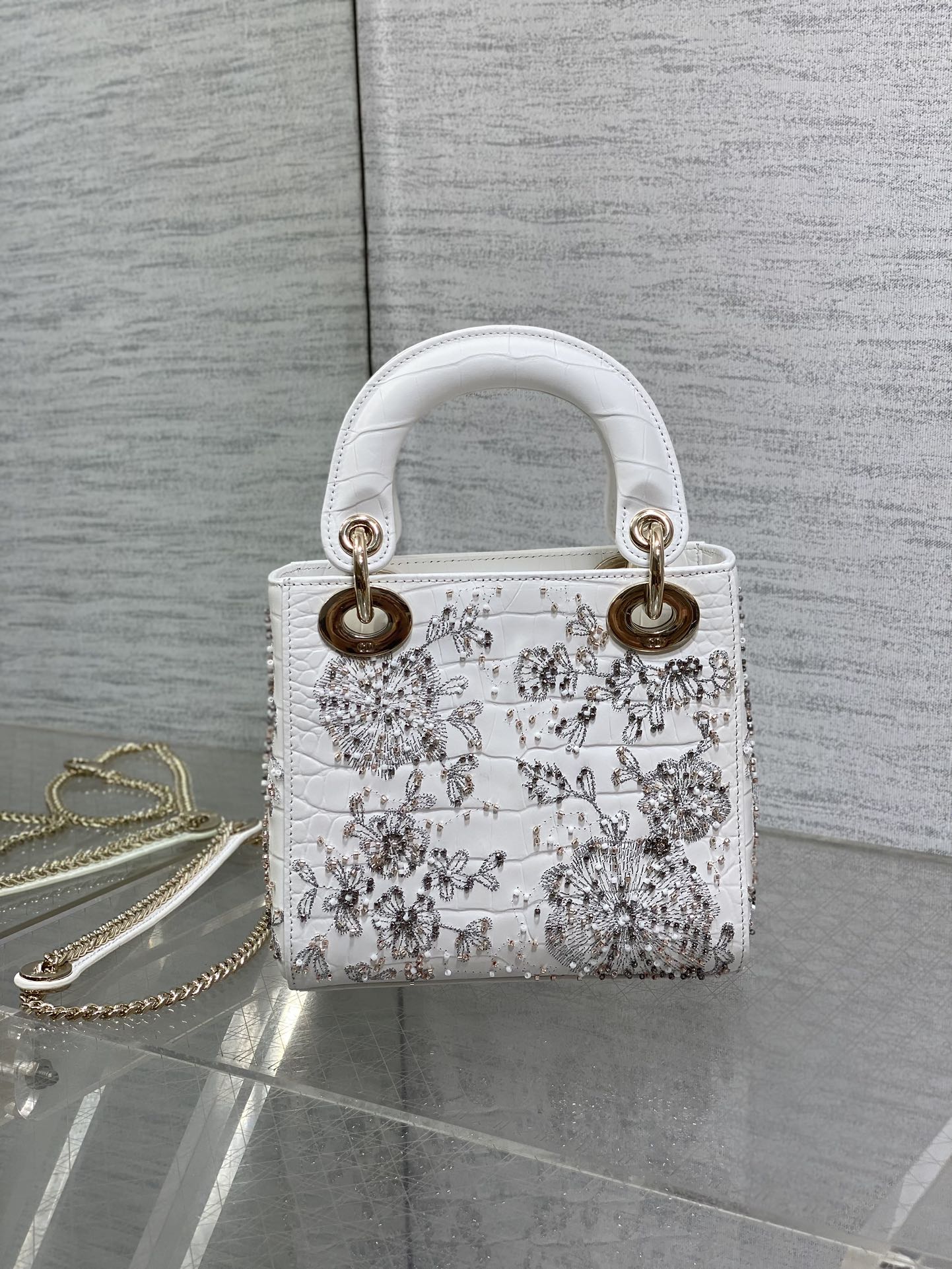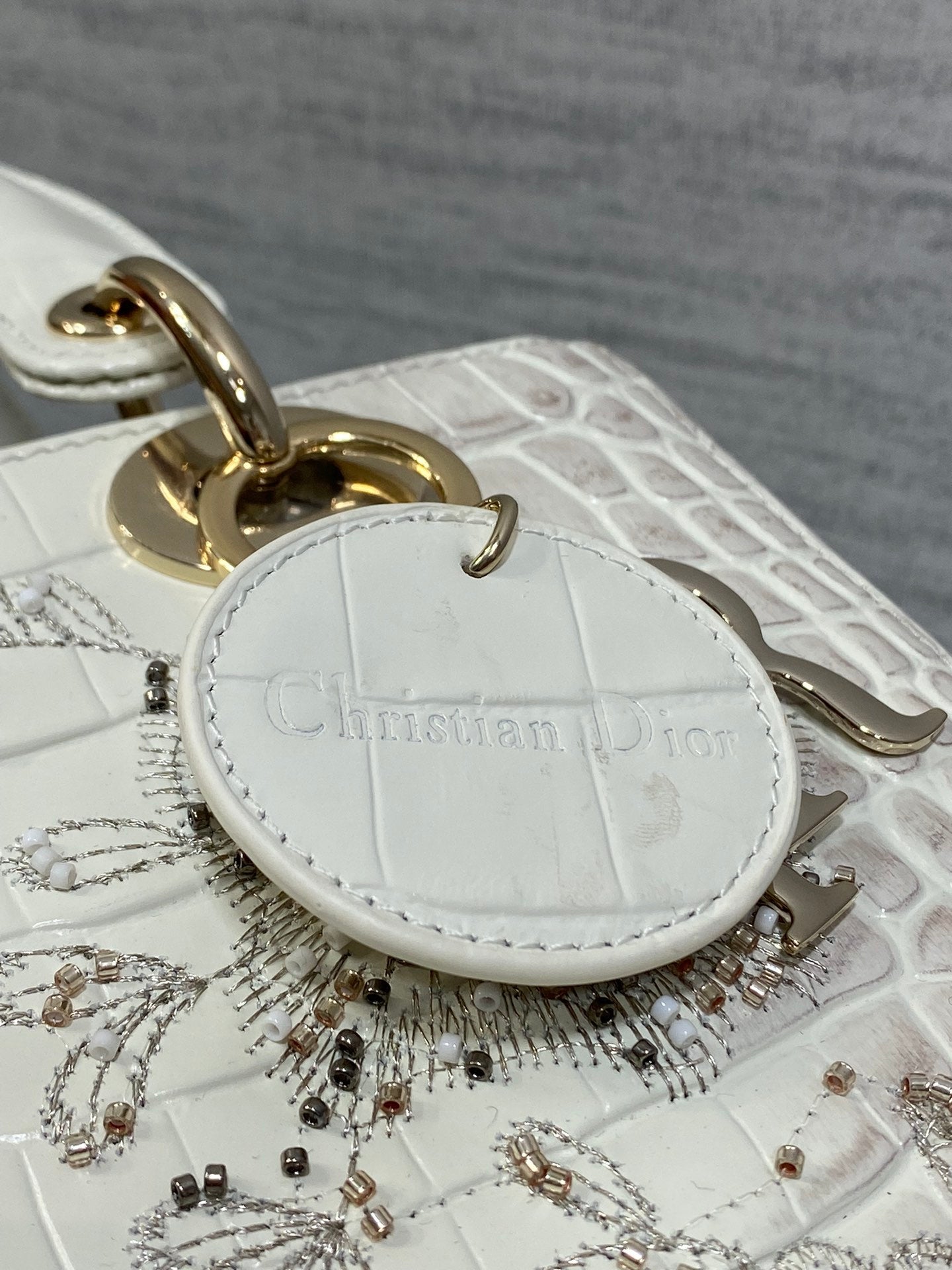 Lady Bag 17cm White Crocodile Leather Light Gold Hardware