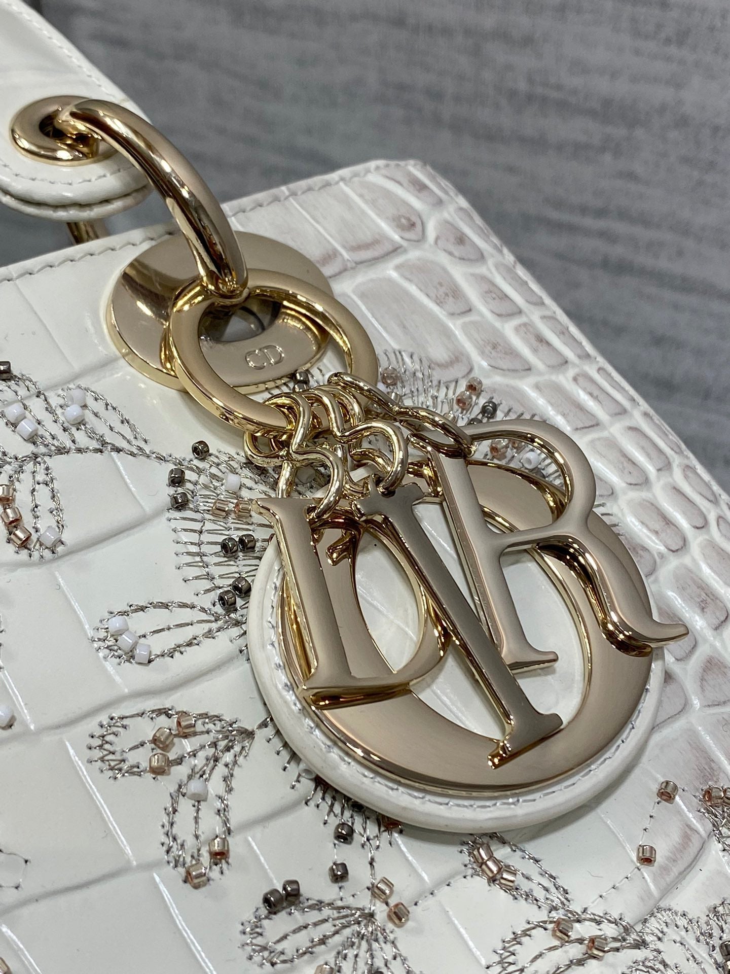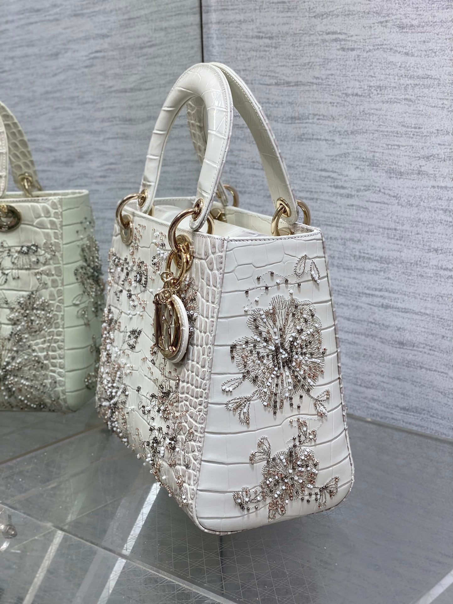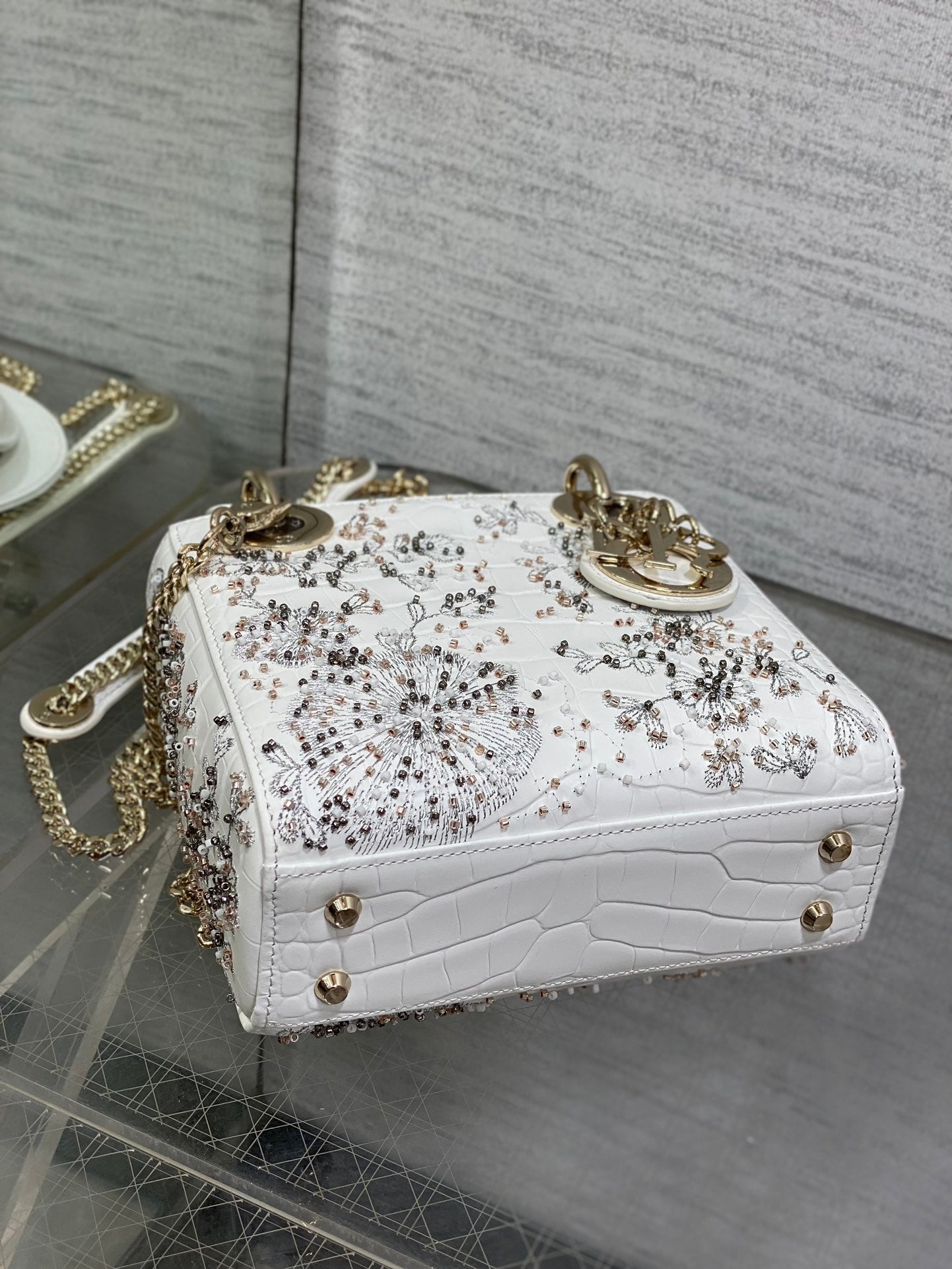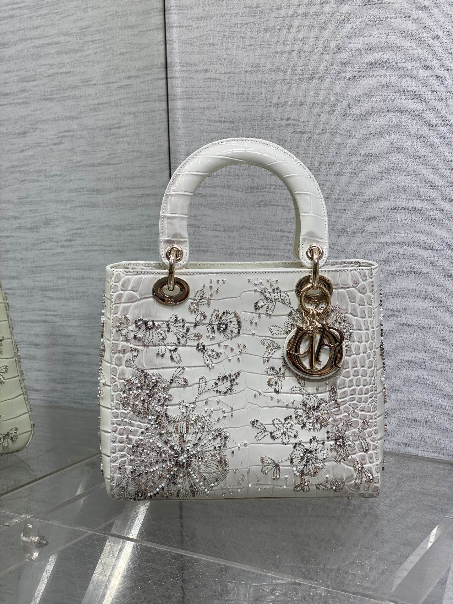 Lady Bag 17cm White Crocodile Leather Light Gold Hardware