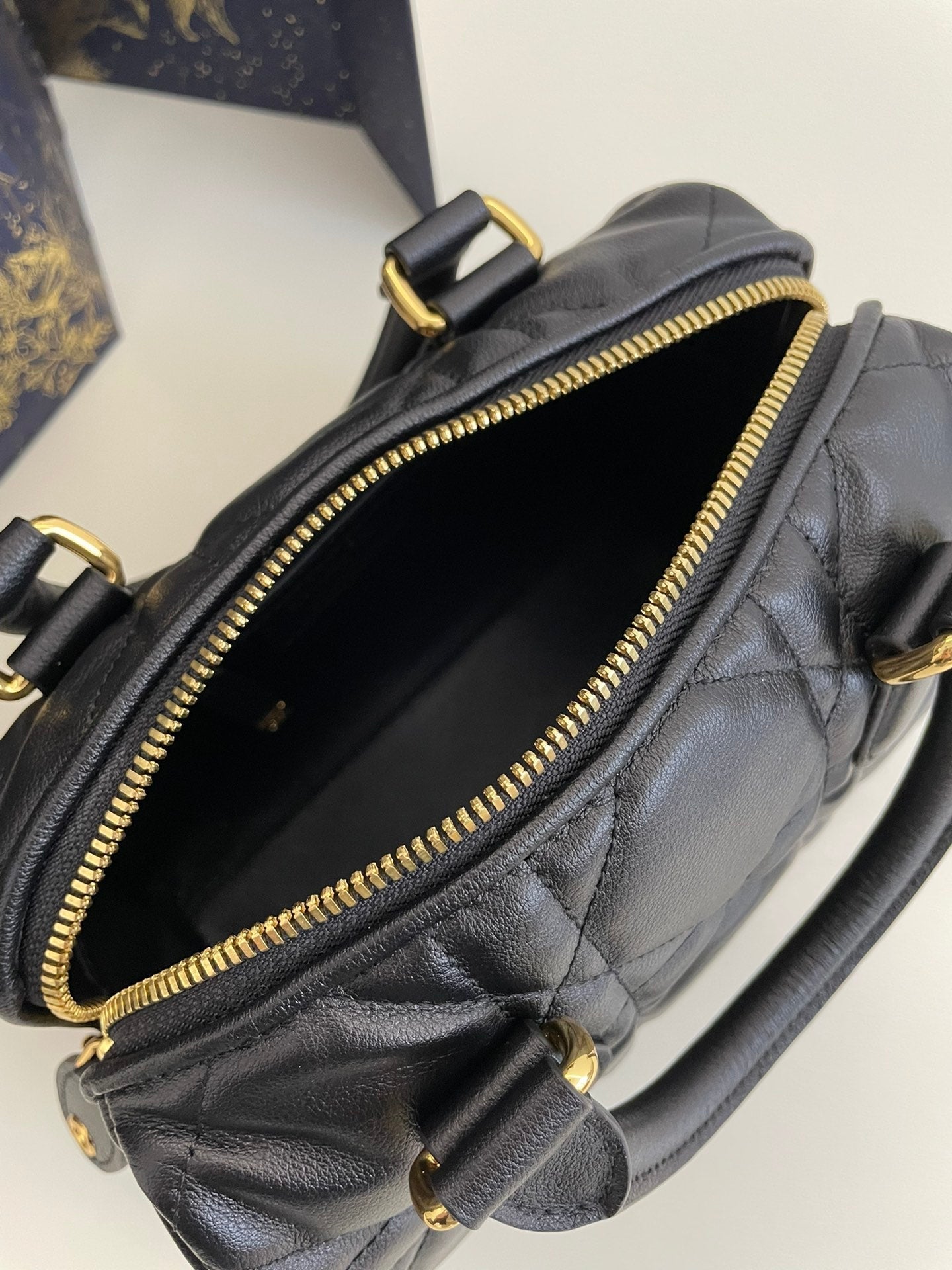 MY CD 24 TOP HANDLE BAG BLACK PATENT LAMBSKIN