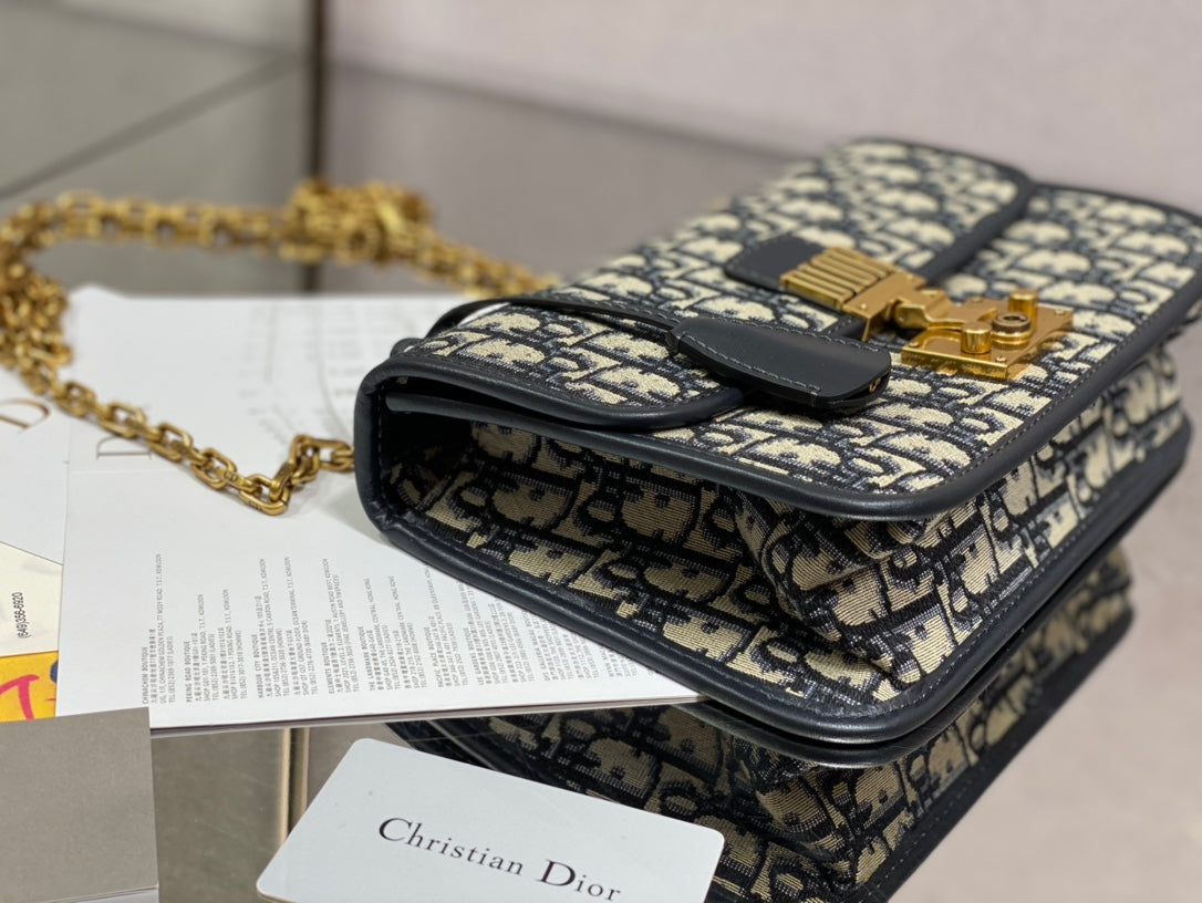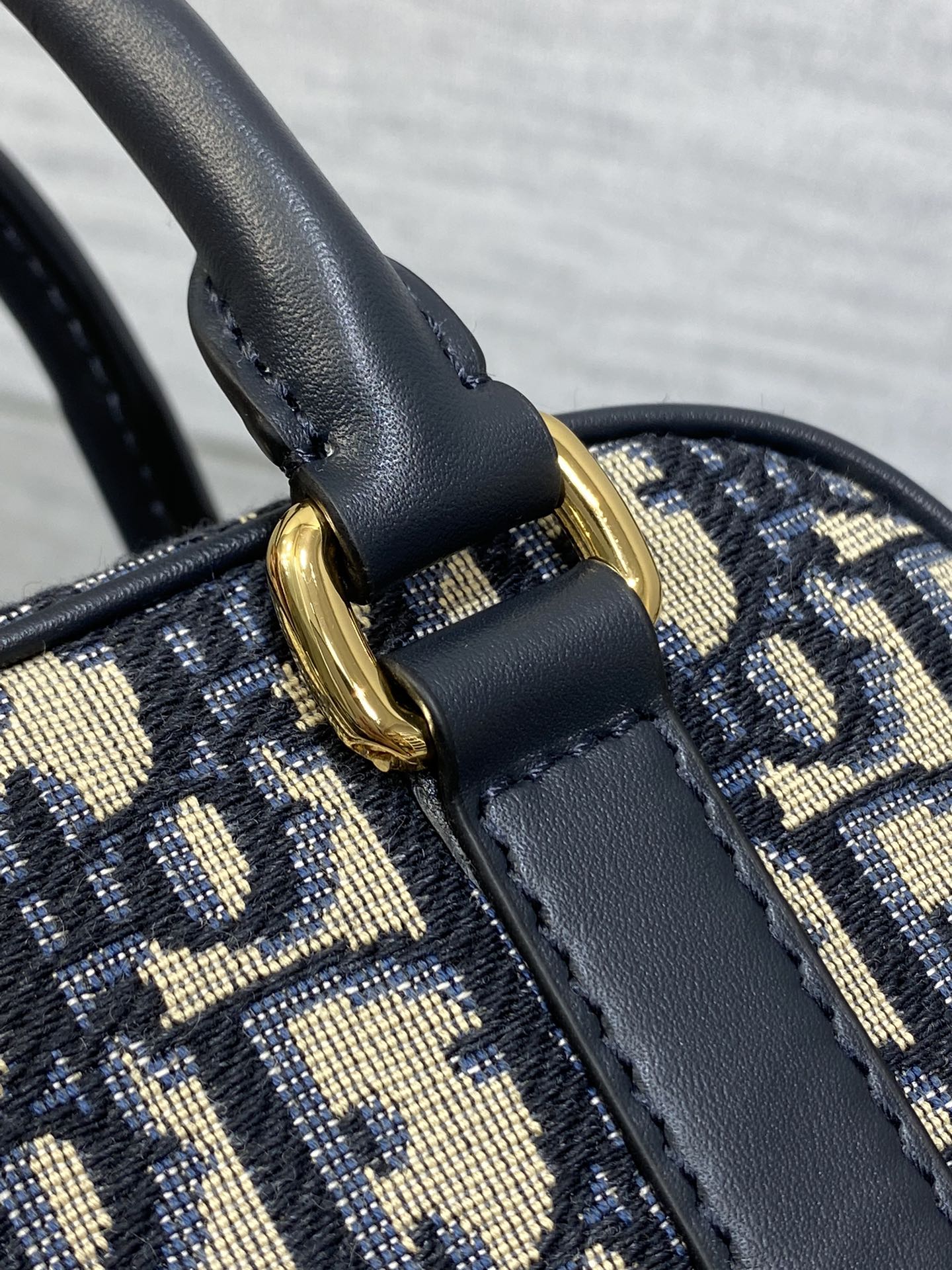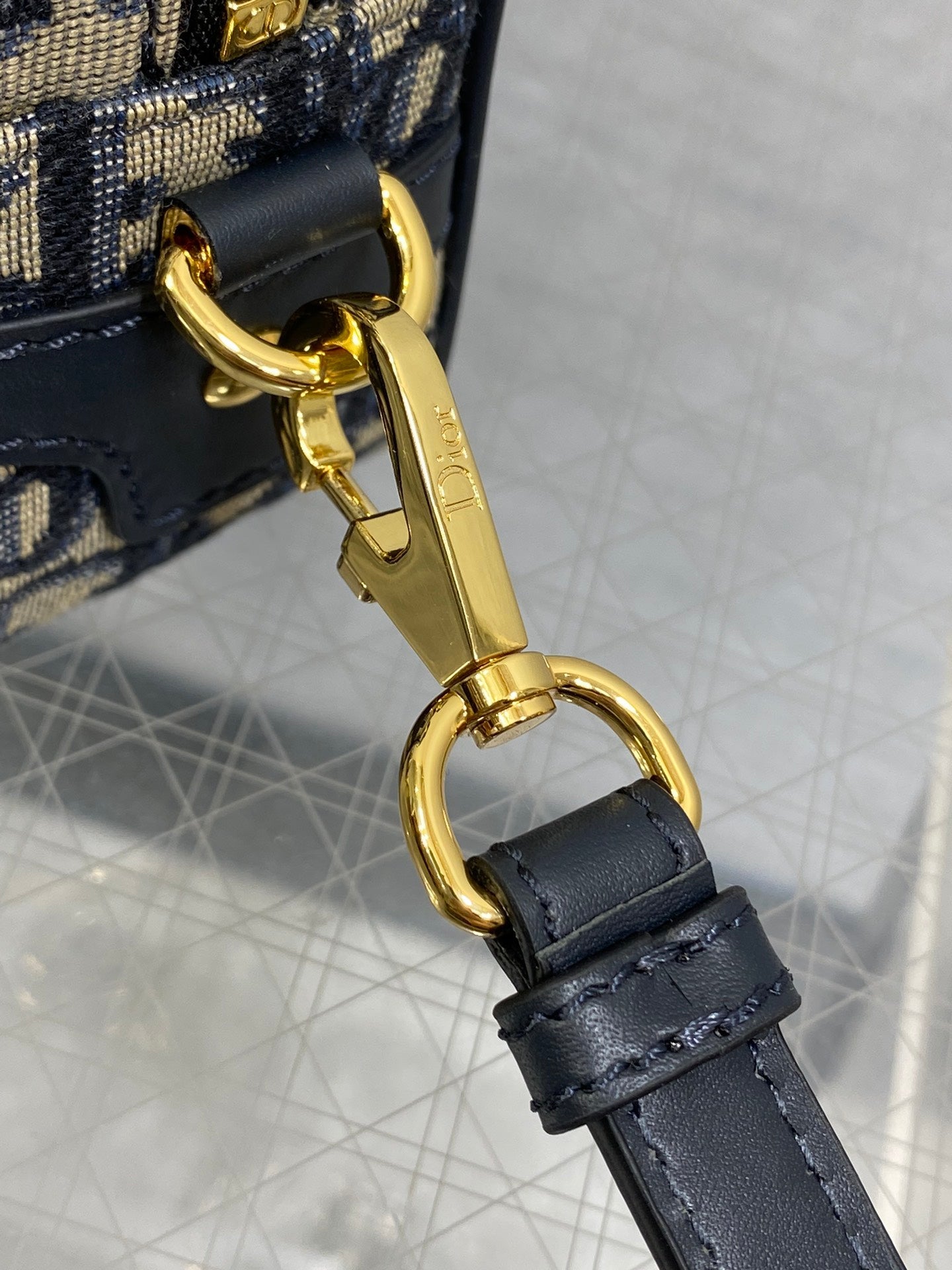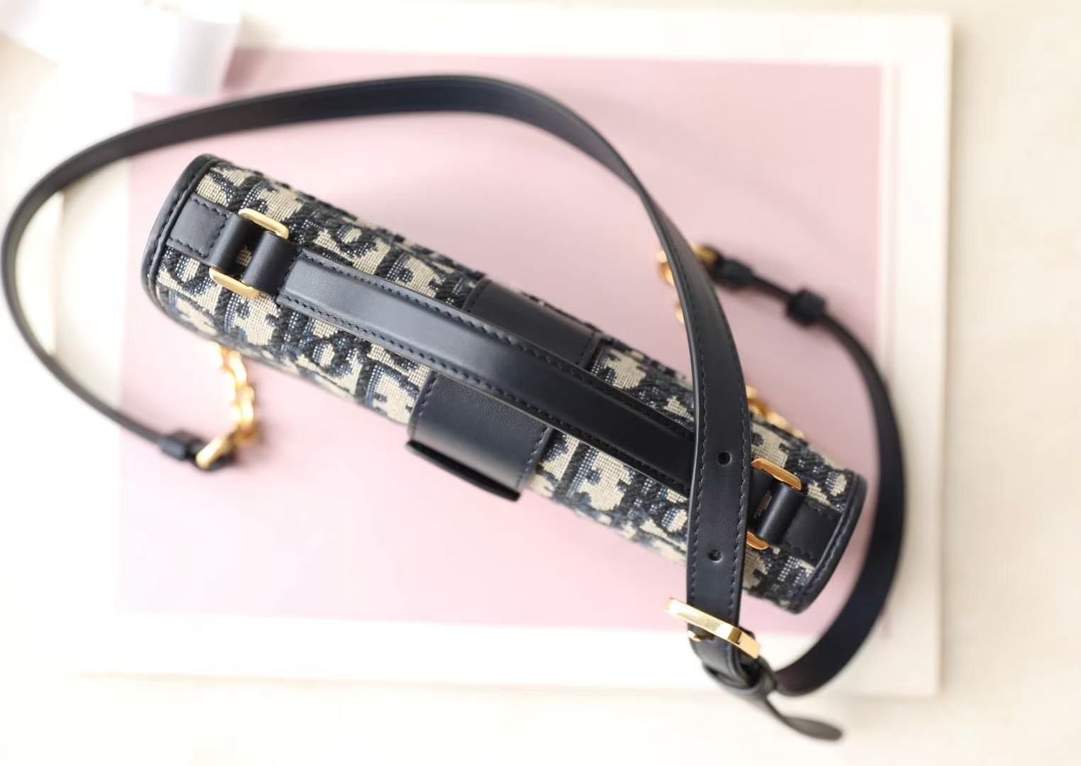 Dior 2025 Bag 19cm Navy Blue mix Beige Oblique Fabric mix Leather 272830