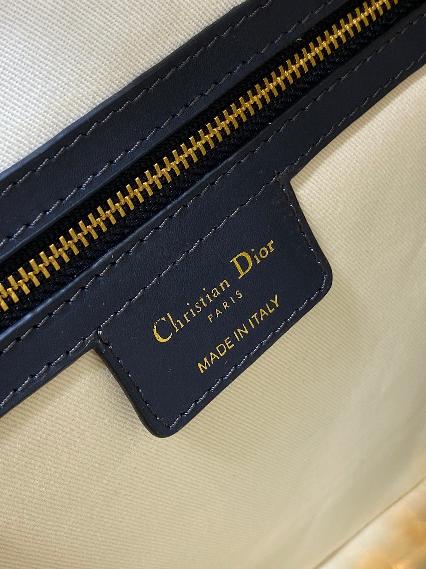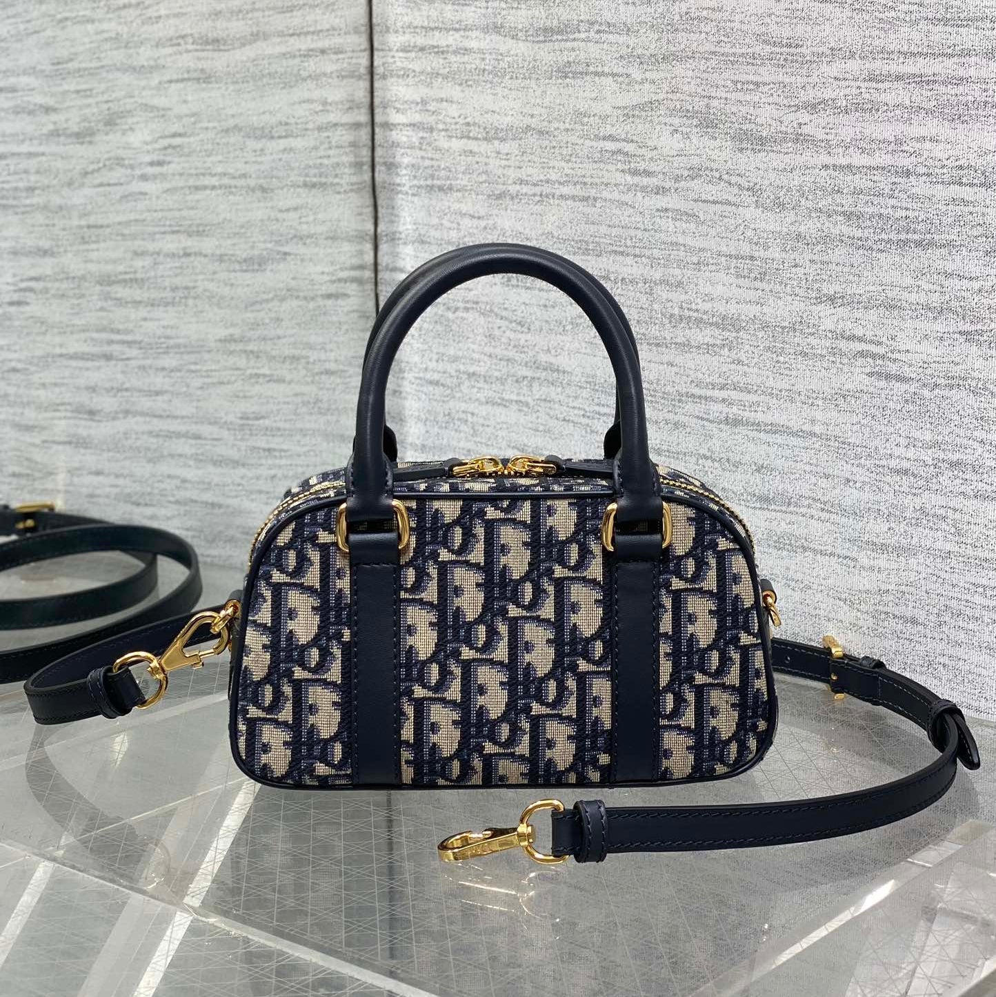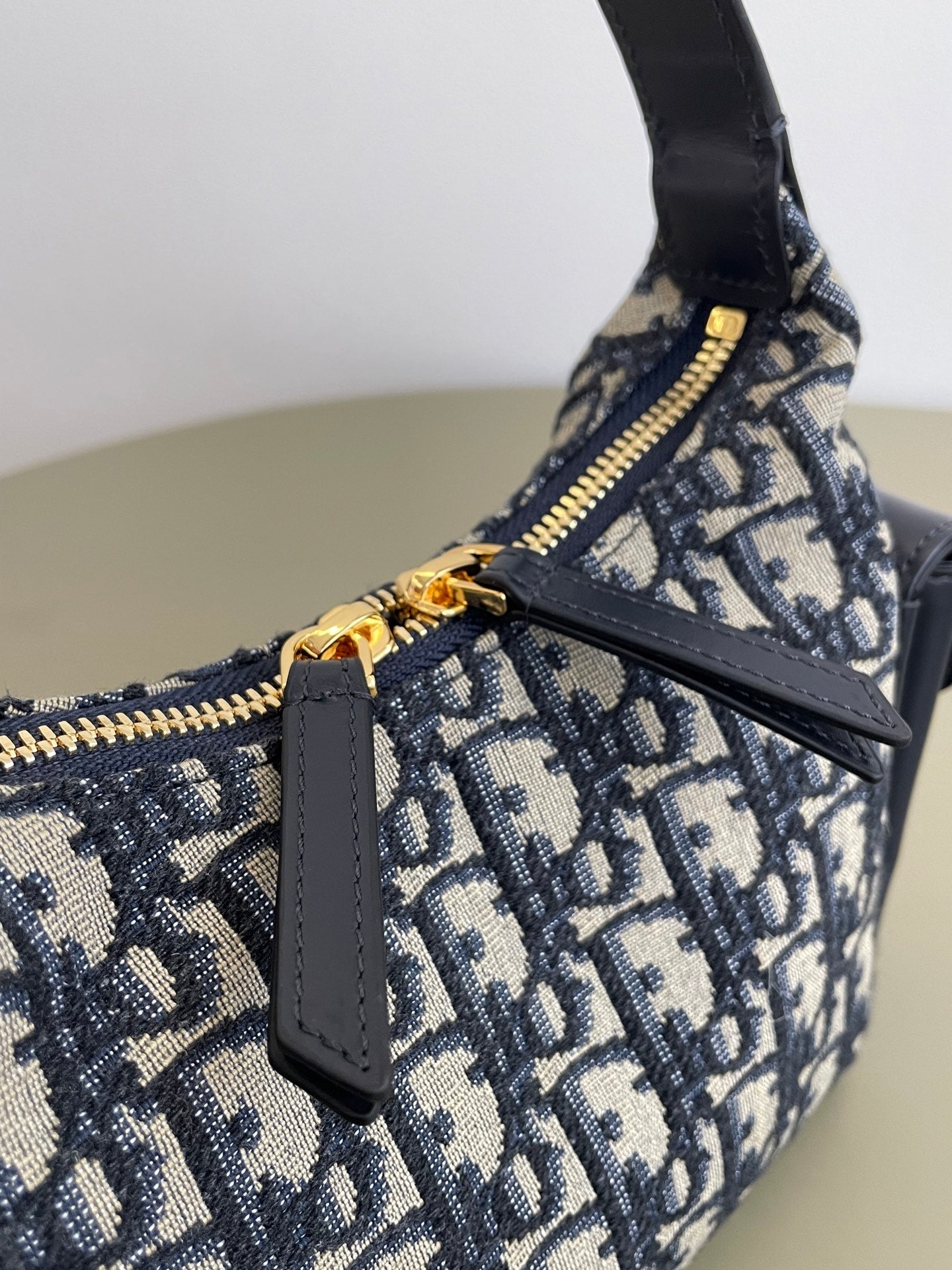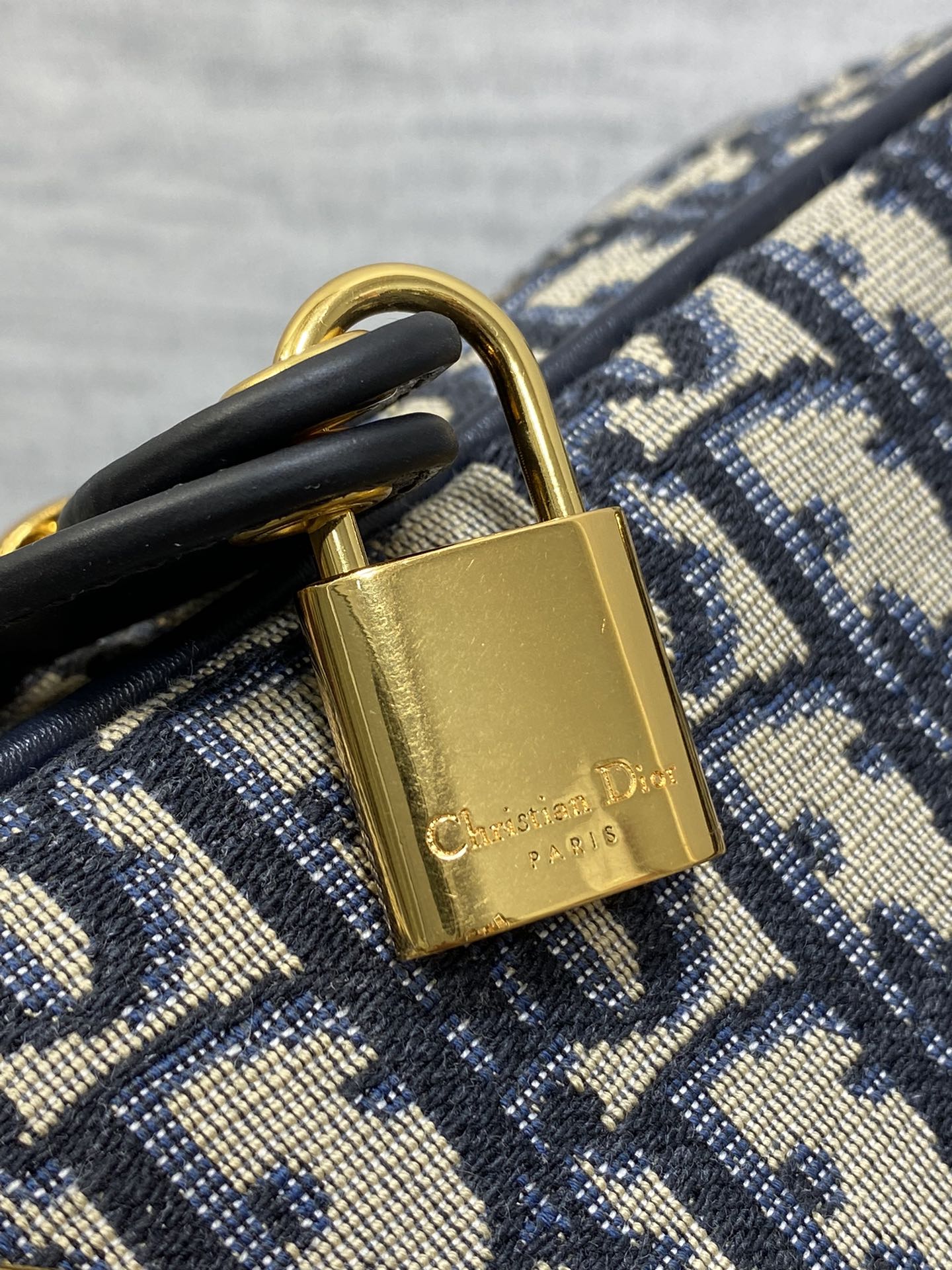 Dior 2025 Bag 19cm Navy Blue mix Beige Oblique Fabric mix Leather 272830