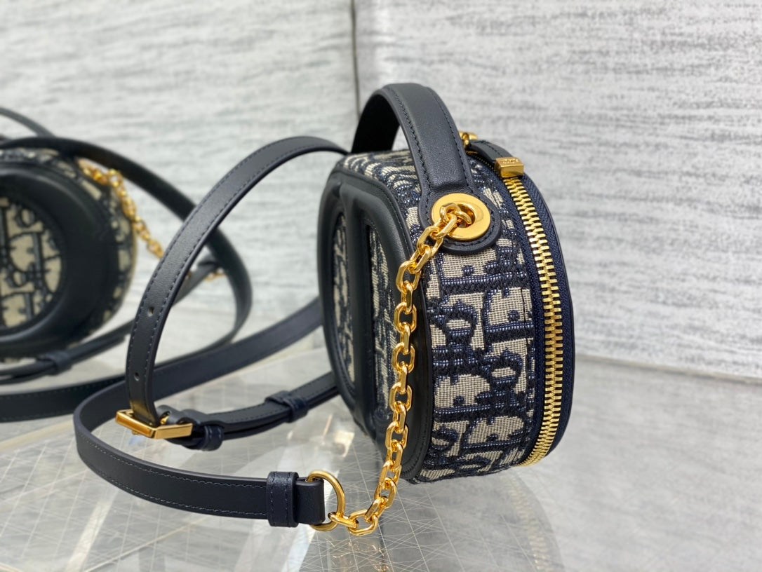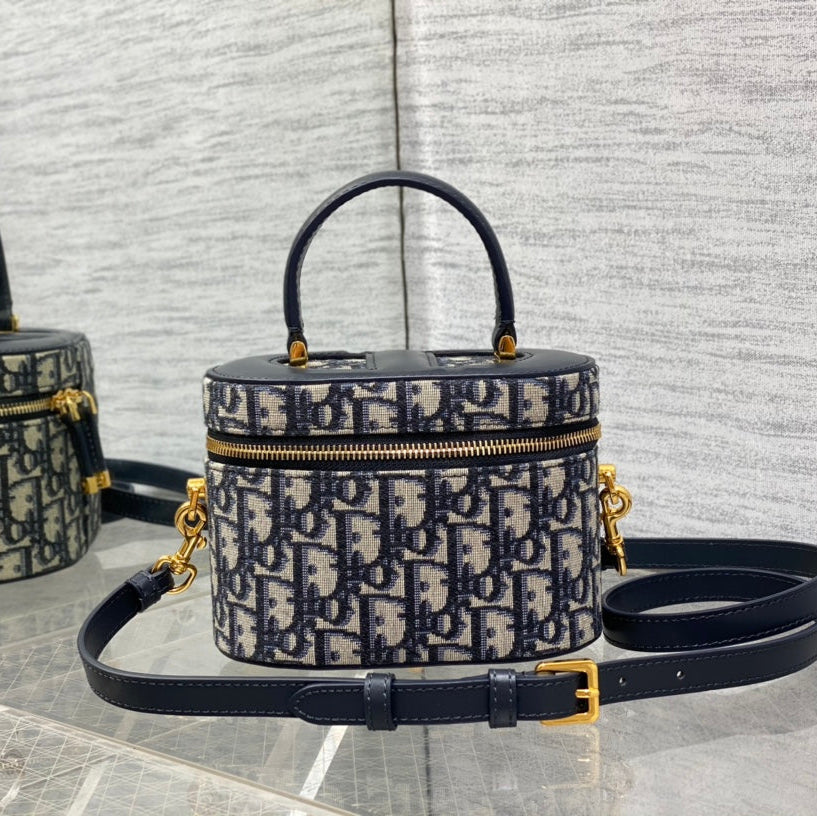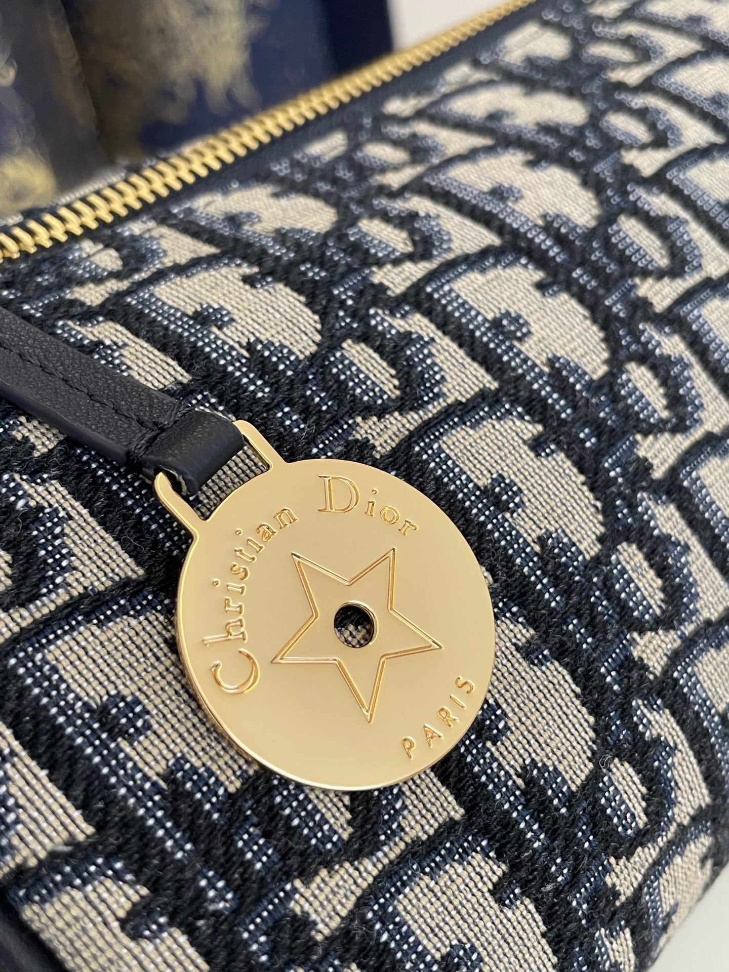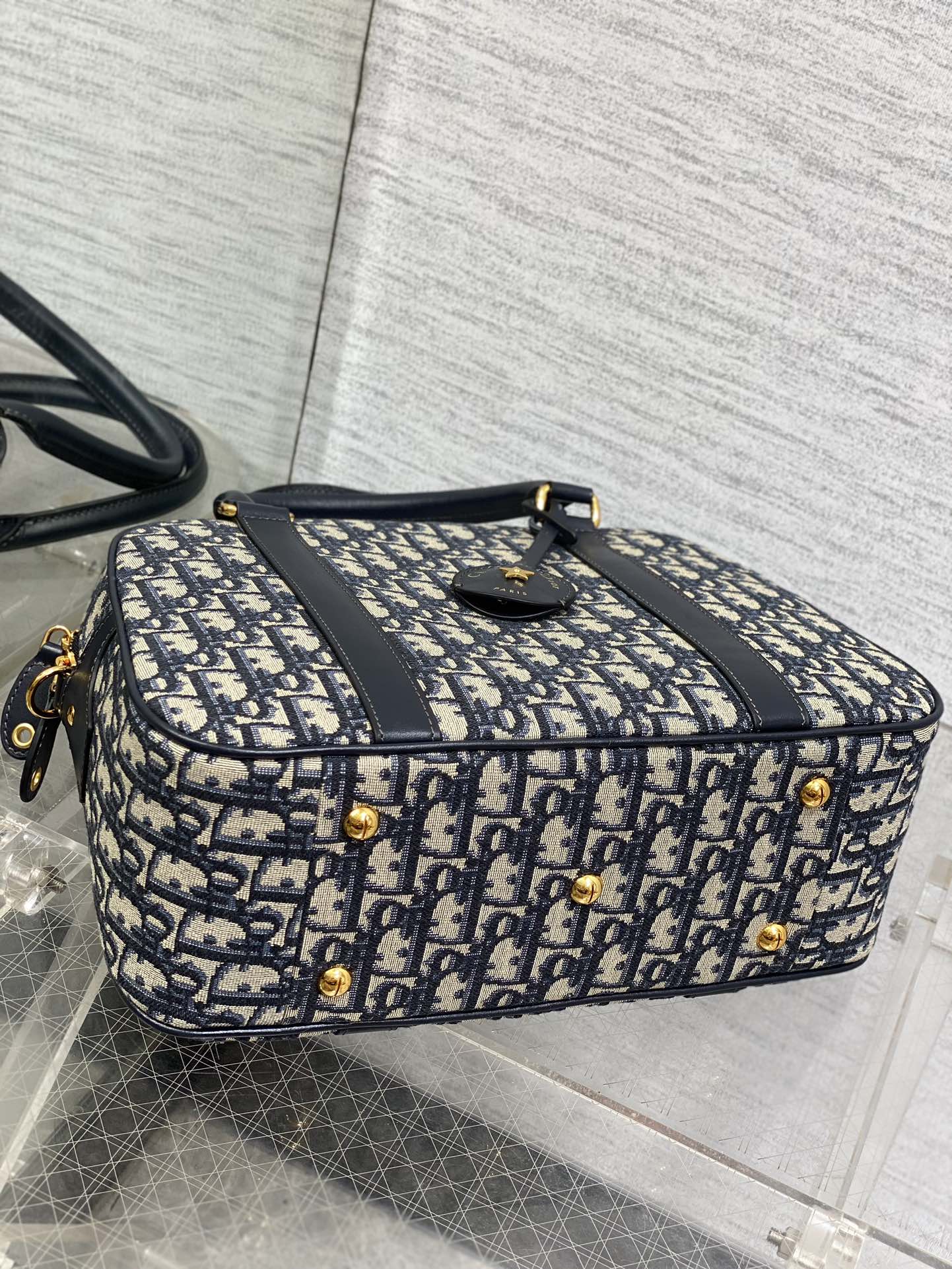 Dior 2025 Bag 19cm Navy Blue mix Beige Oblique Fabric mix Leather 272830
