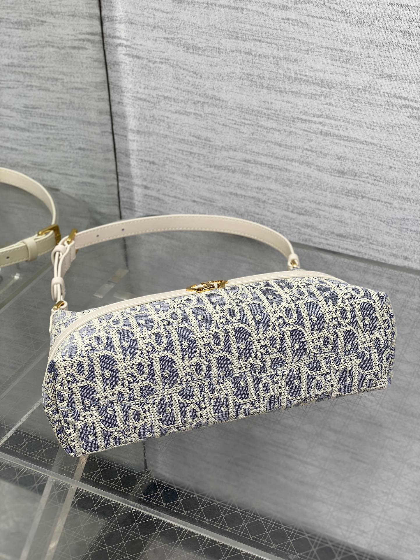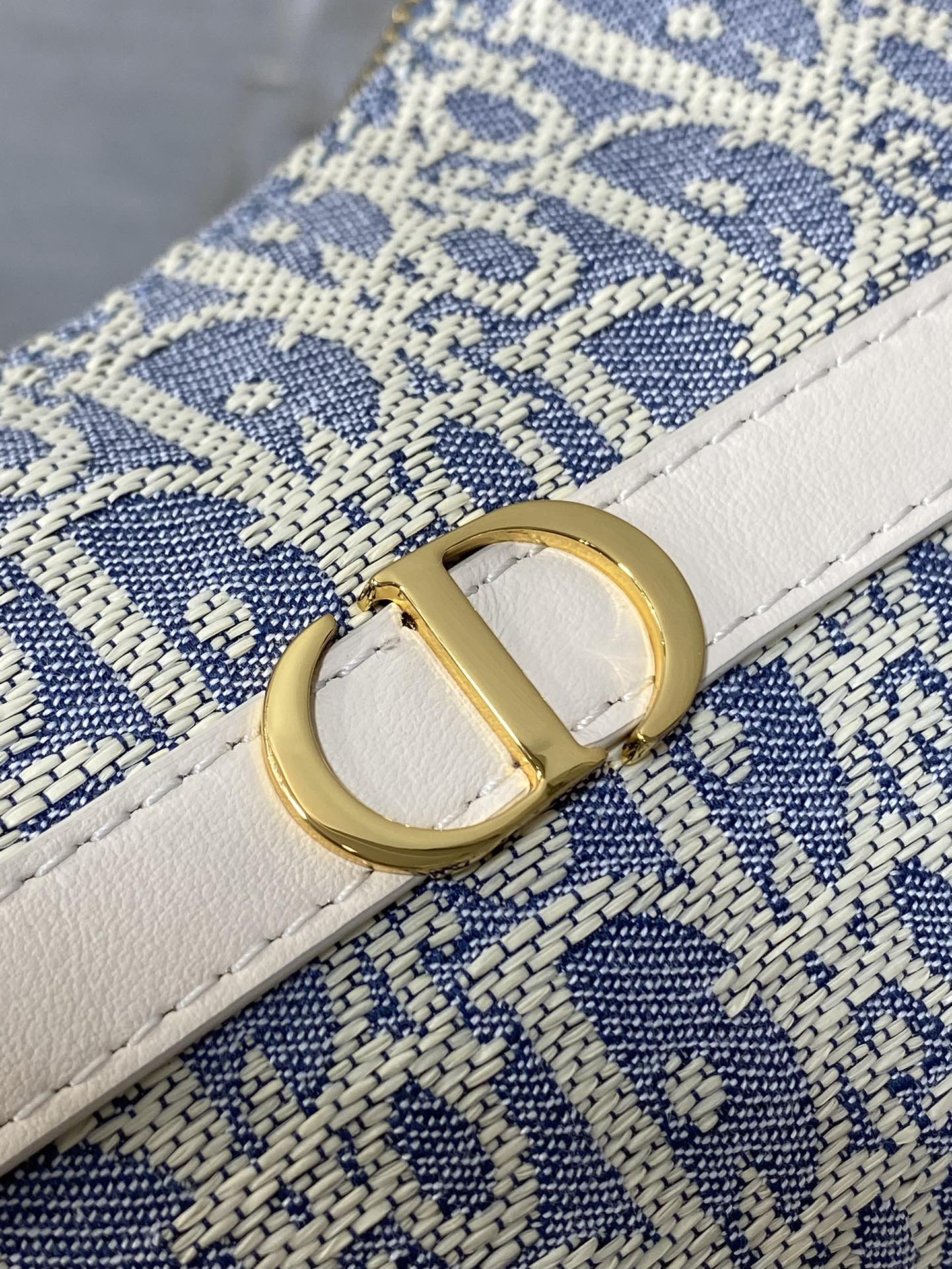 Dior 2025 Bag 19cm Blue mix White Oblique Fabric mix Leather 272832