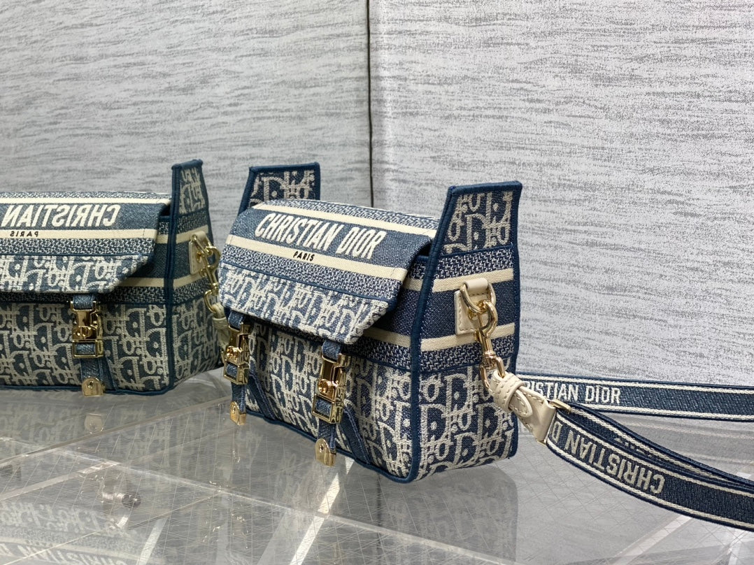 CD Small Diorcamp Bag 23 Blue Oblique Embroidery Denim