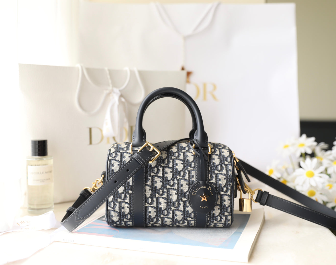 CD Blue Dior Oblique Jacquard Bag Canvas Cowhide