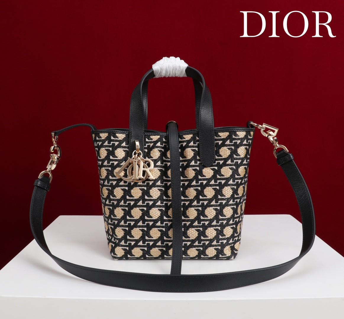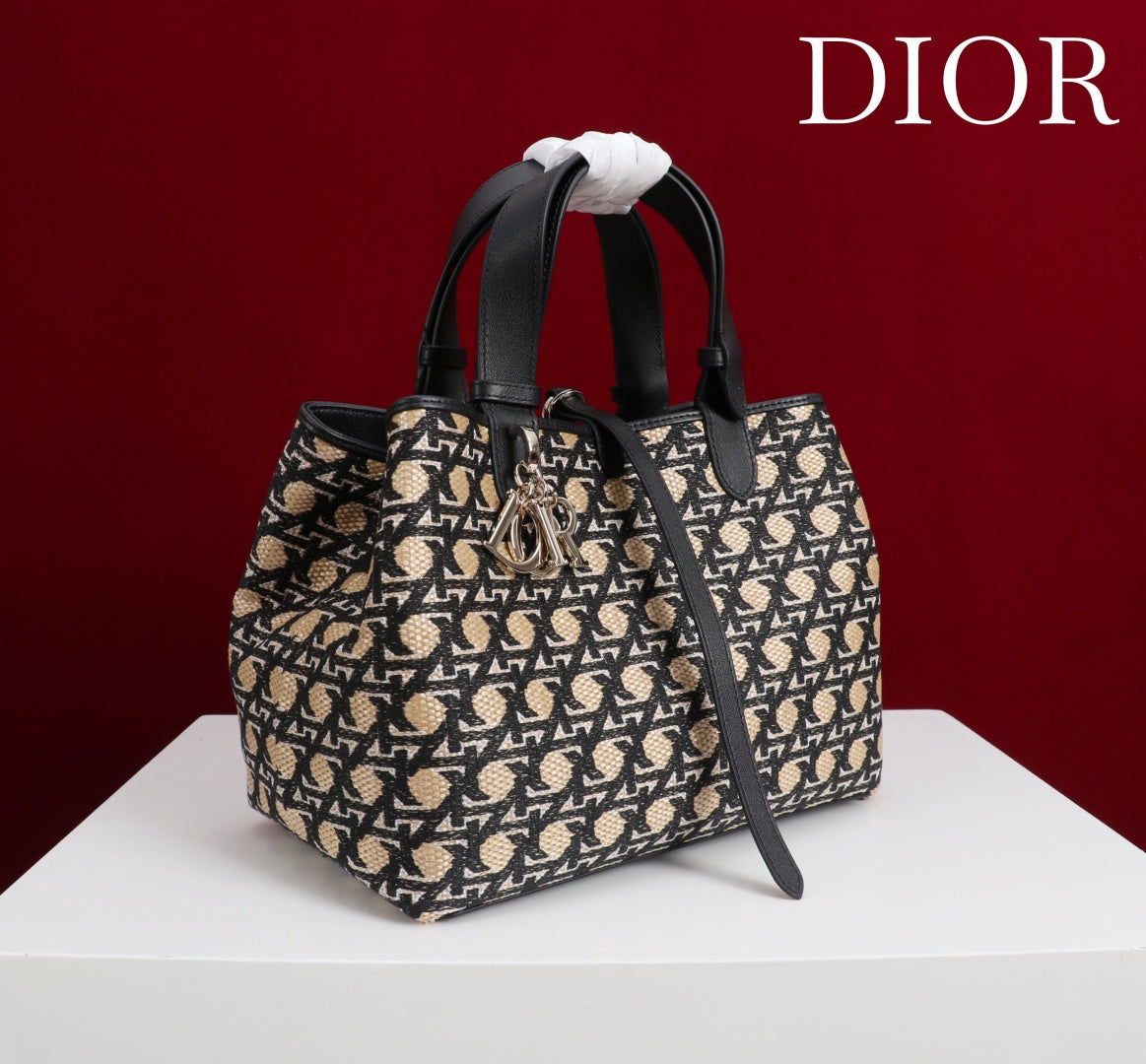 CD Toujours Vertical Medium Bag 24 Diamond Black Beige Leather