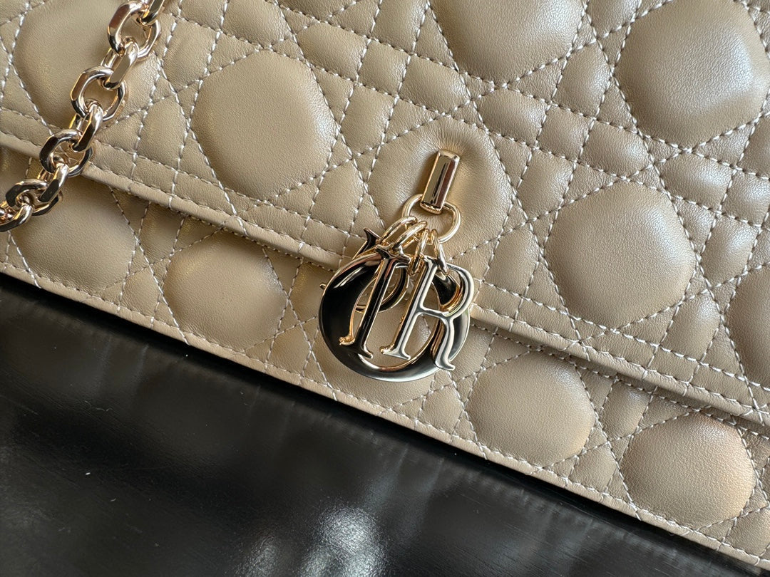 MEDIUM LADY D-JOY 26 BEIGE LAMBSKIN
