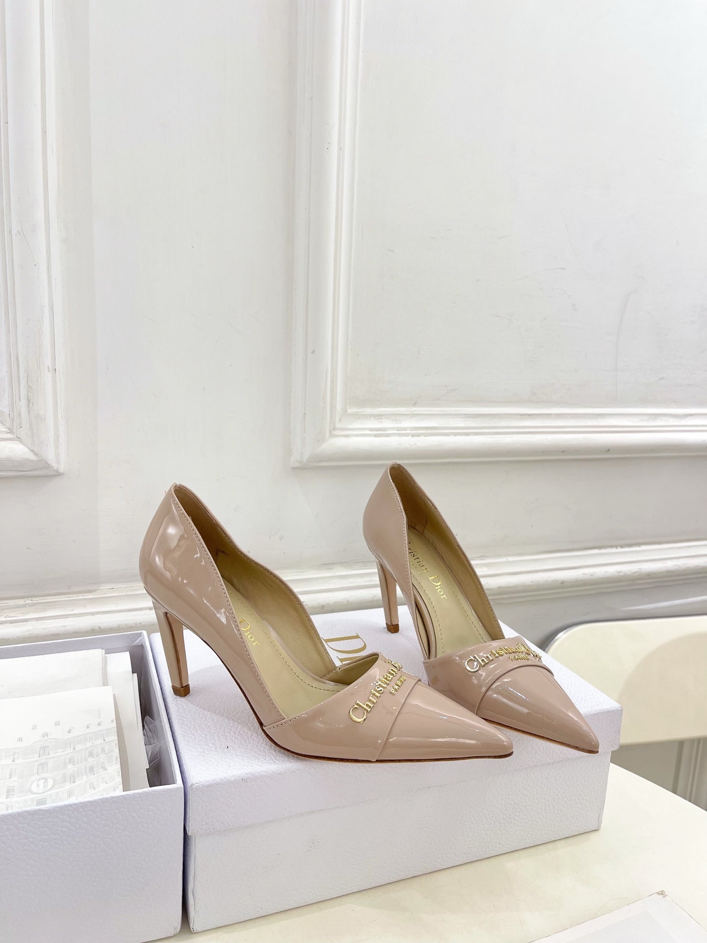 CD 25 Pump High Heels Pink Nude Patent Leather 307424