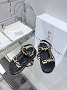 CD D-Wave Sandal In Drak Beige Black Cowhide 100765