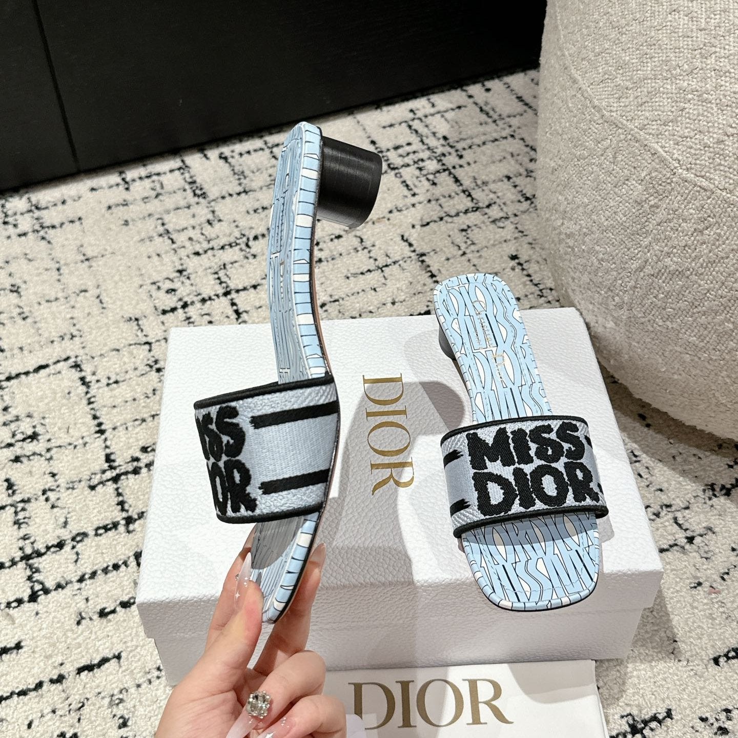 CD Dway Heeled Slide Blue Black Embroidered Cotton