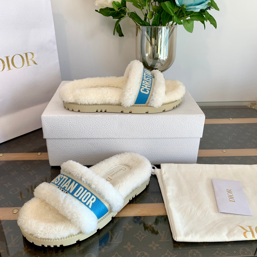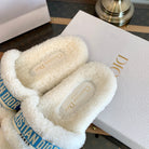 CD Dway Slide Blue White Wool Fleece Lining And Canvas Fabric