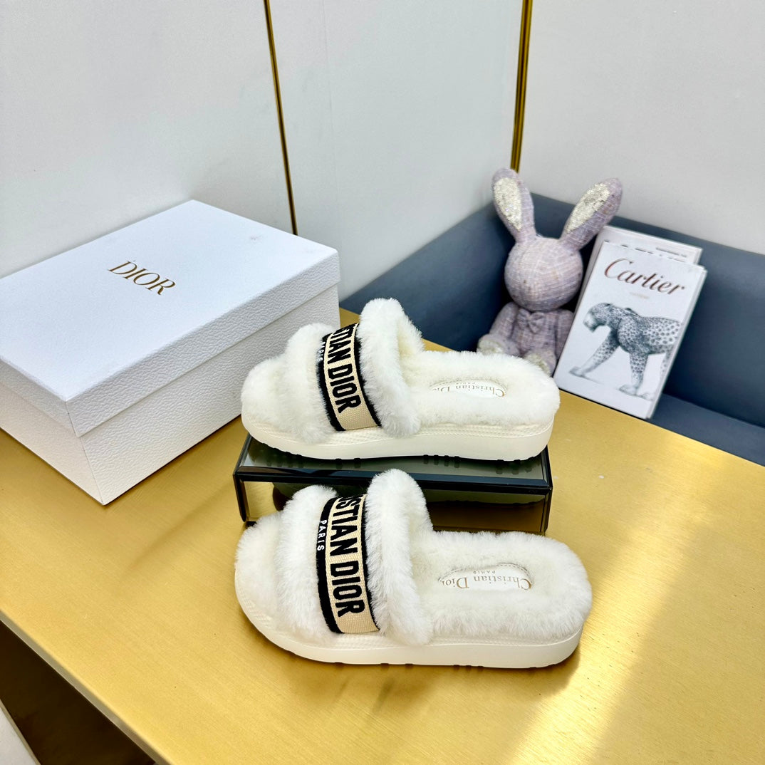 CD Dway Slide In White Mix Black Wool Fleece Lining And Canvas Fabric 111079