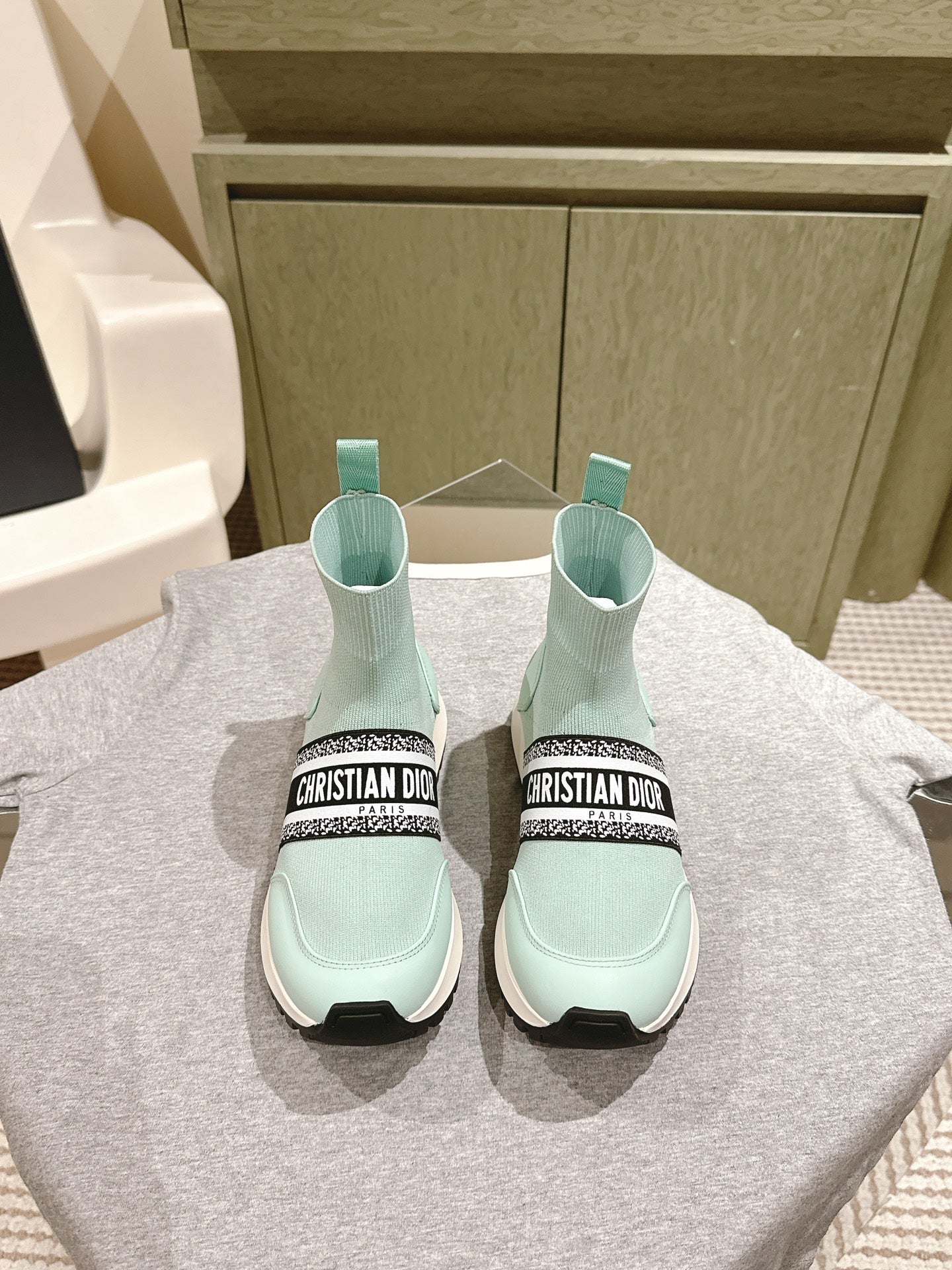 CD High-Top Sneaker 40mm Jade Green Stretch Wool And Lambskin